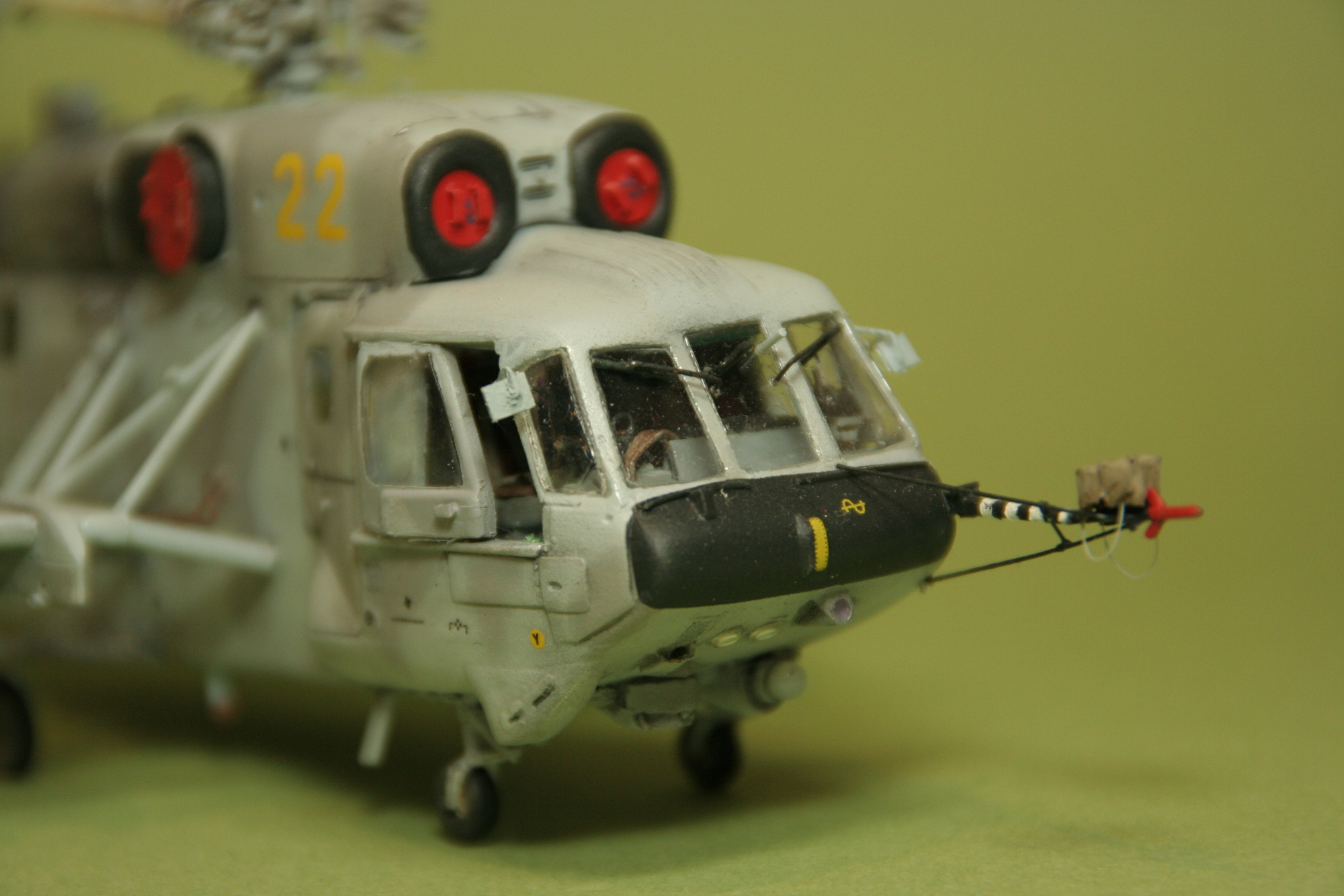 - кабина пилотов полностью самодел за исключением потолочной панели (нашёл в старых запасах от КА-27, но немного её переделал под КА-29);