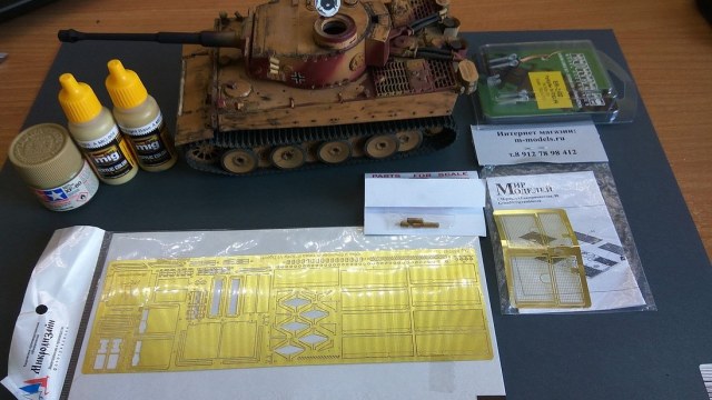 Была у меня моделька Тигра от звезды и однажды решил я ей придать более благородный вид. Получилось вот что. В работе использовал Немного фототравления, заменил мортирки на точеные. Краски Tamiya, Ammo mig. Фигурка мастербокс, роспись темпера. Спасибо за комментарии и замечания.
