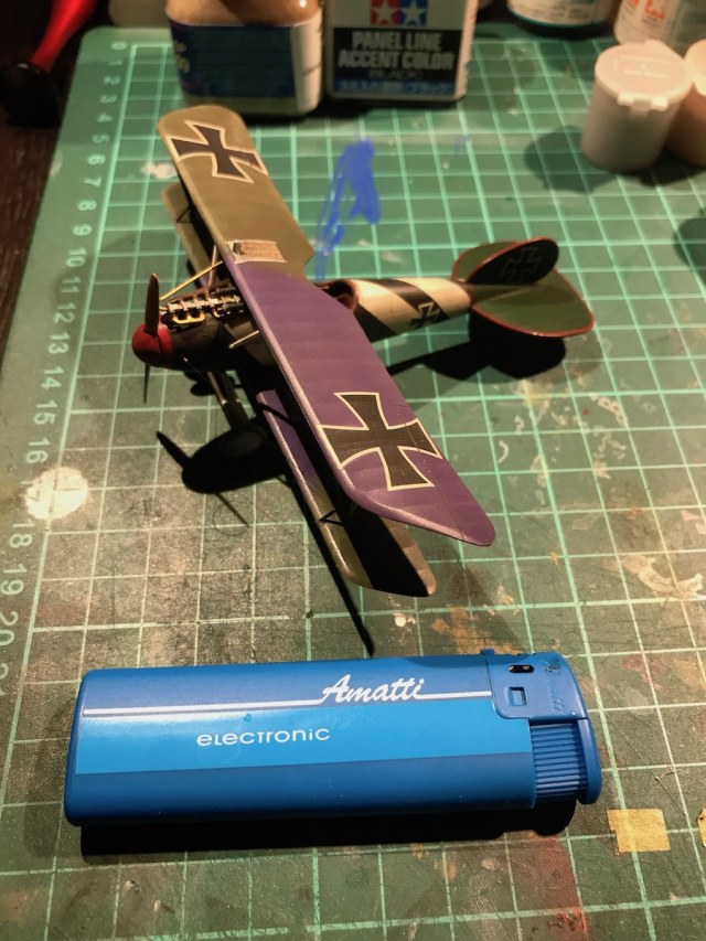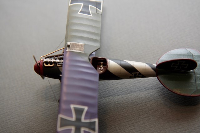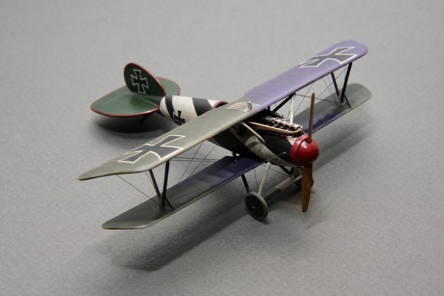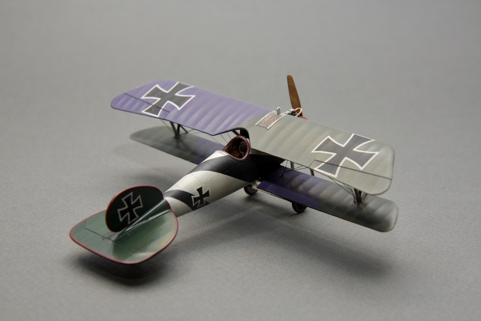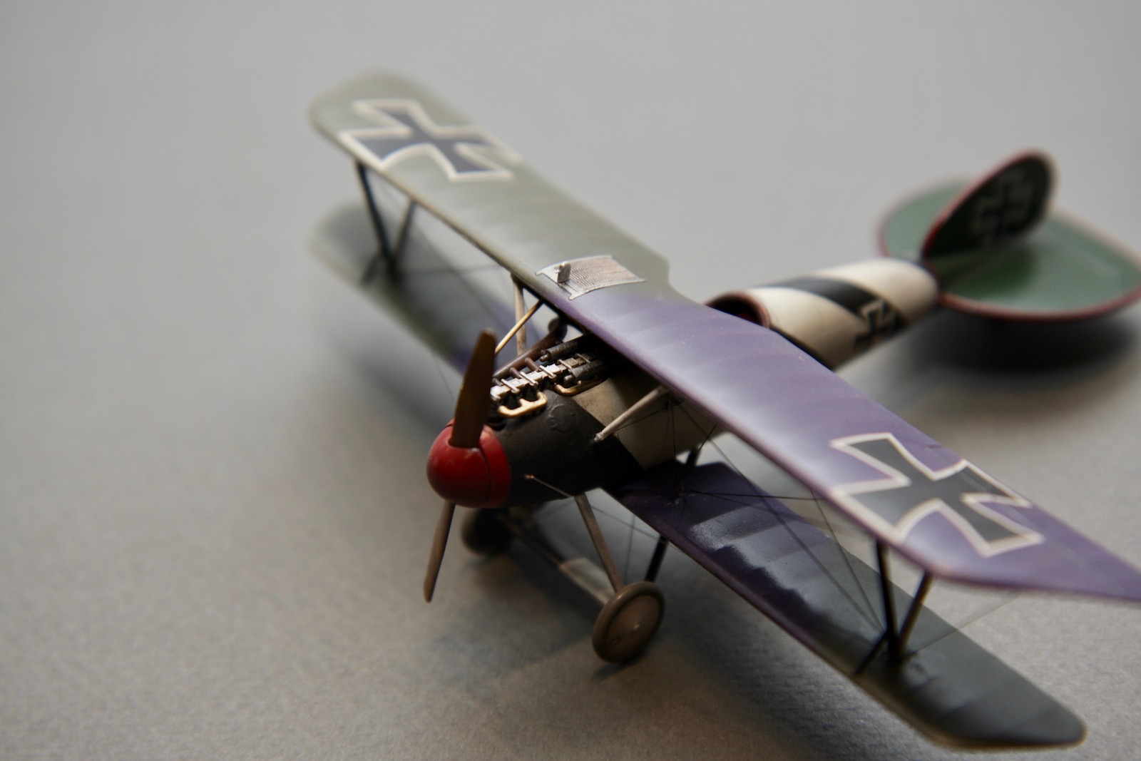 В целях отвлечься от основного проекта решил собрать подарок моей бабушки, немецкий истребитель Первой мировой войны Albatros D.Va. Масштаб для меня мучительный, да и авиация Первой мировой мне совершенно незнакома, поэтому матчасть отсутствует. Расчалки - это отдельный кошмар. Ну и винт не получился совершенно. Нет, это для меня пока тяжело. Хотел поправить нервишки, а заработал нервный тик.:)