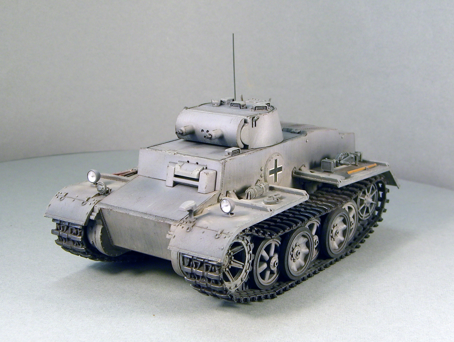 Достаточно известный набор, описание вряд ли требуется. Собиралась модель без особых доработок. Заменил мелочевку типа стволов и фар. Добавил несколько сварных швов и пулестойких болтов. Красил эмалью Mr.Color, тонировал пигментами, стараясь не особо увлекаться. Ранние машины, насколько я понимаю, до фронта не доехали.
