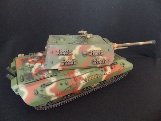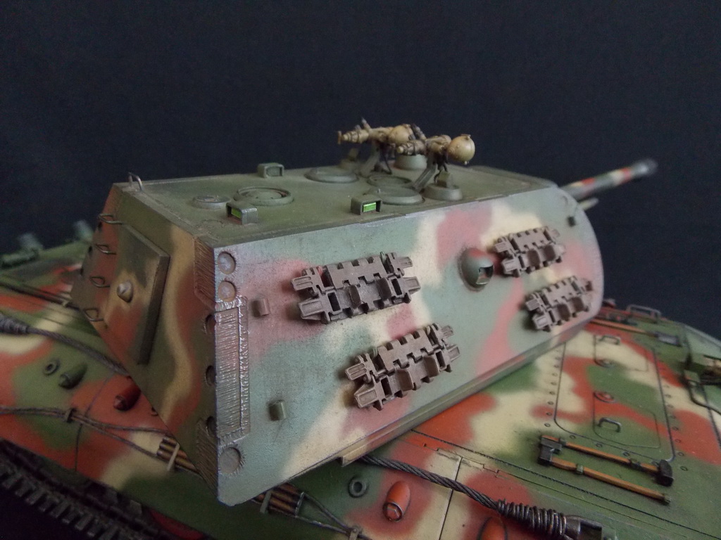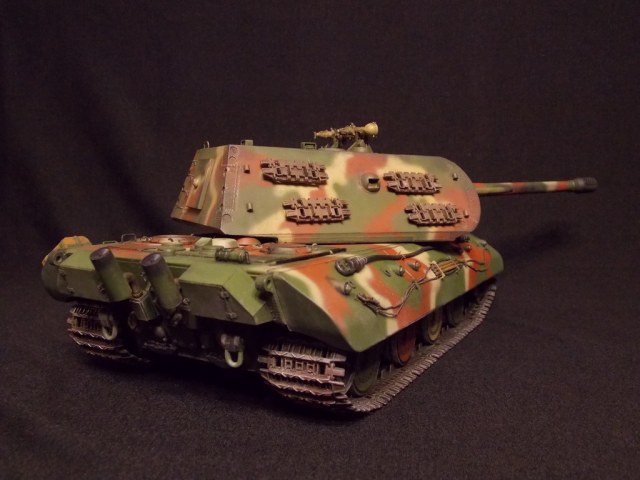 Хорошо получился. Есть такой тоже. На мой взгляд башня Мауса смотрится весьма гармонично и не как не вредит мат. части, ибо других всё ровно не было изготовлено. Тем более от башни со спрямлённым лбом остался только один чертёжик. Я на свой наверно буду ставить 128 мм, она более реалистична.