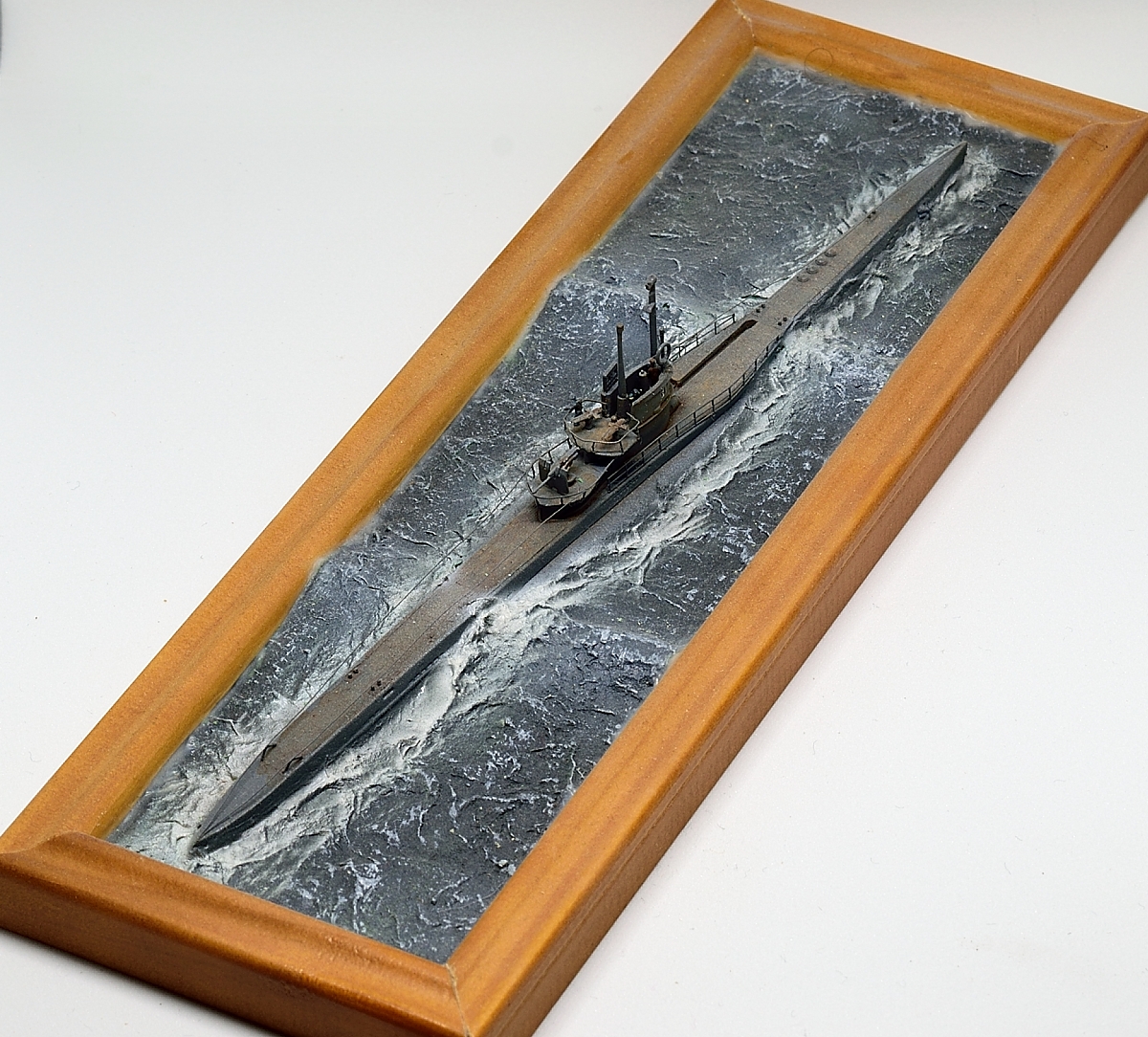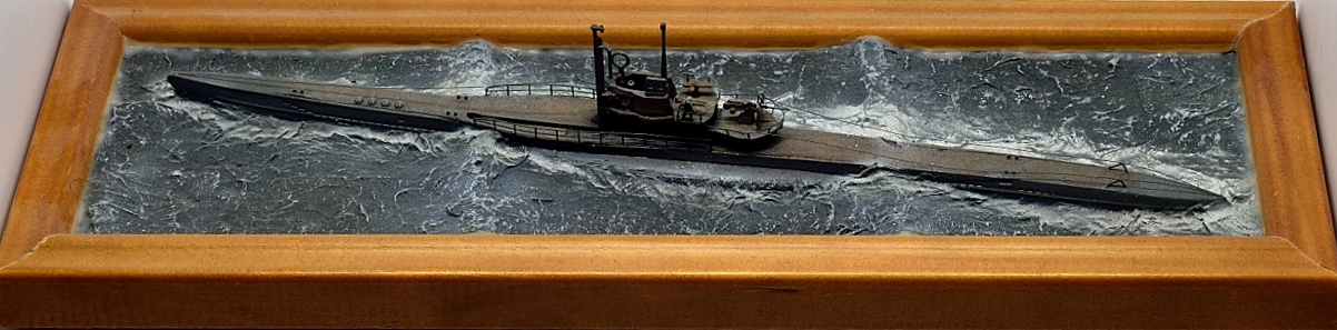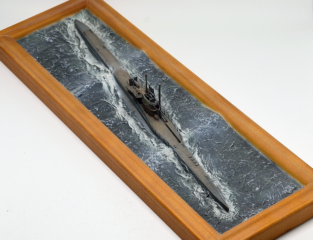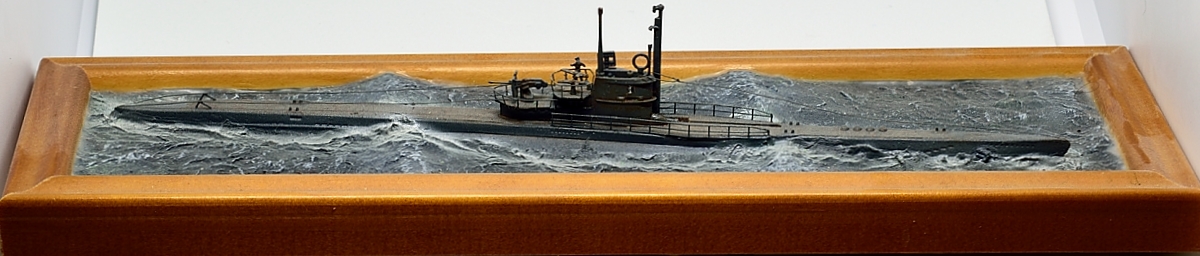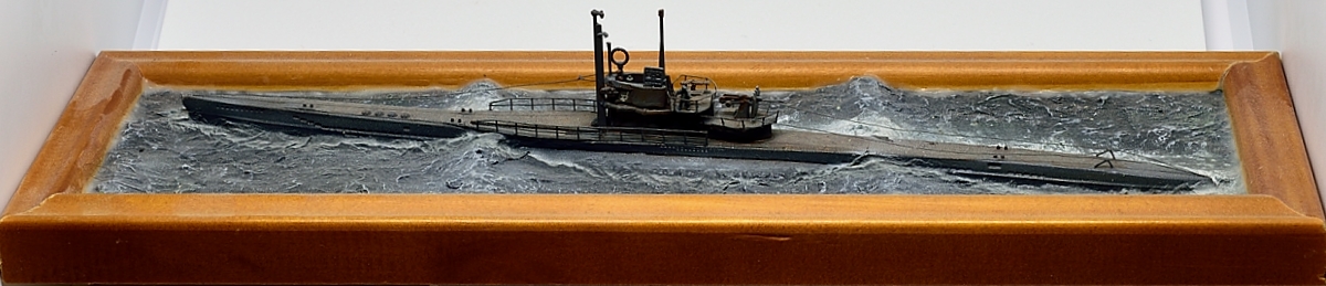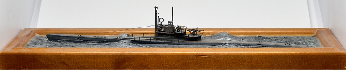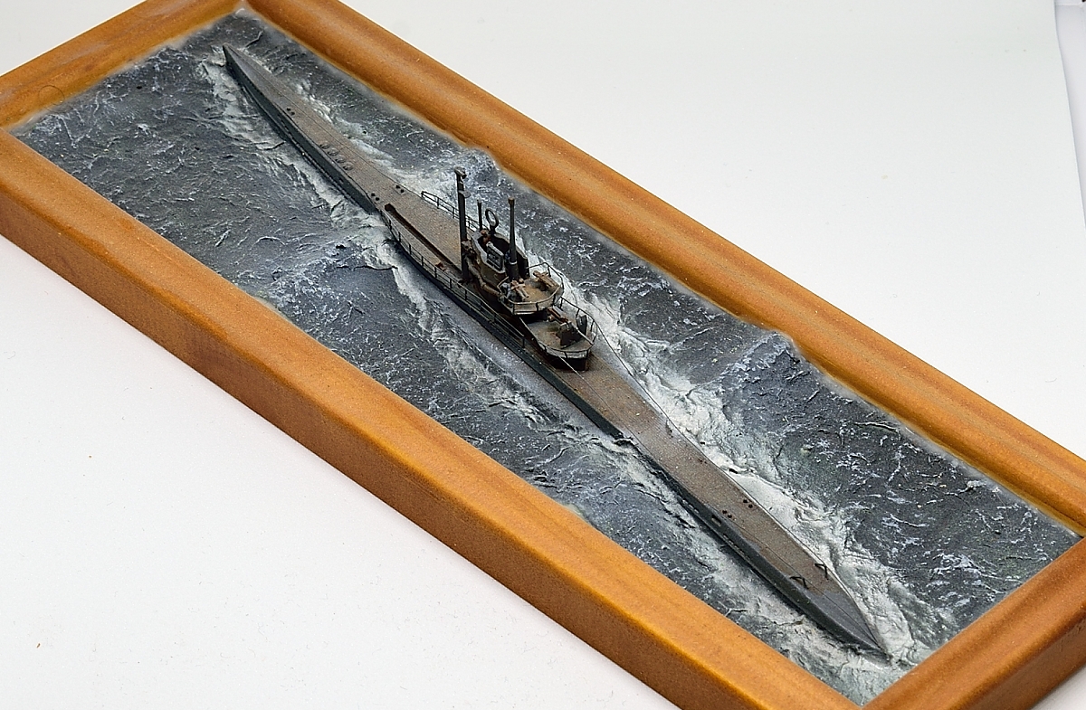 Эту модель построил уже давно, как только набор от Флагмана стал доступен в Германии, это примерно 2009 год. Добавлены леера и самодельное ограждение, заменен ствол 37мм пушки. Такелаж из эластичной лески для шитья. Верхняя вахта - 2 фигуры от ЛьАрсенала, и одна от Гоффи. Вода была сделана чтобы испытать метод туалетной бумаги - создан рельеф из обрезков смолы и шпаклевки, а потом текстурирован туалетной бумагой размоченной в жидком ПВА. Окраска эмалями от Моделмастера и пигментами.
