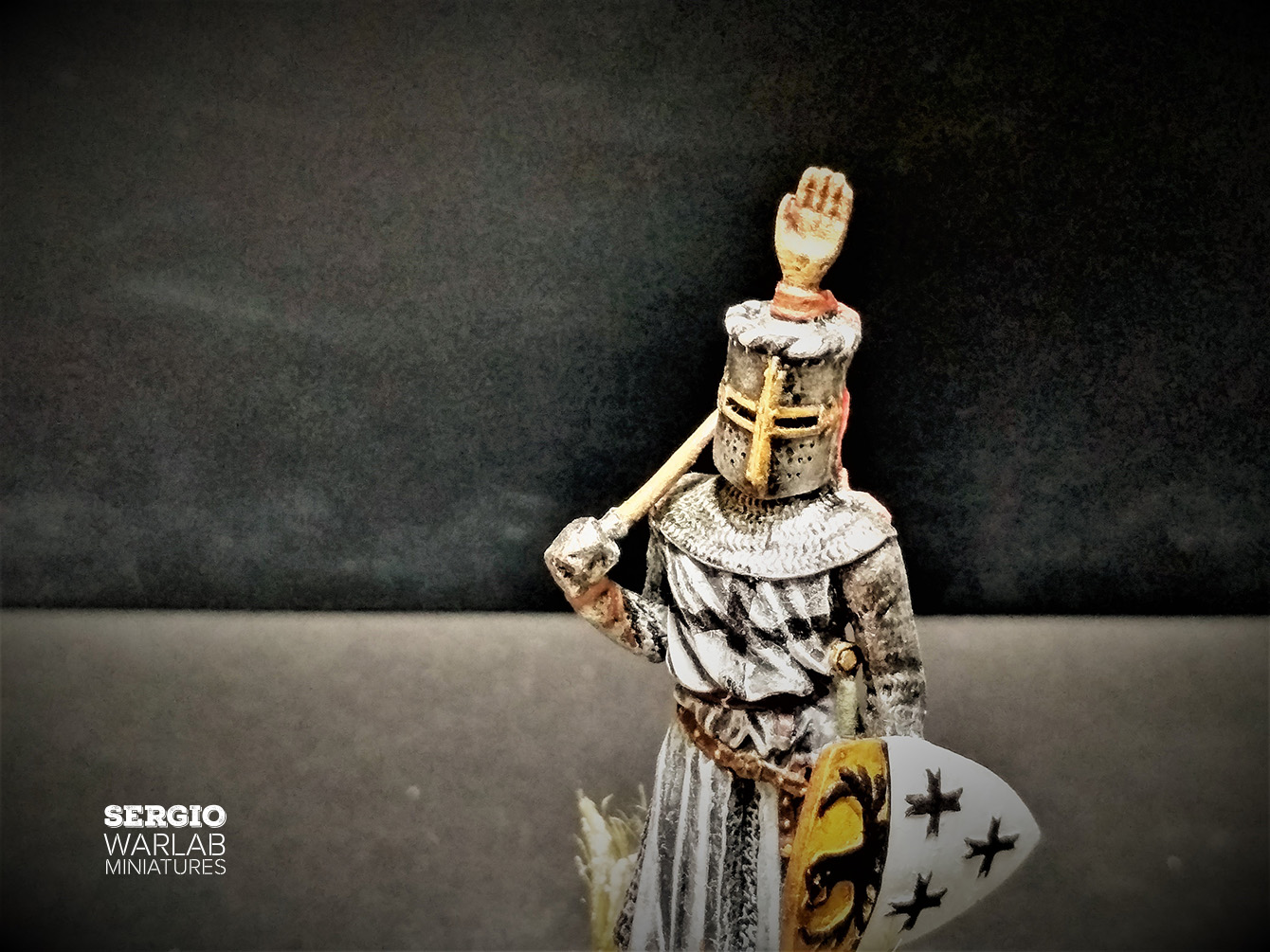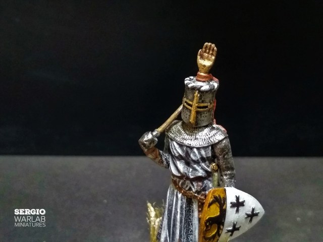 Рыцарь серьезно защищен и обильно вооружен. О принадлежности к руководящему составу, о чем говорит изображение поднятой руки на шлеме и фамильный герб на щите. Интересно - что еще могла означать рука, если кто знает - расскажите. Приятного просмотра.