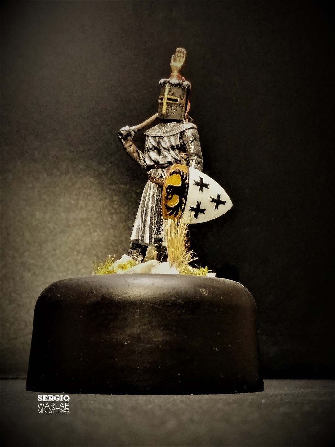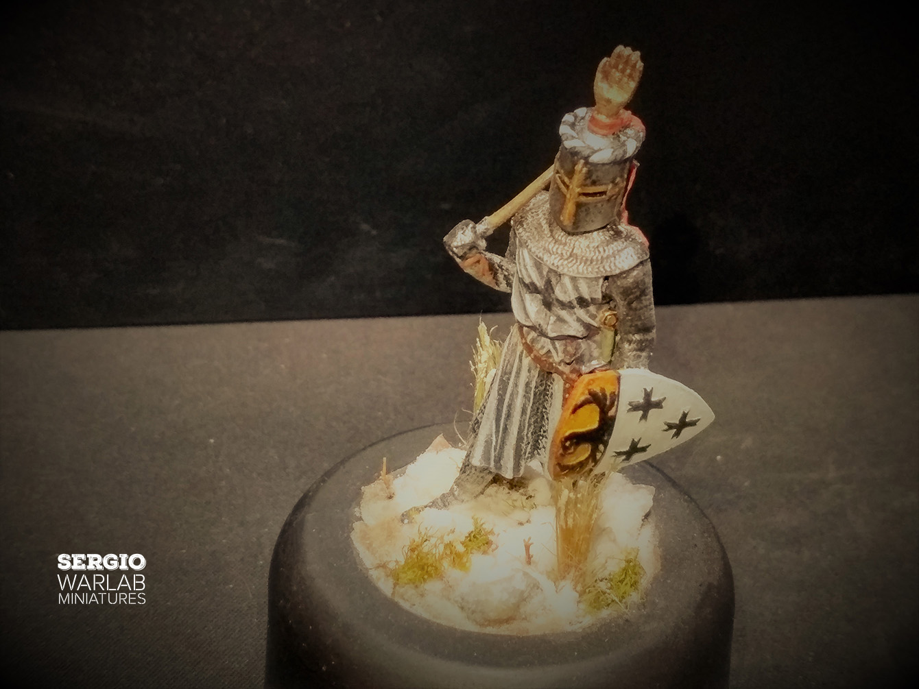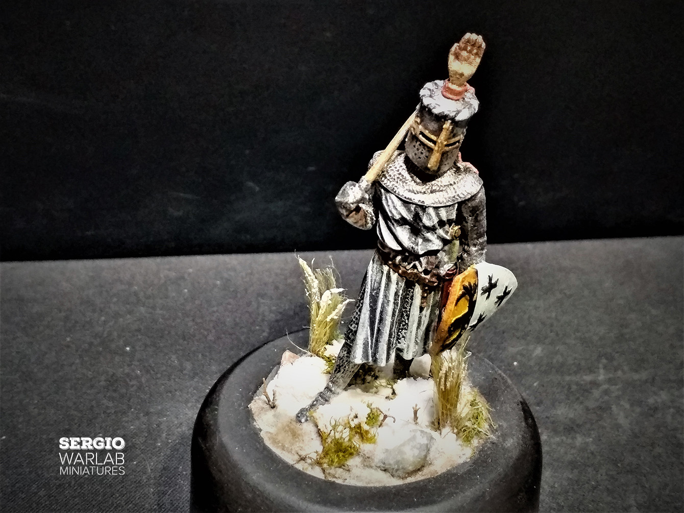 Представляю Вашему вниманию оловянную фигуру рыцарь (54 мм. перелив EK CASTINGS). Фигура попала ко мне случайно - тема не моя, но несмотря на это пошла в работу. Роспись - акрилы ХоМа, подставка - гипс, натуральная растительность и камни, снег - сода.