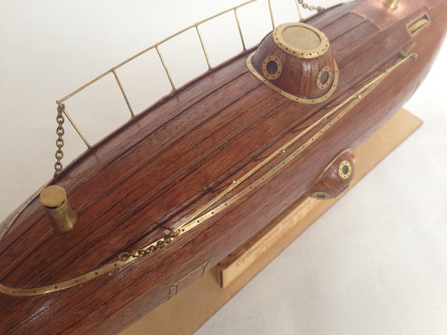 Интересная подводная лодка. Модель понравилась. Возникли вопросы по цепям на леерах, они кажутся великоваты, а на руле форма звеньев не по теме.
