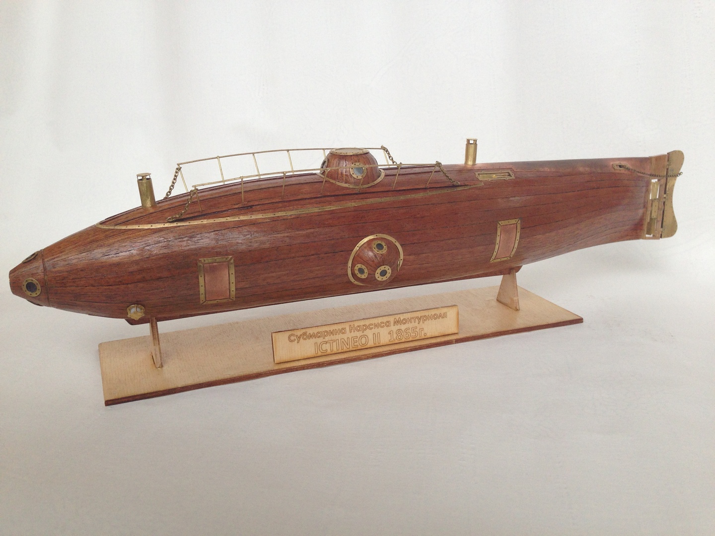 lctineo-II Нарсиса Монтуриоля строилась методом краудфандинга. Изобретатель объявил общенародную подписку, и ему удалось настолько сильно заинтересовать соотечественников идеей подводного флота, что они собрали весьма приличную сумму в 300 тысяч песет. Для сравнения, на эти деньги можно было соорудить пять парусных фрегатов или два паровых. Н. Монтуриоль построил на них первую в мире подводную лодку с тепловым двигателем, получившую название "lctineo-II". При этом изобретенный им двигатель был абсолютно уникальным. Он представлял собой комбинированную паросиловую установку с шестью цилиндрами и двумя котлами. При движении на поверхности она действовала как обычная паровая машина с угольной топкой, которая разогревала один котел, работавший на три цилиндра. Перед погружением топку гасили, а под водой включался второй котел, тоже работавший на три цилиндра, но нагревавшийся за счет экзотермической реакции взаимодействия цинкового порошка с диоксидом марганца и хлоратом калия. При этой реакции выделялся кислород, освежавший атмосферу внутри корпуса.