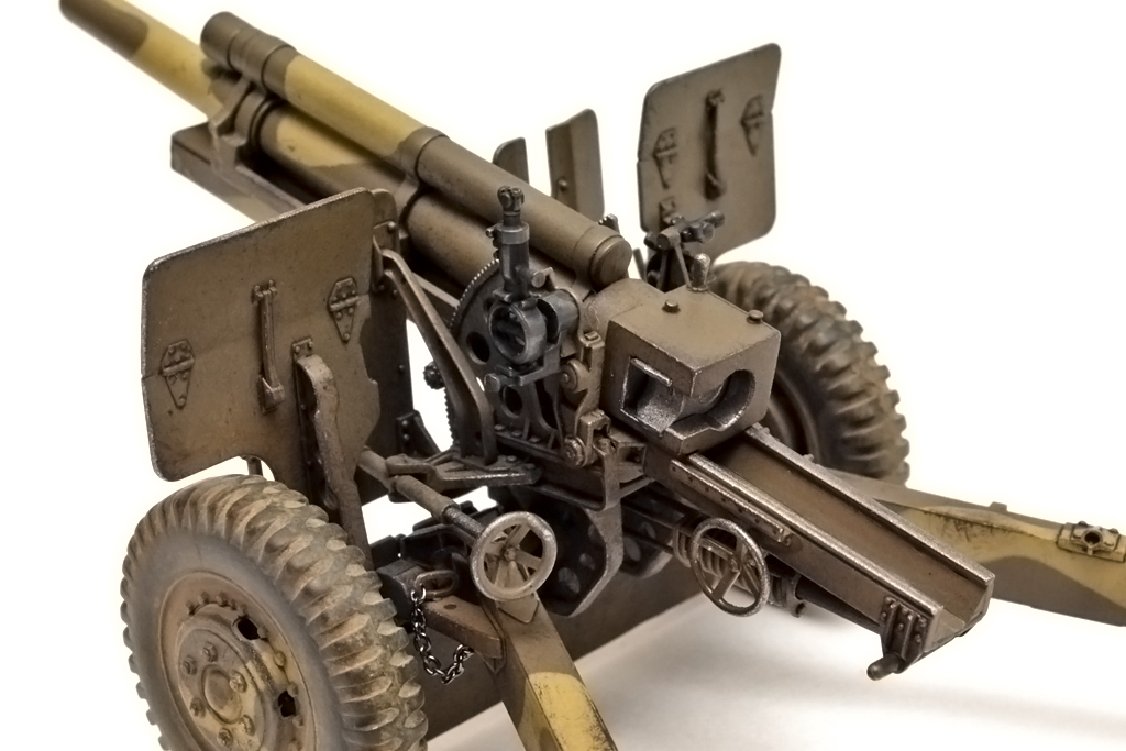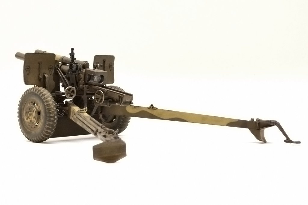 Представляю Вашему вниманию модель американской 105-мм гаубицы М2А1 на лафете М2А2. В качестве исходника использовался набор от Dragon №6499. За счет унификации литников он содержит массу "лишних" деталей, позволяющих собрать модель данного орудия в любой из трех существовавших модификациях, а именно, на лафетах М2 (правда необходимо будет самостоятельно изготовить проводку тормозной системы), М2А1 (собственно ее и предлагается собрать по инструкции) и М2А2. Имейте это в виду, т.к. на коробке и в инструкции об этом производитель скромно умолчал ))