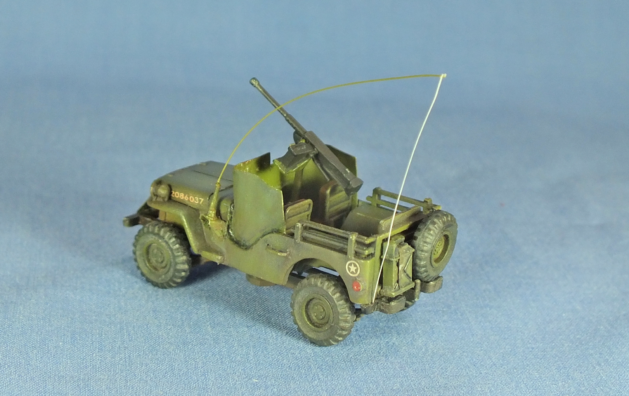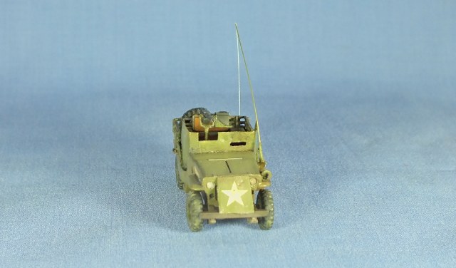 Щель явно не по масштабу получилась. Из фоток понятно, что водитель в обычной поездке на дорогу смотрит поверх щита, а вот при обстреле уже пригибался и смотрел через щель. Еще замечание по антенне - тоже явно не в масштабе. При таких габаритах, при поворотах виллис улетит в кювет, так же на фотке видно что окончание антенны привязано.