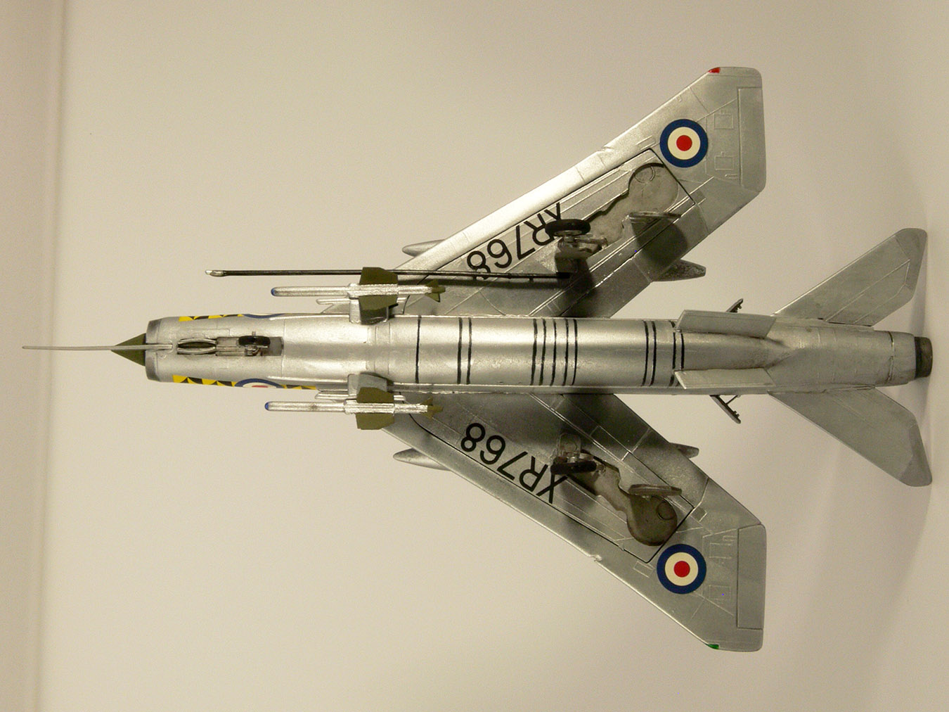 Насмотревшись работ коллег, решил облагородить ракеты: заменил крылышки из пивжести - думаю несколько переразмерены вышли. Также головки наведения из пластиковой шпажки для канапе. Здесь я, конечно, дал маху: получилось ядовито-синее. Думал будет темнее. Наверное, лучше было бы сделать из прозрачного литника. Все доработки касались только видимых частей, поэтому ниши шасси, стойки и прочее остались не тронутыми.