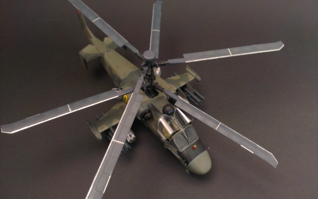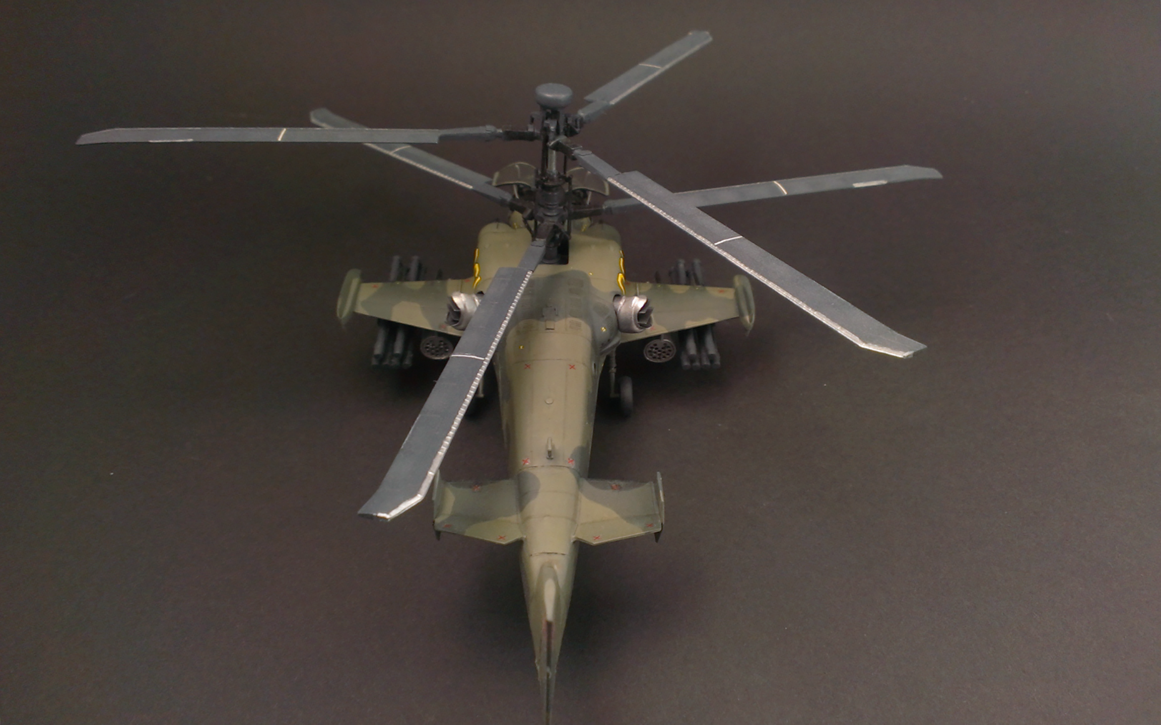 По-моему, по меньшей мере собирательный образ ранней опытной Ка-52 очень даже удался! Для окраски кистью камуфляжные пятна вышли очень здорово.