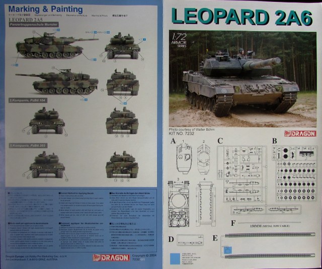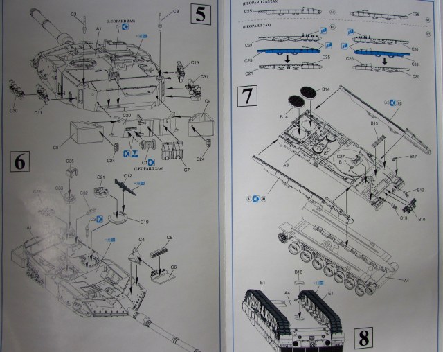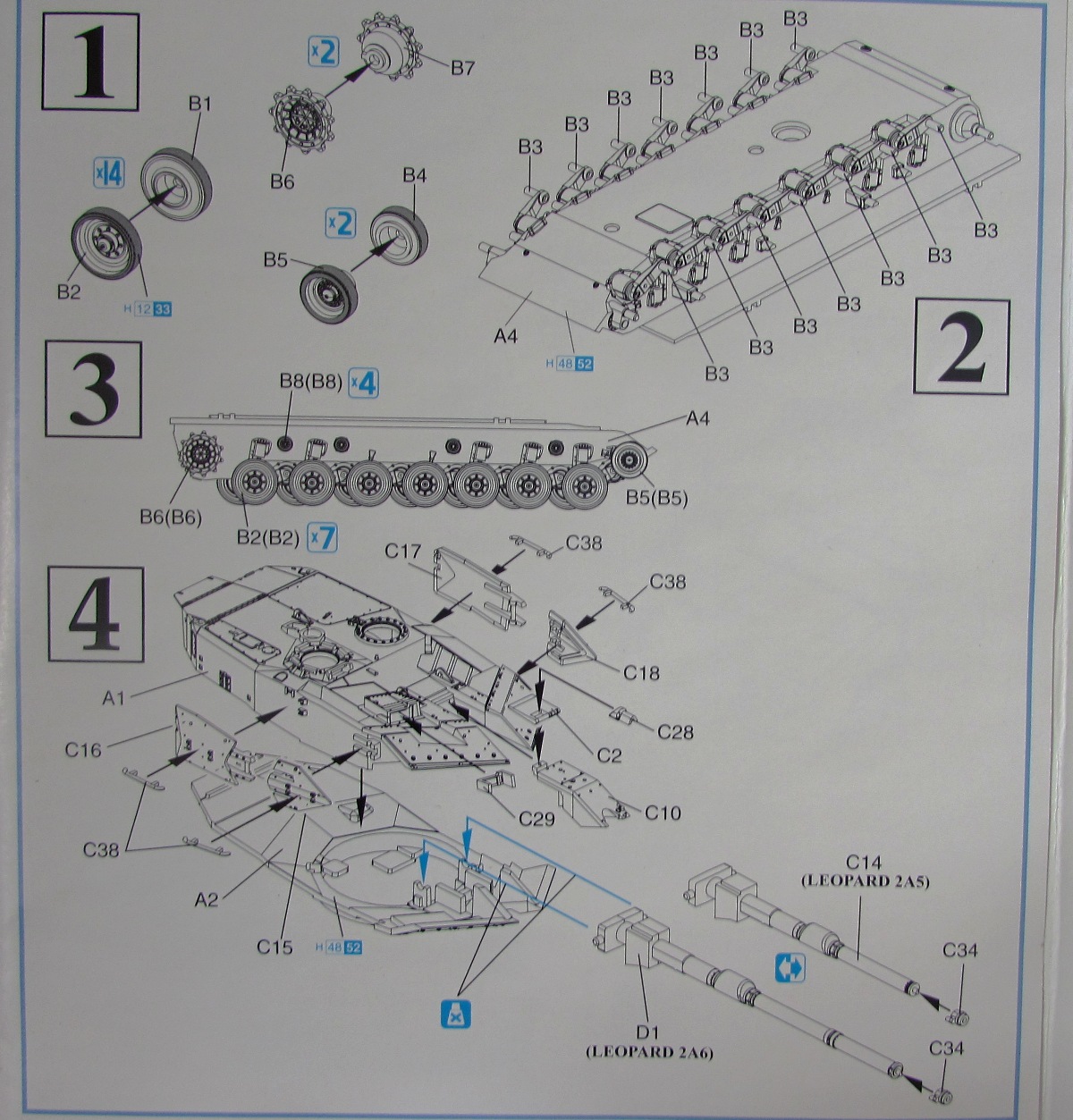 Насчет матчасти ничего сказать не могу, не силен. Единственное, что смутило - так это подход к набору. при заявлении, что это версия 2А6, 2 из 3 вариантов маркировки - на 2А5. Версия 2А6 вообще предполагается со странными экранами - вам предлагают отпилить половину одного экрана. отпилить половину другого - и соединить отпиленное воедино. Посмотрев фото, я, если честно, не понял юмора - Леопард 2А6 попадается с обоими вариантами экранов.