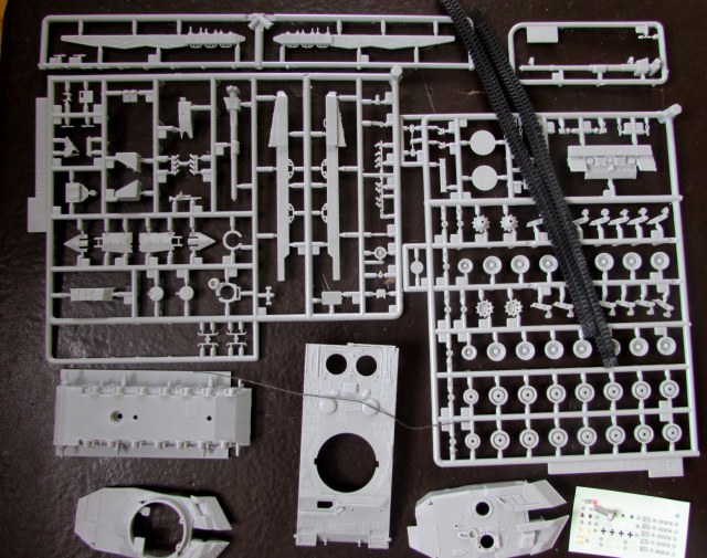 К какой же группе относится этот набор? - сказать сложно. Прежде всего - из-за пластика. Он ОЧЕНЬ странный, вообще не похожий на пластик фирмы. Знакомому, что держал в руках уже собранную мной модель вообще пластик на АСЕшный похож показался. Как по мне. так на этой модели пластик вообще непонятный и нигде больше не встречающийся, причем даже крупные детали неплохо замылены. Польстившись на этот раритет, я не предполагал, что мне потребуется искать по антресолям запоротый мной еще много лет назад. в начале этого хобби, "Леопард" от Revell. чтобы свинтить оттуда мелочевку и катки.