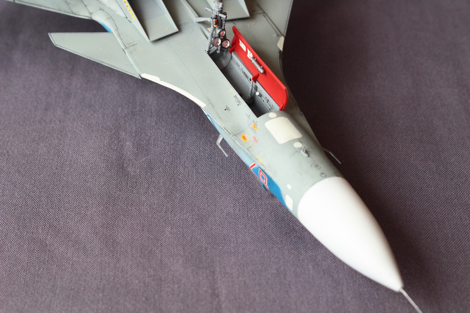 Палубу делайте, с тросом, будет логичней смотреться) И блоки отстрела ИК-ловушек - это декаль?