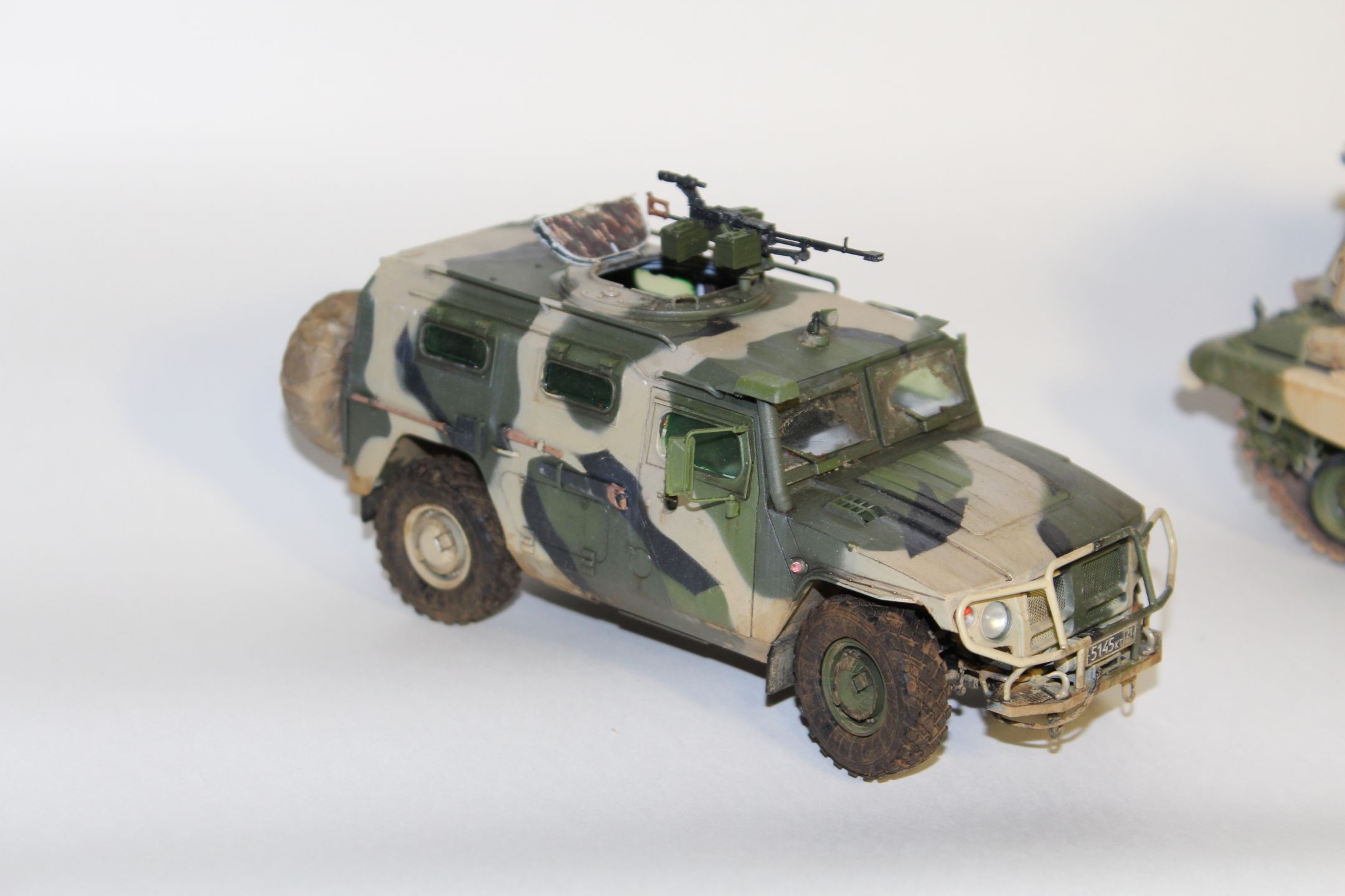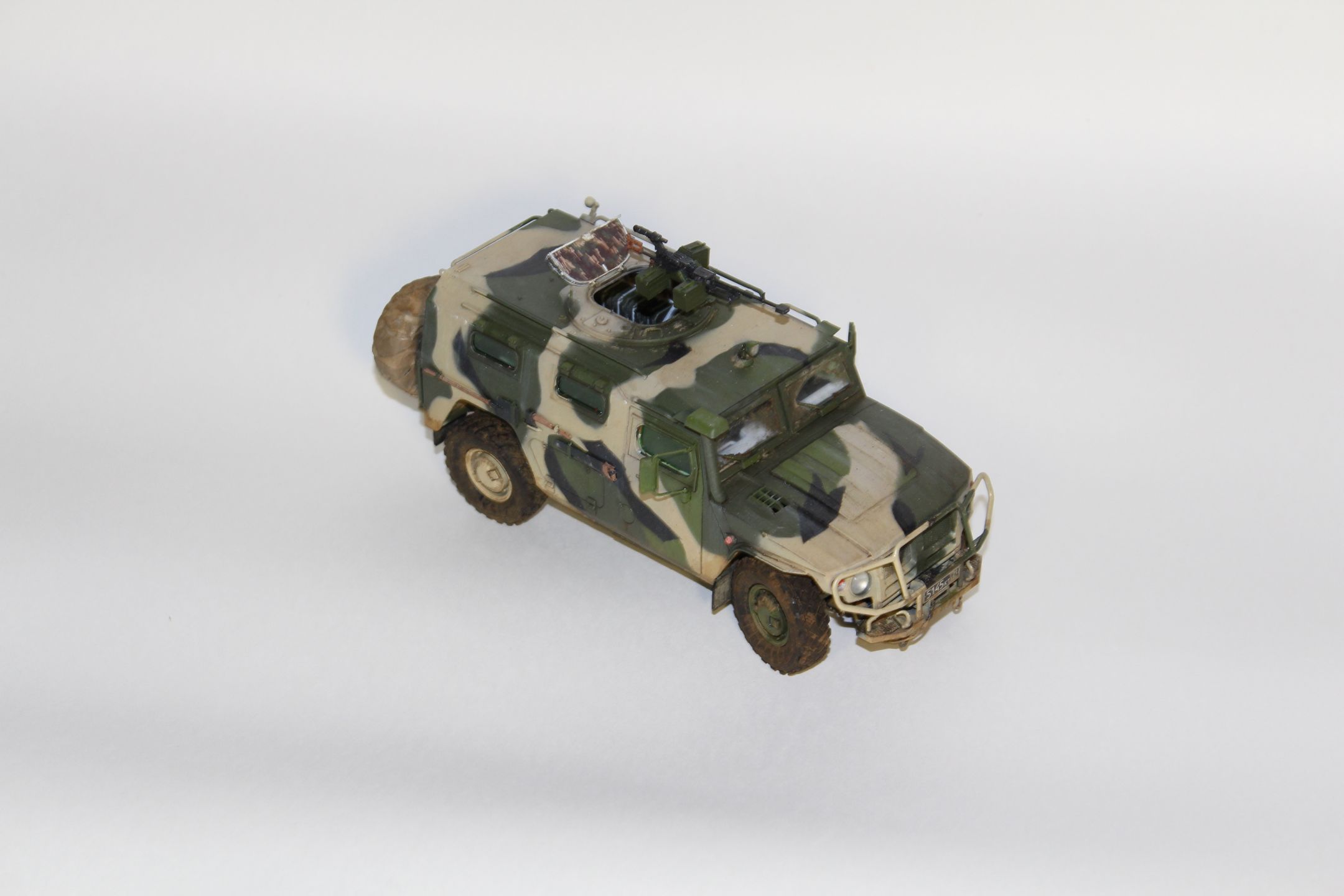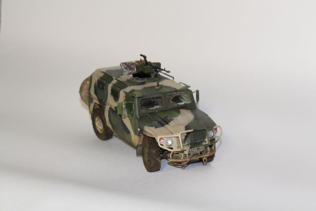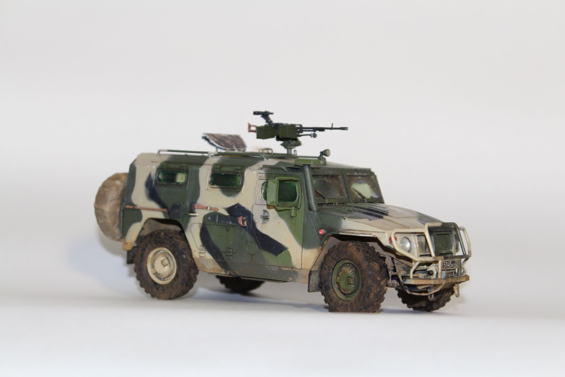 По прототипу ничего не скажу - в матчасть не лез. сборка практически изкоробочная, замене подверглось только вооружение, заменил штатное на Корд от Life Resin. Из незначительных доработок можно назвать пересадку фар и чехол на запаску.