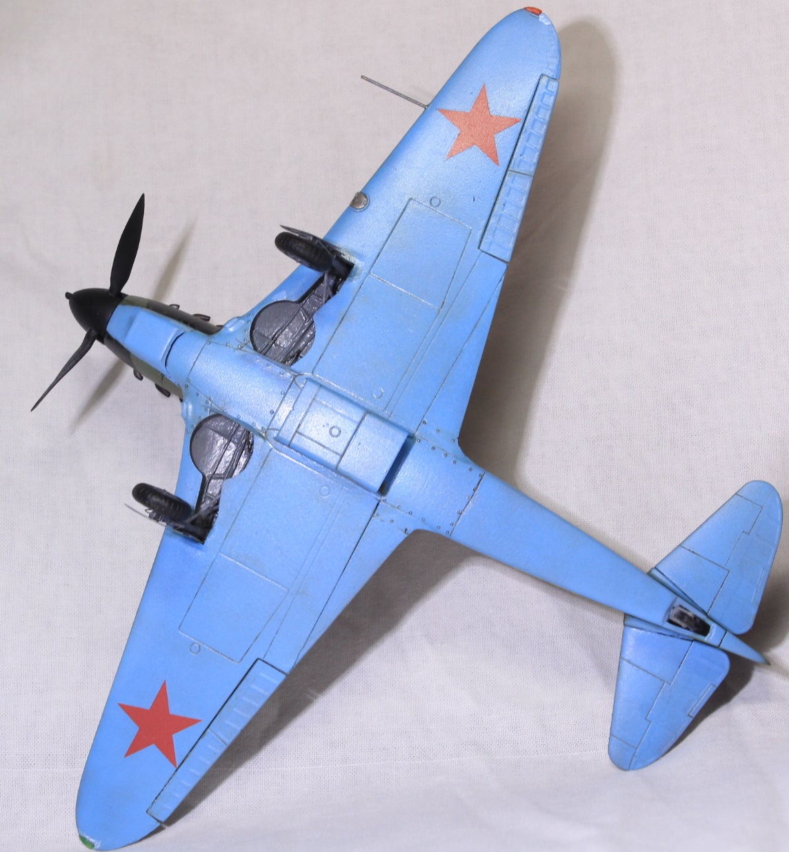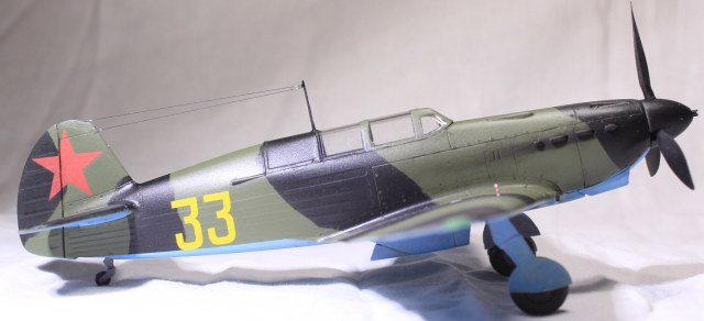 Модель производит, на первый взгляд, приятное впечатление. Собрана и покрашена аккуратно. Однако, ни зеленый, ни голубой не такие, как должны быть. Переплет фиксированной передней части фонаря слишком широкий. Звезды, что на хвосте, что на крыльях не правильно расположены.