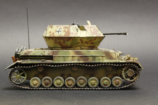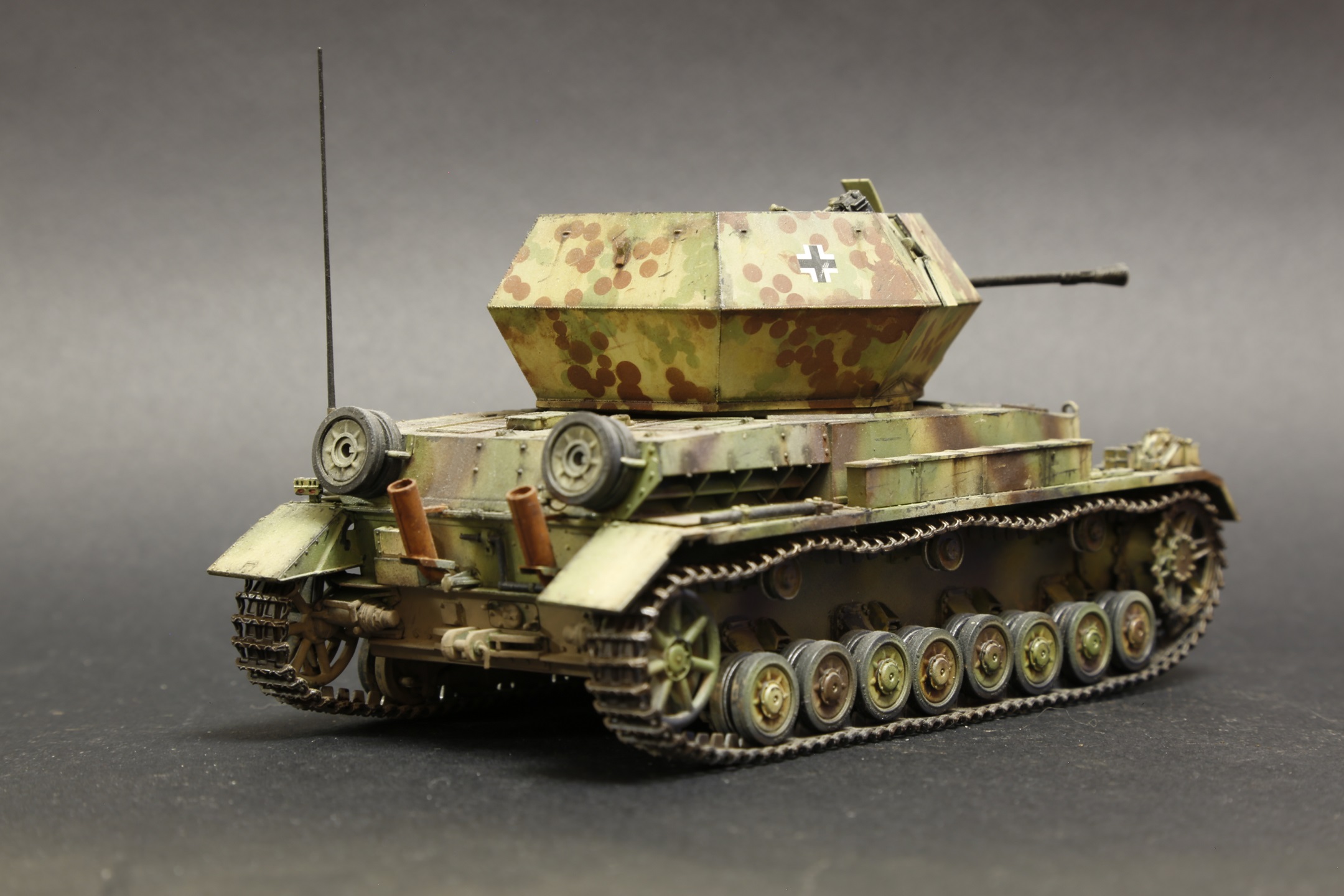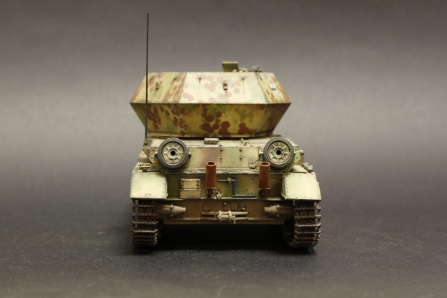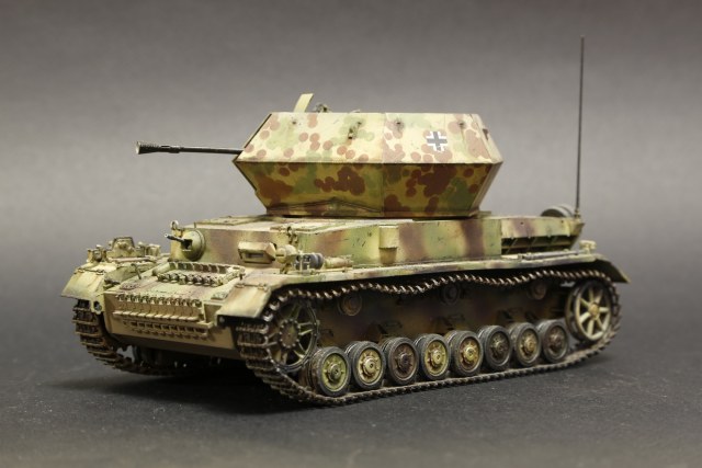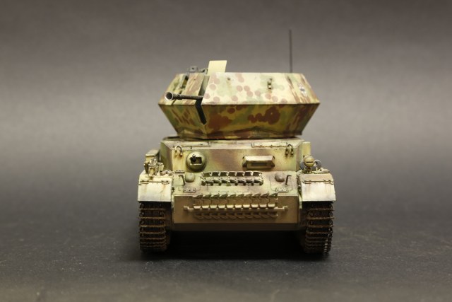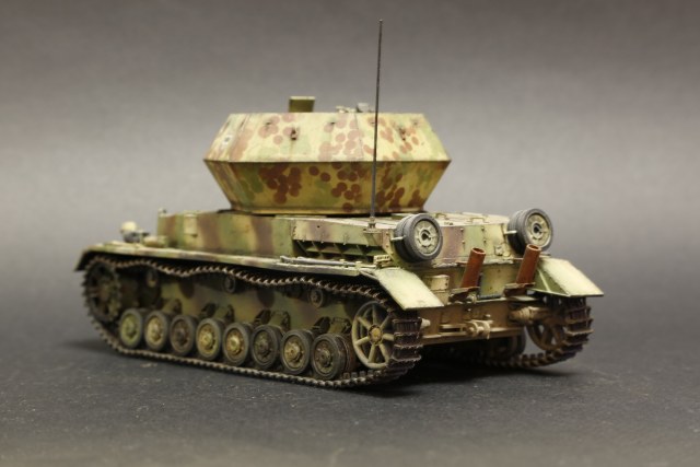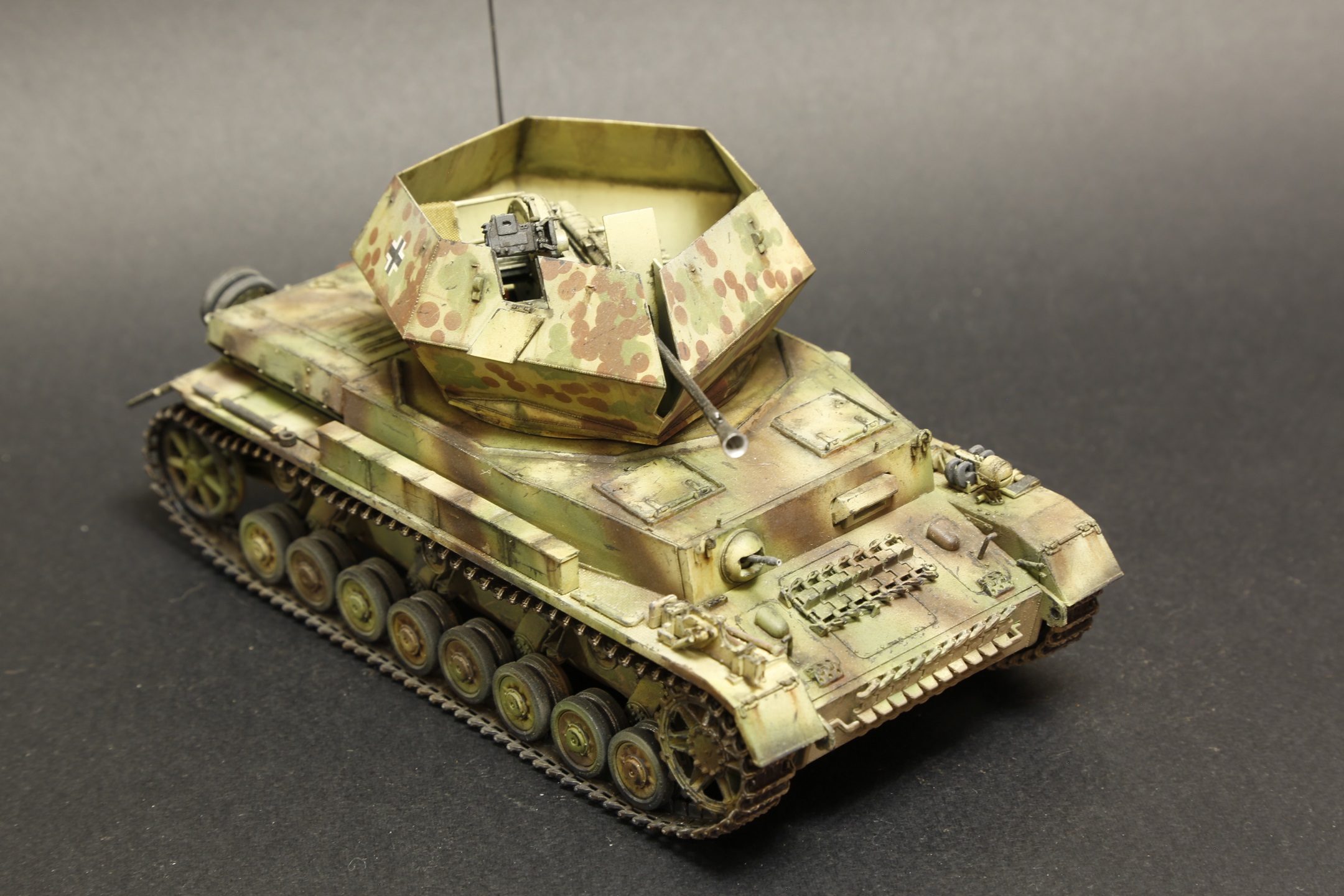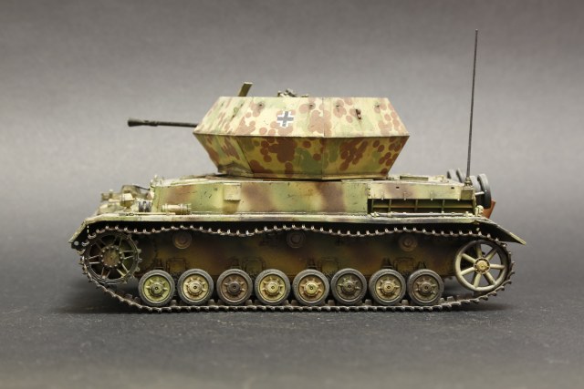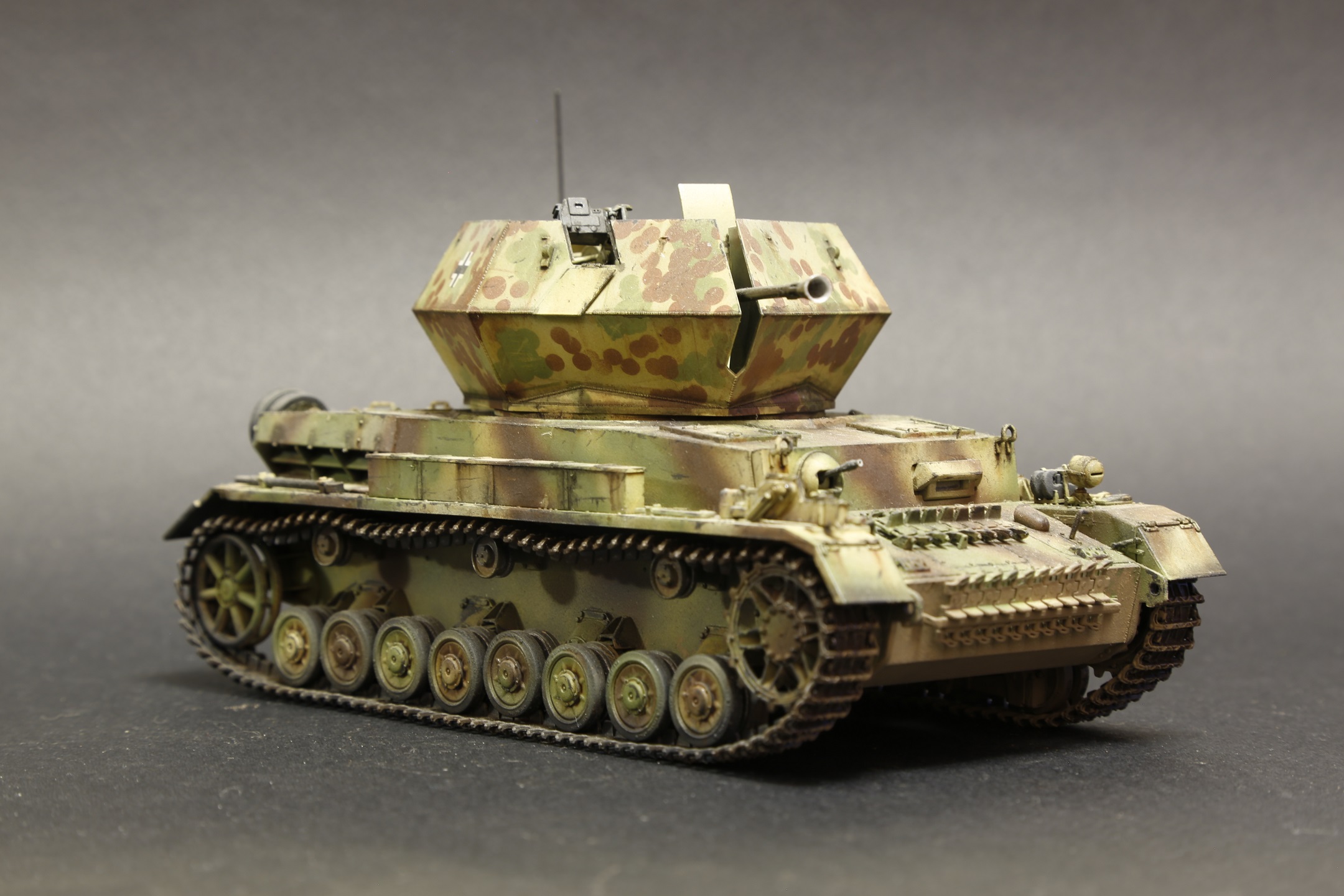 Набор от Dragon. Сборка не вызвала каких либо сложностей. При покраске решил использовать трехцветный камуфляж, рубку зенитной установки выполнил в дисковом камуфляже.