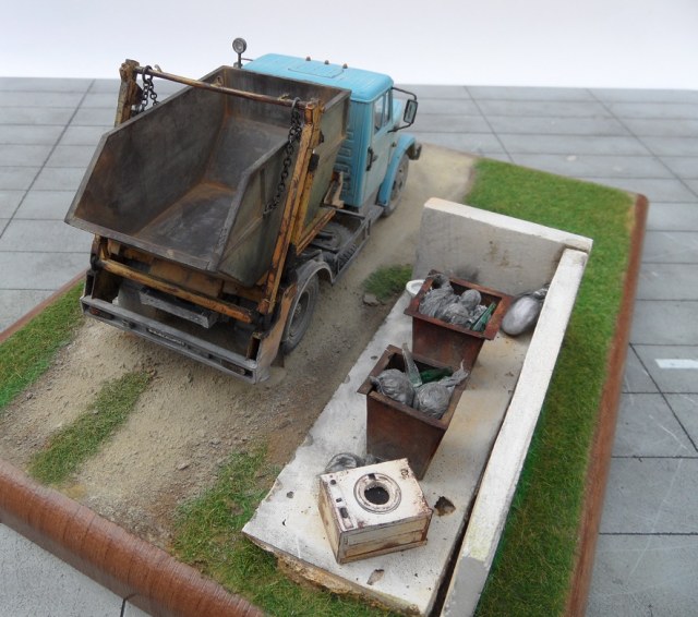 Потрясающий мусоровоз! Баки и стиральная машинка - очень жизненно выглядят.