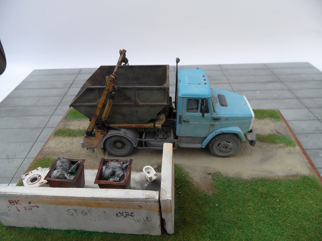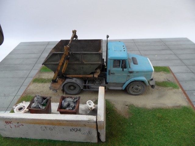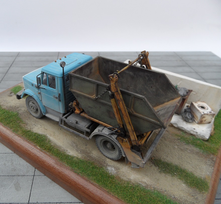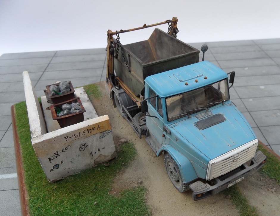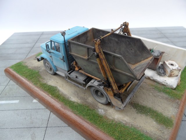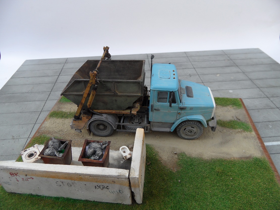 Всем привет! Собрал новинку от AVD Models, мусоровоз КО, на базе Зил 4333, модель классная, давно хотел мусоровоз собрать и вот AVD Models выпустил. Сам Зил стандарт -кабина металл, рама пластик, фототравленые дворники .Надстройка мусоровоза и контейнер выполнены так же из пластика, надстройка полностью подвижна, контейнер поднимается и опускается, я не стал с ней играться на холоде, потому фото в статике. В наборе даны металлические цепи для подвешивания контейнера, инструкция понятна, собираемость на отлично, очень классная и узнаваемая модель, делать ее одно удовольствие! Для антуража использовал унитаз и стиральную машинку от AVD Models, остальное самодел, приятного просмотра!