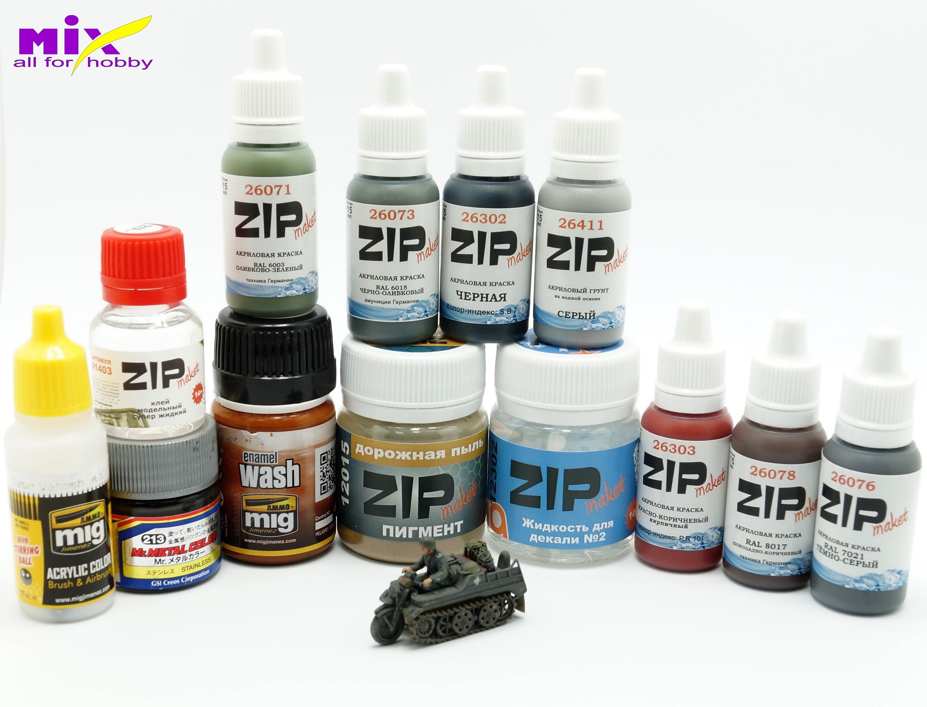 Работал с химией от Zipmaket, Ammo Mig, Gunze. Также применял темперные краски для окраски фигурки.