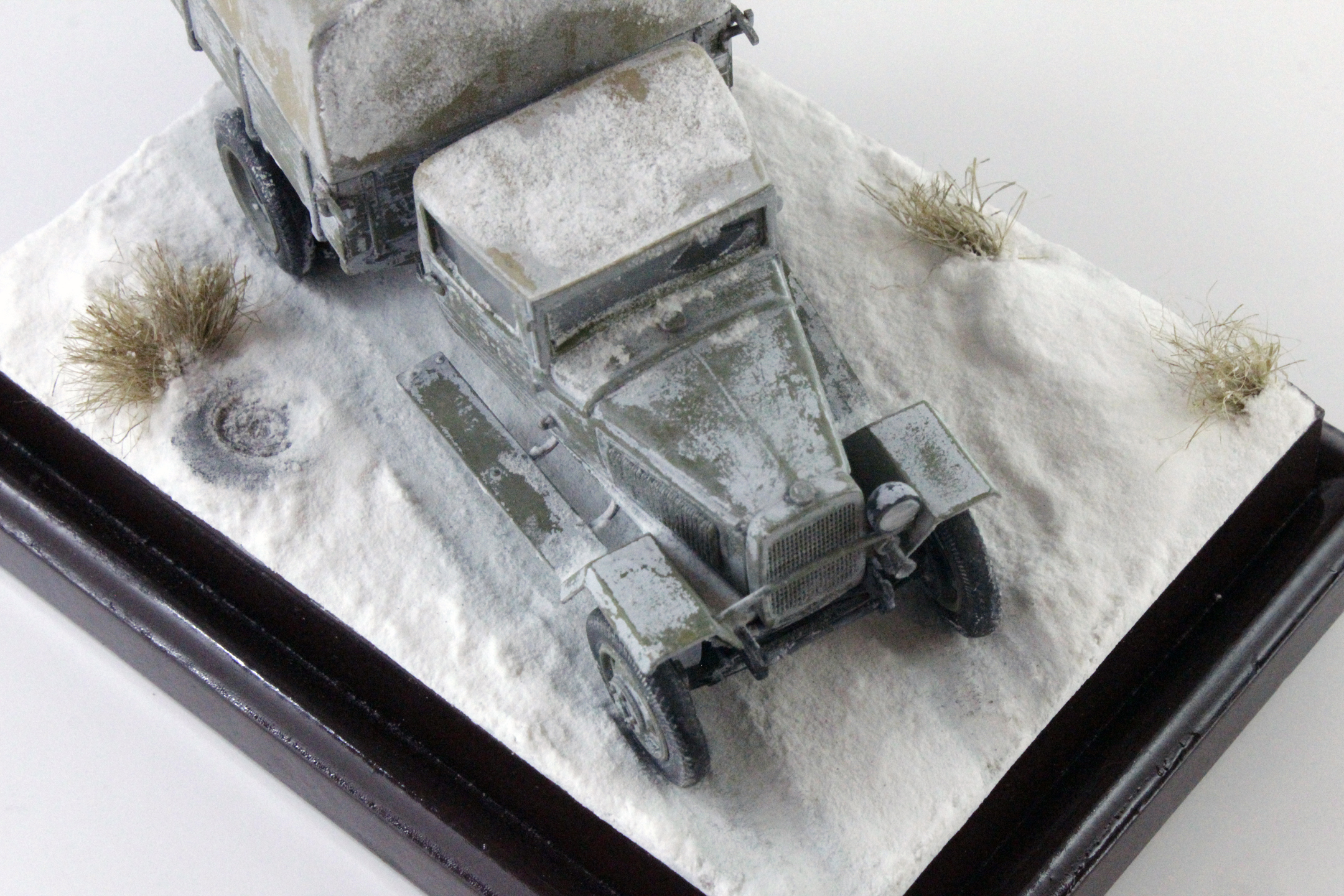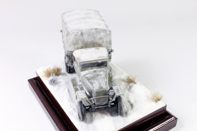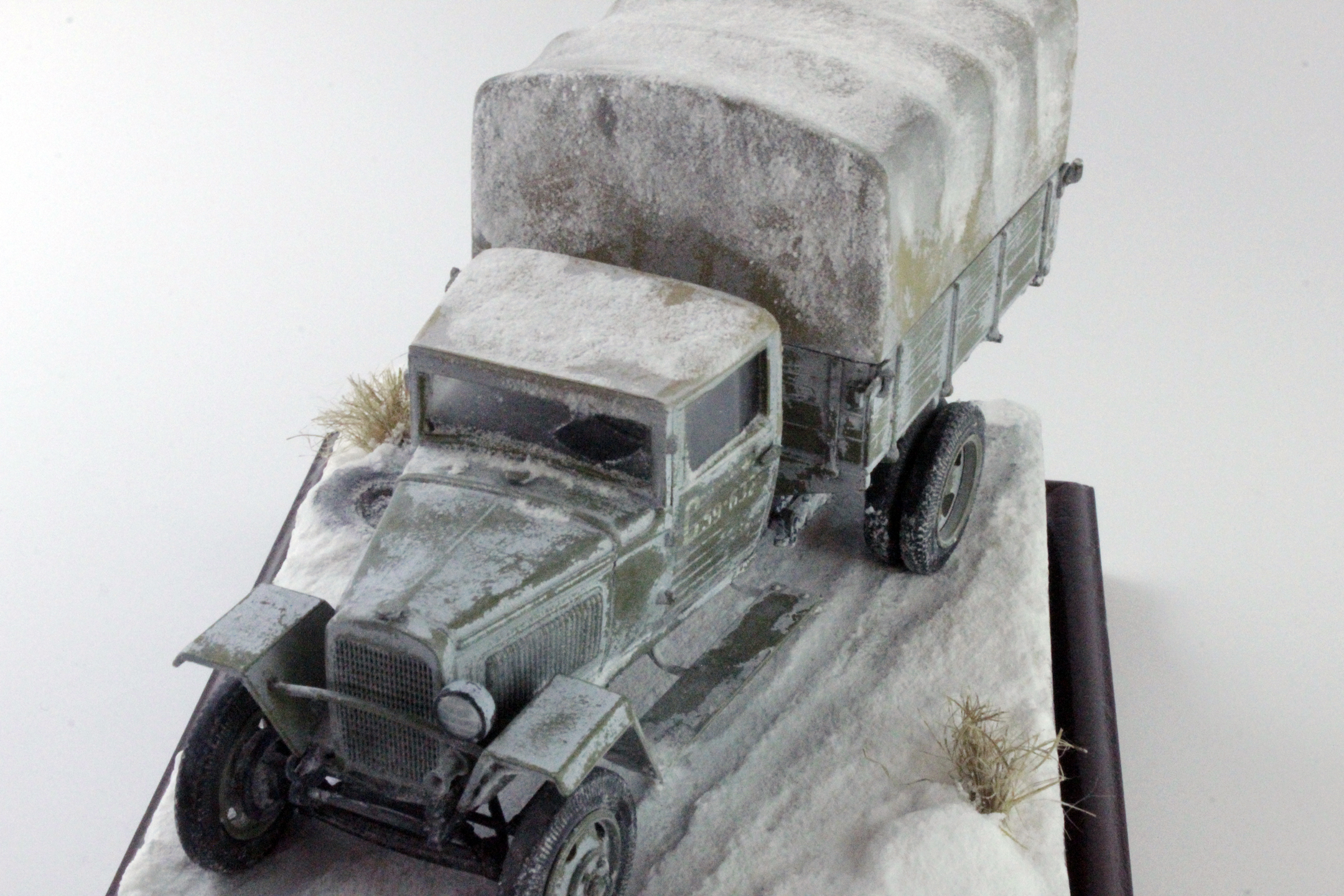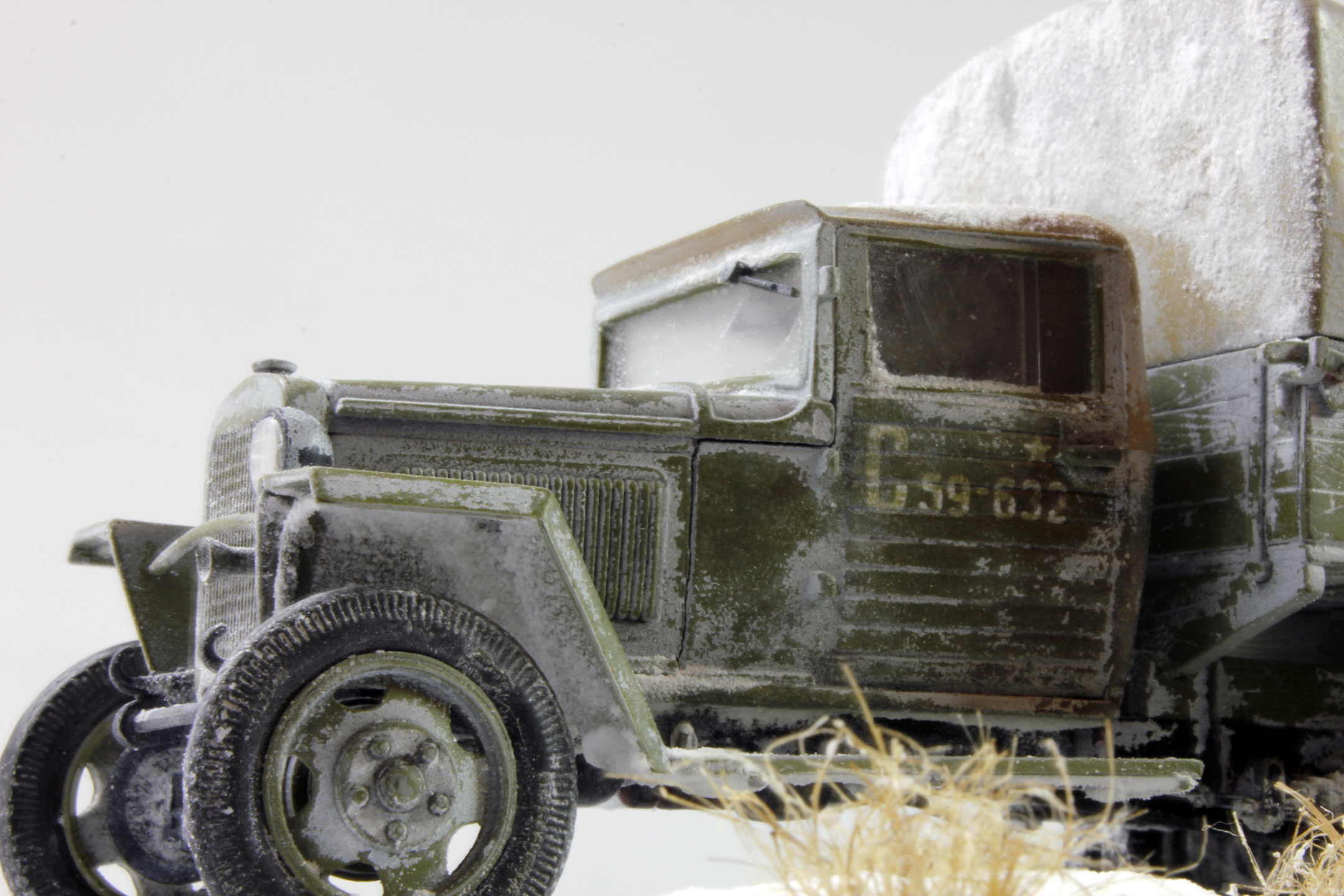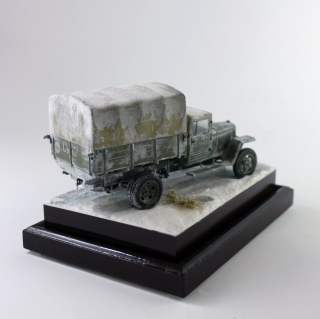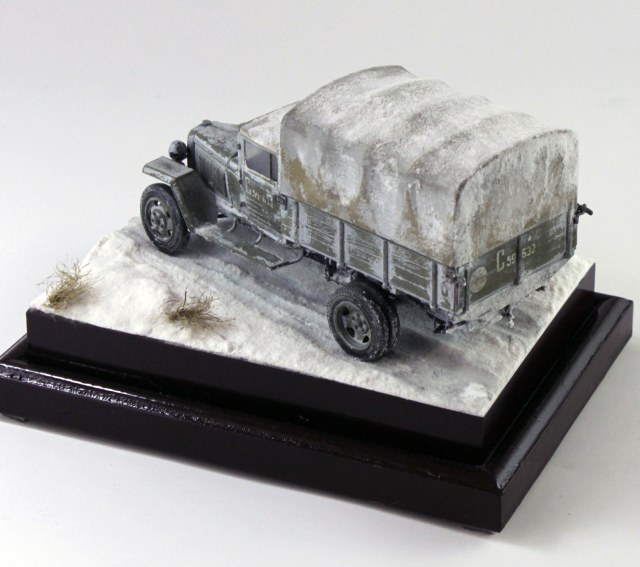 Спасибо, уважаемые. Снег делал по старой технологии: обмазал гипсовое основание ПВА, затем посыпал пищевой содой, после высыхания задул белым цветом, немного добавил в краску глянцевого лака.