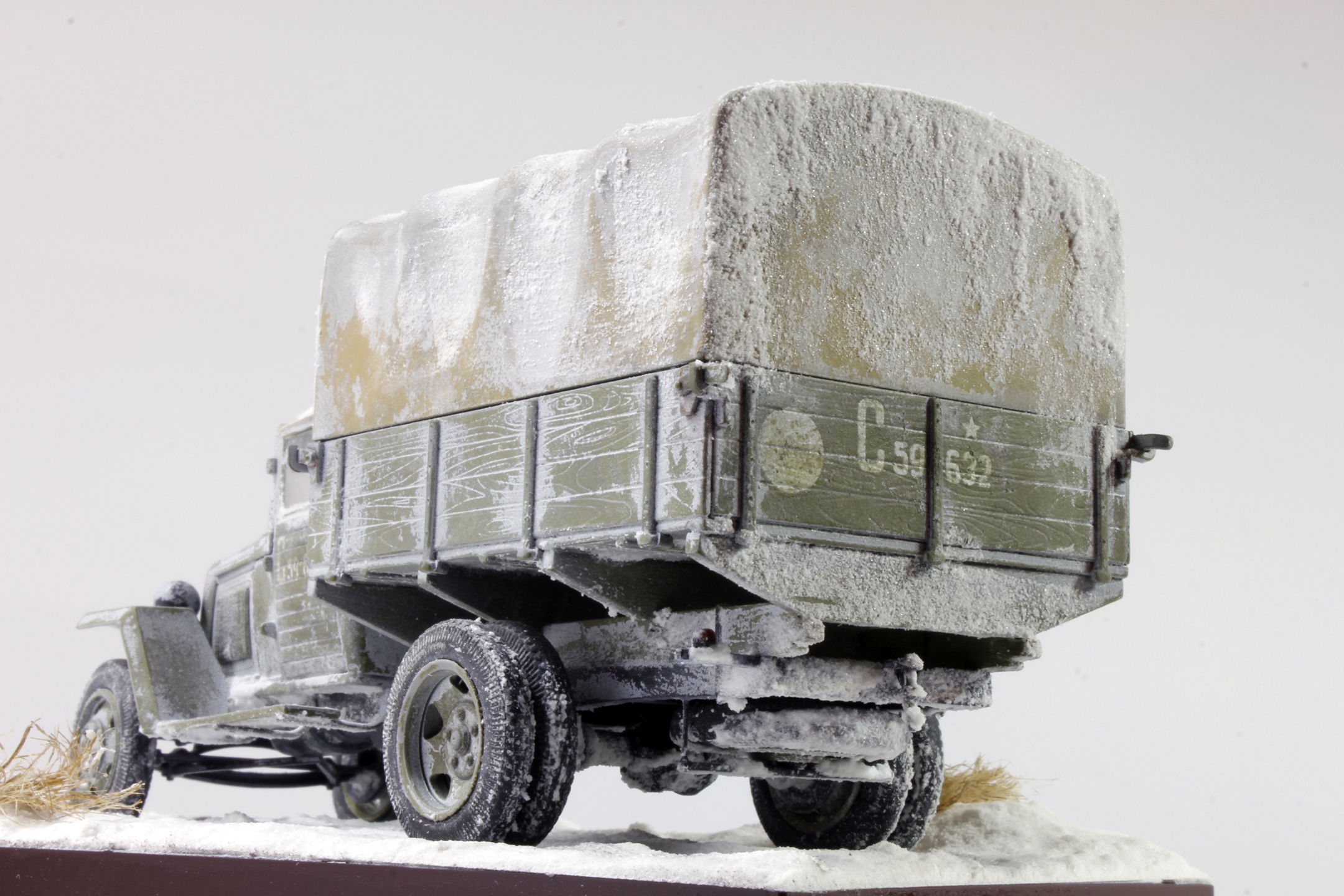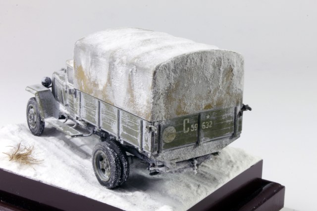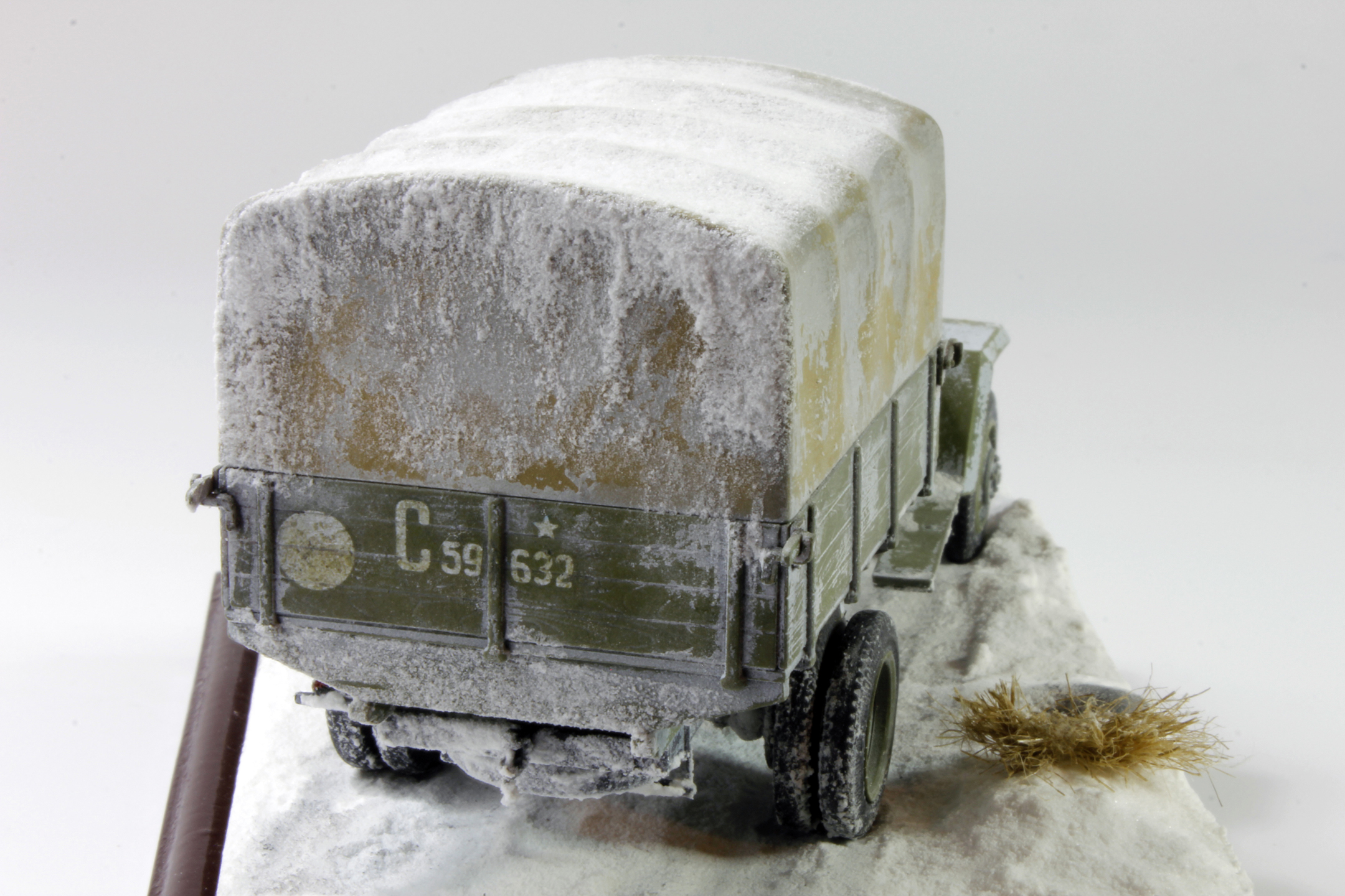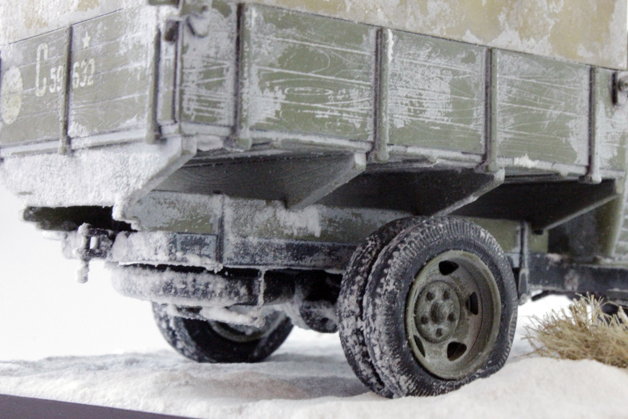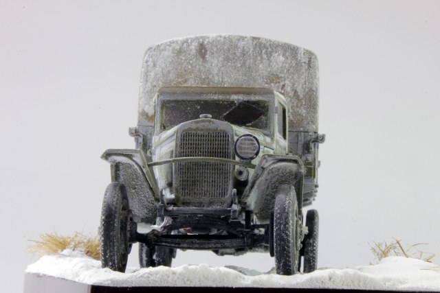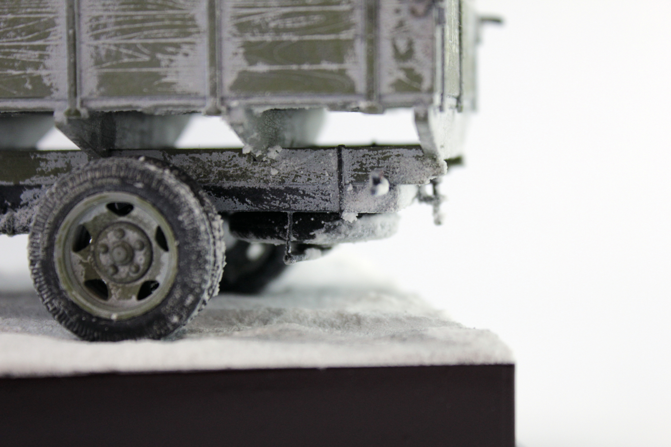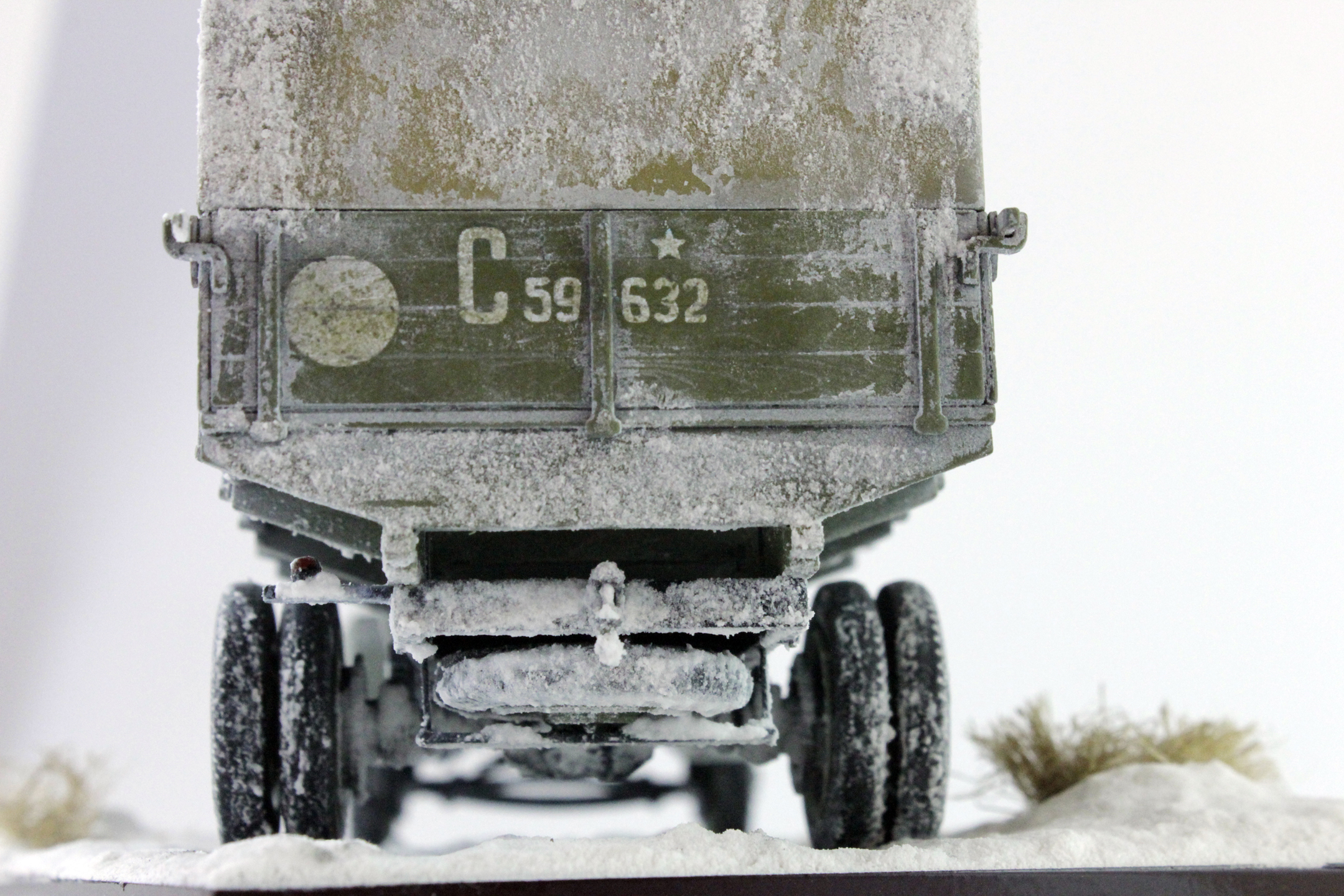 По скольку основной задачей ставилось отработка навыков сборки и покраски, то модель собиралась полностью из коробки, без каких либо переделок и углубления по матчасти. Единственным дополнением было только устройство крепления запасного колеса.