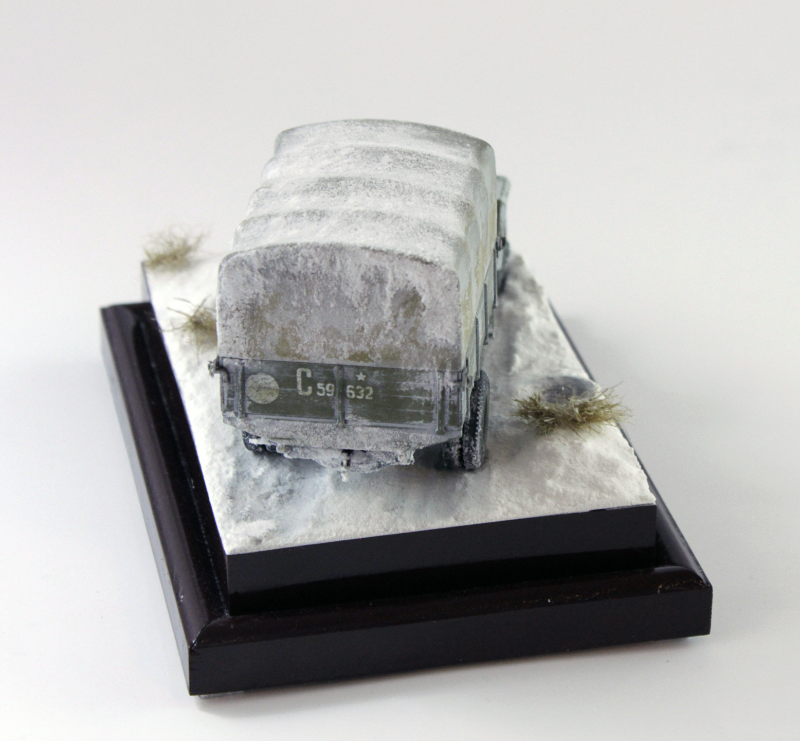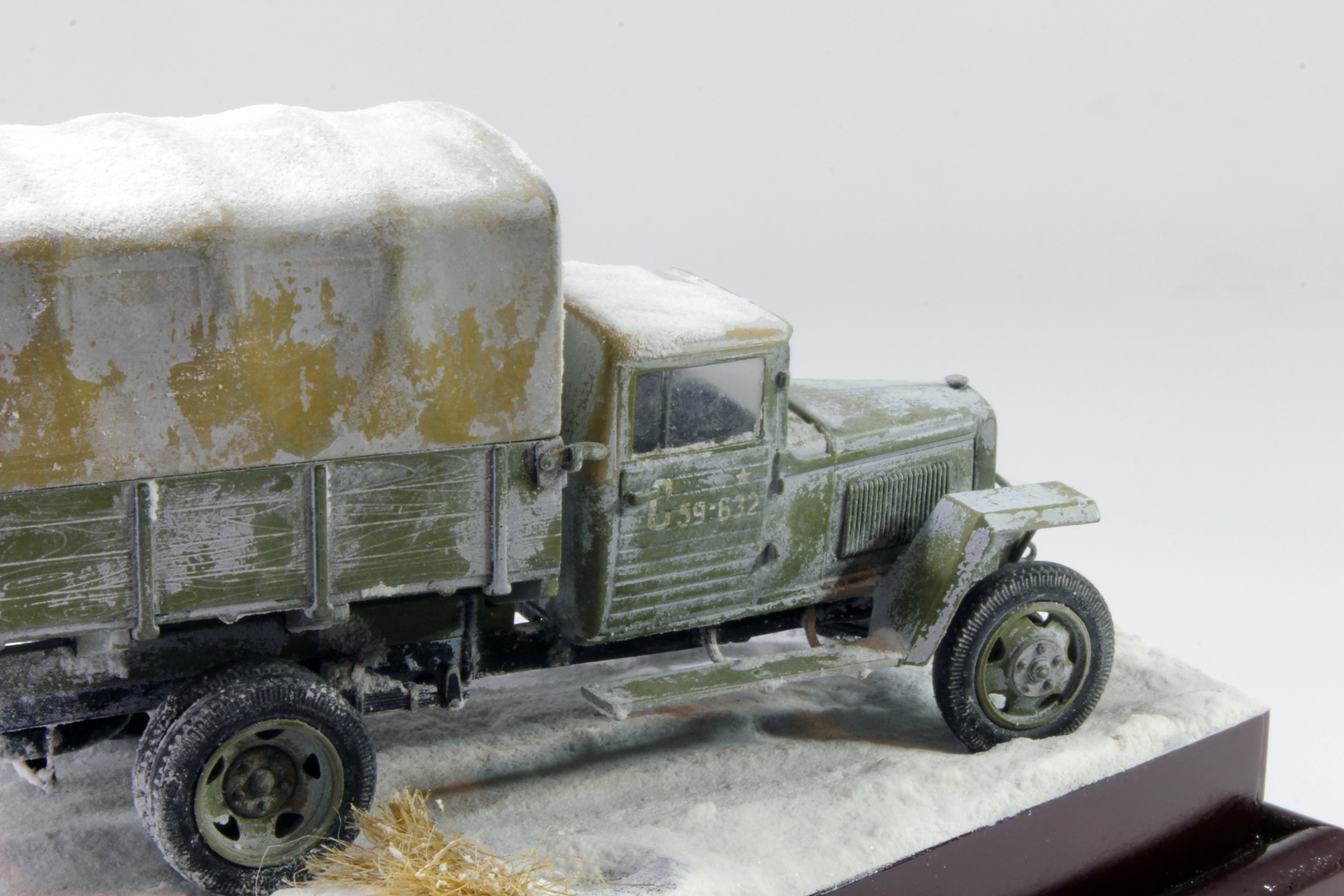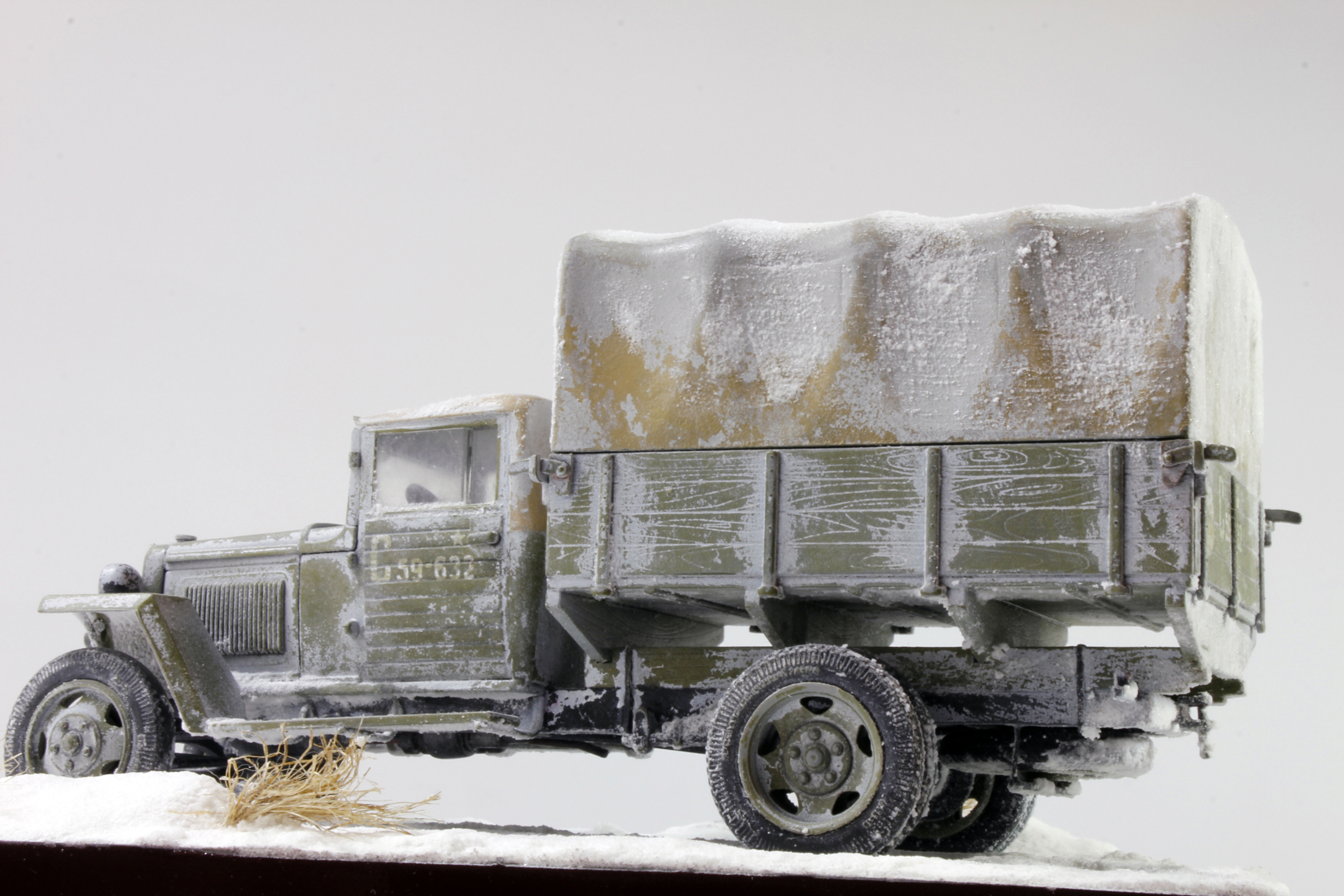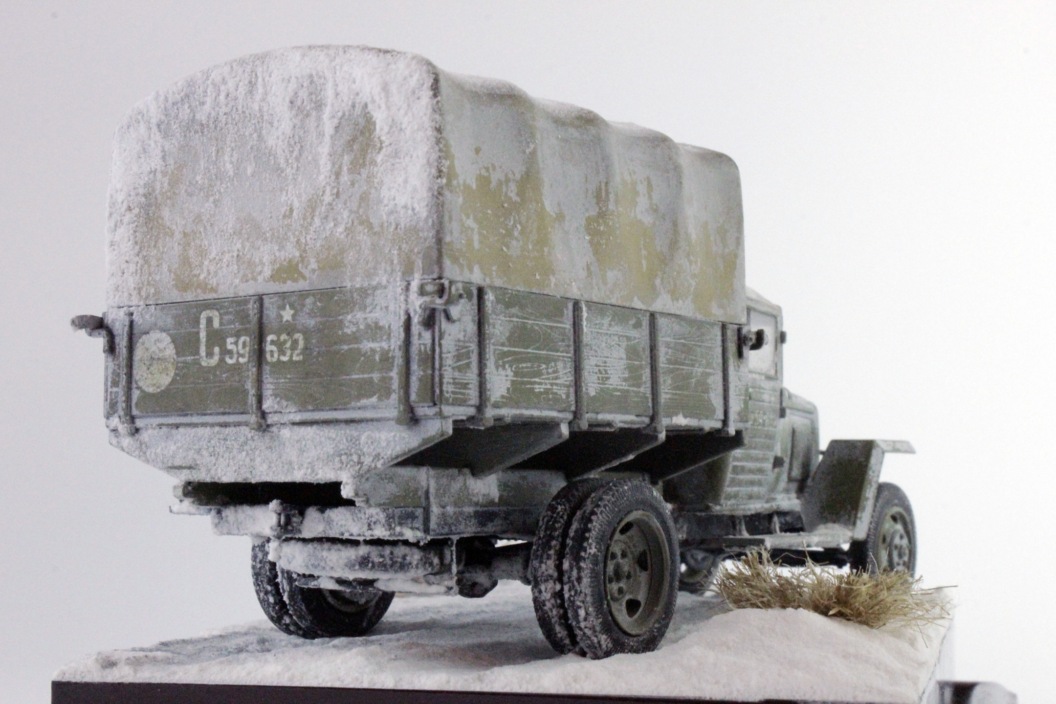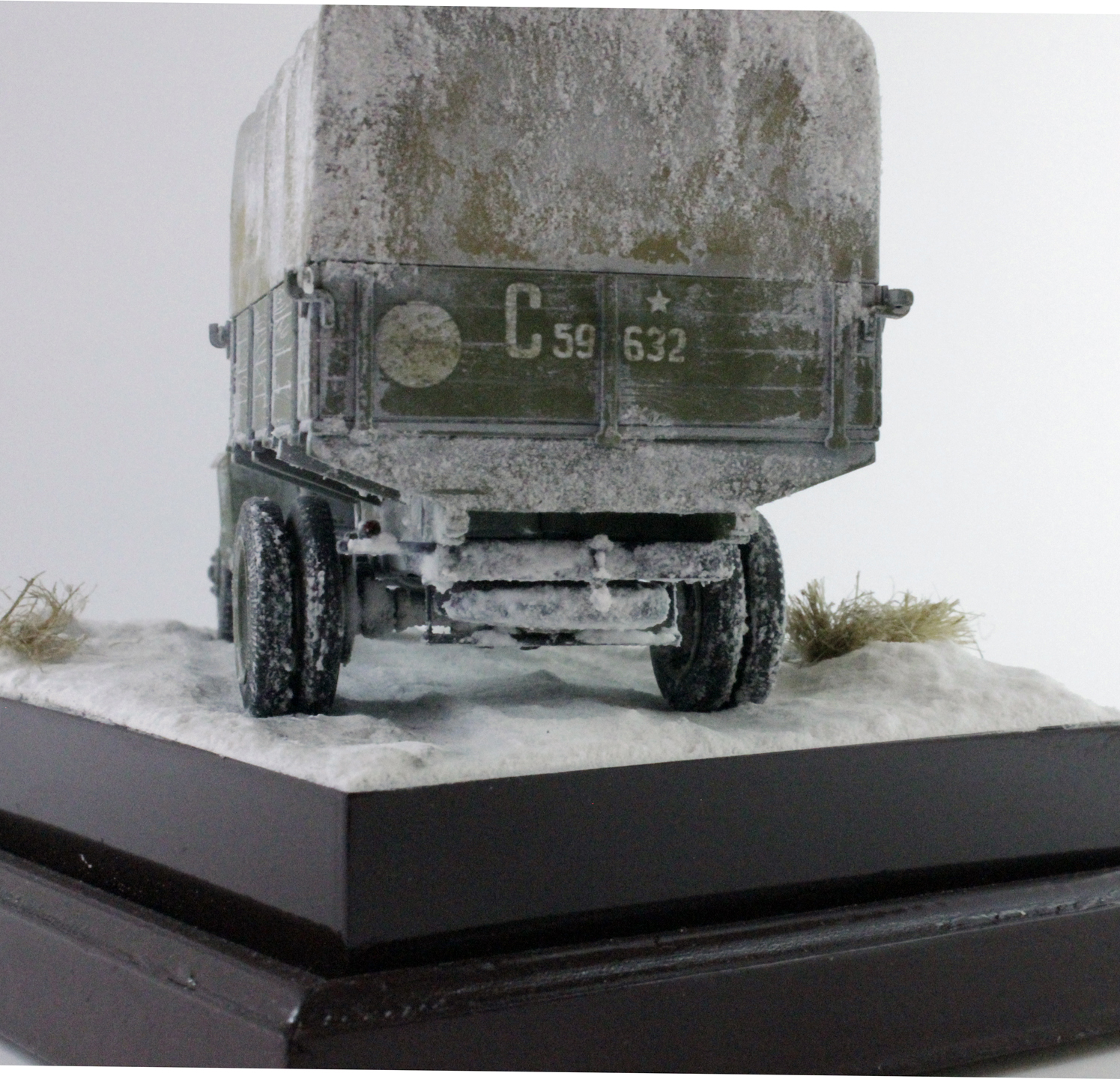 По скольку основной задачей ставилось отработка навыков сборки и покраски, то модель собиралась полностью из коробки, без каких либо переделок и углубления по матчасти. Единственным дополнением было только устройство крепления запасного колеса.