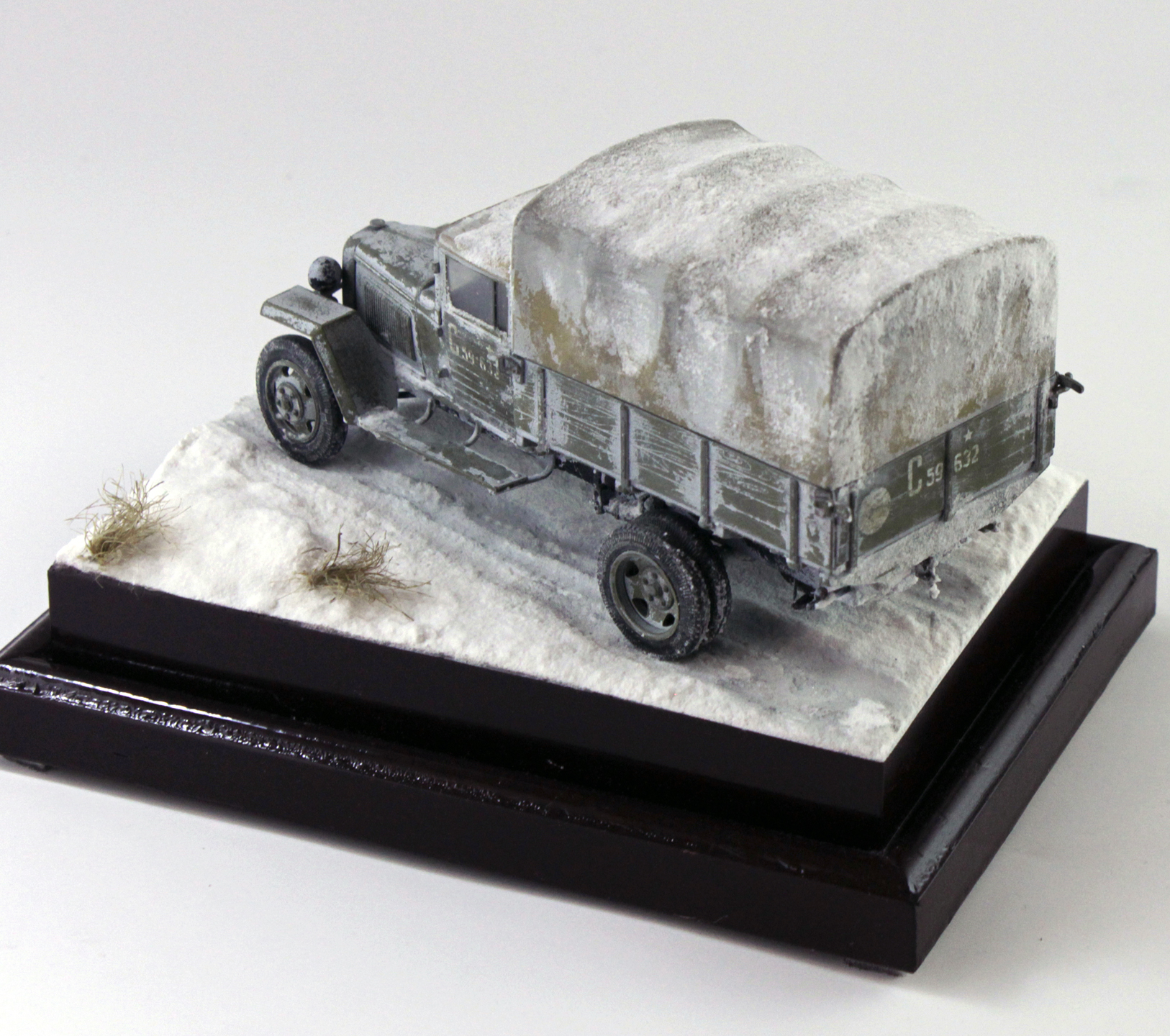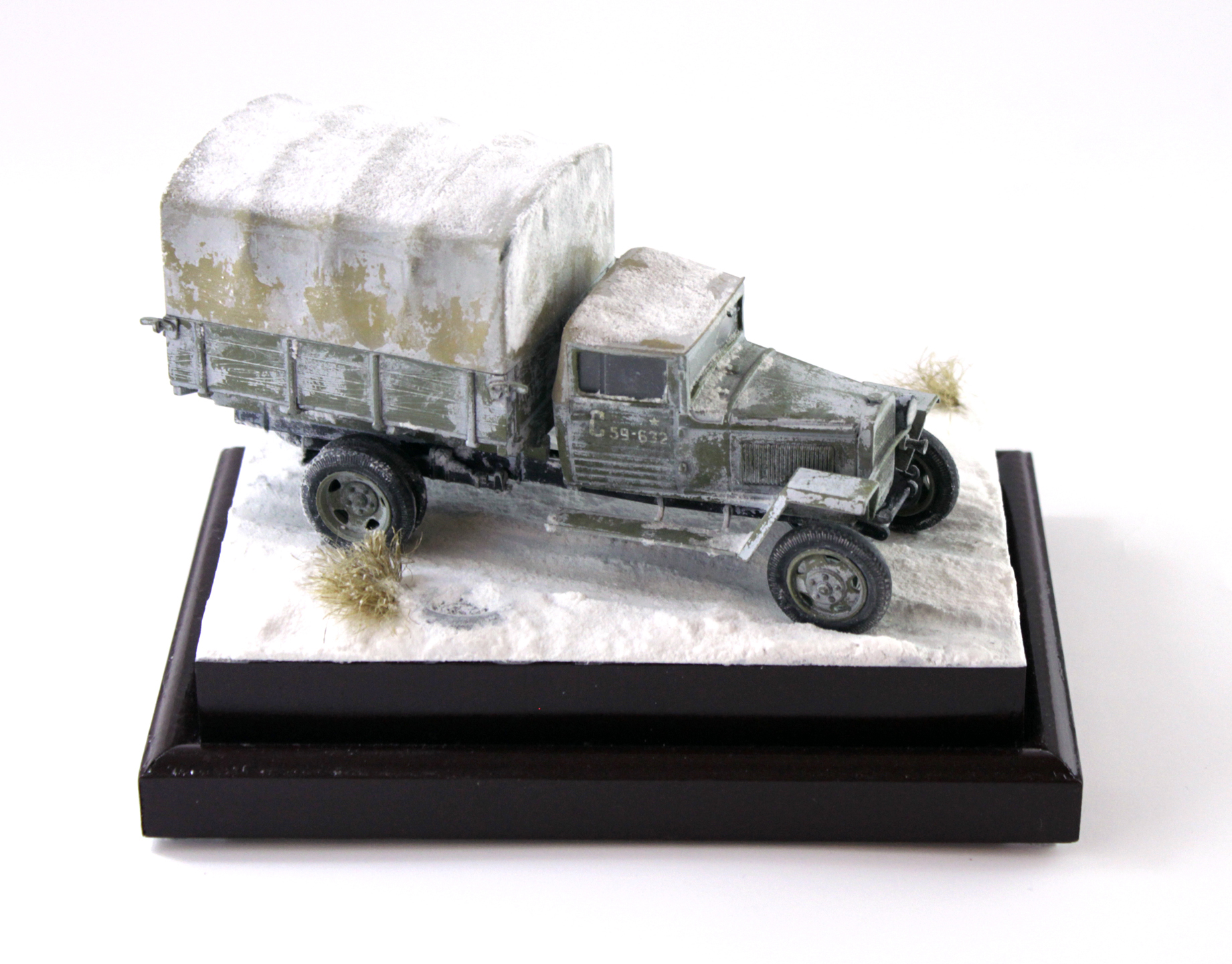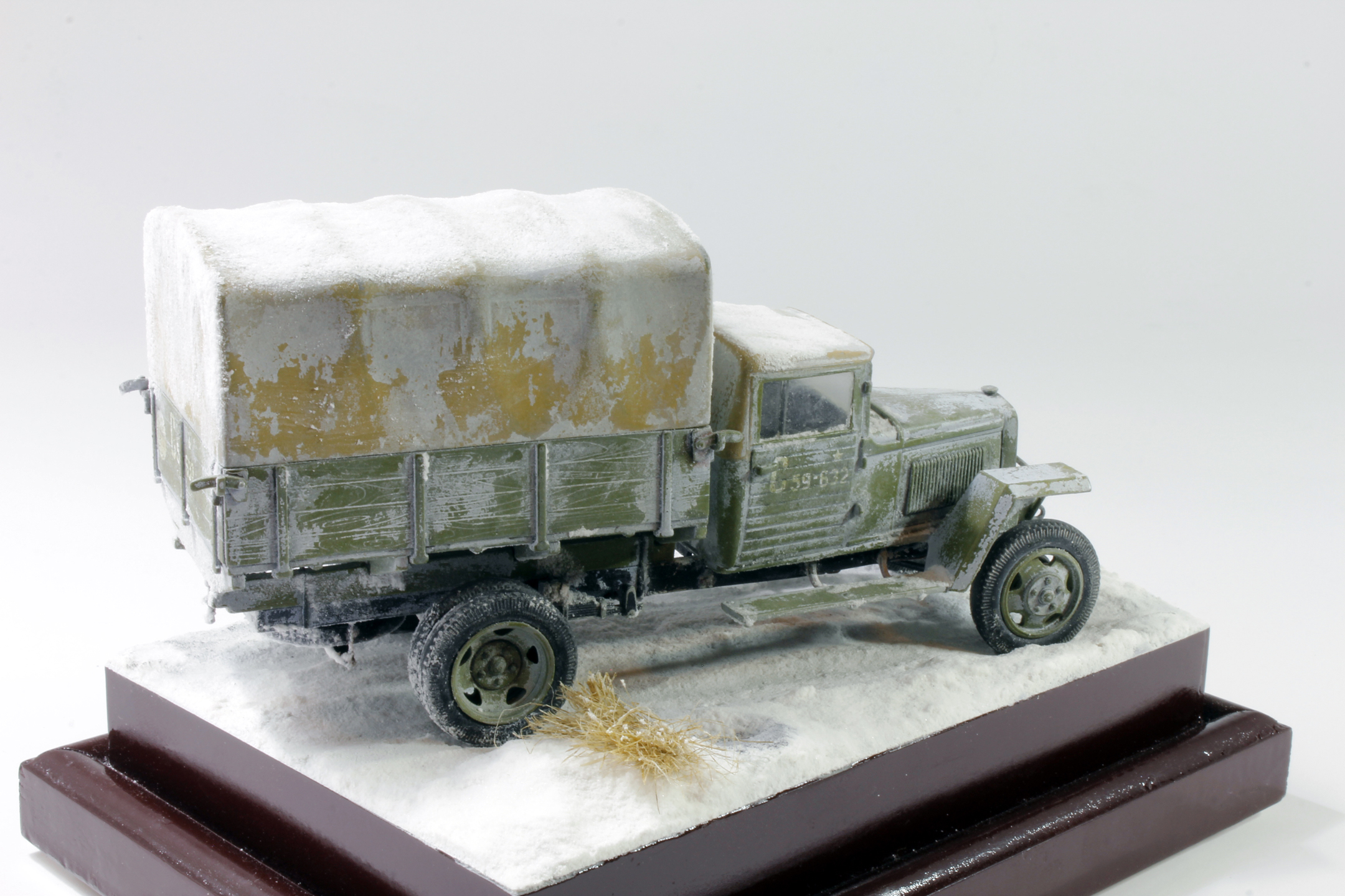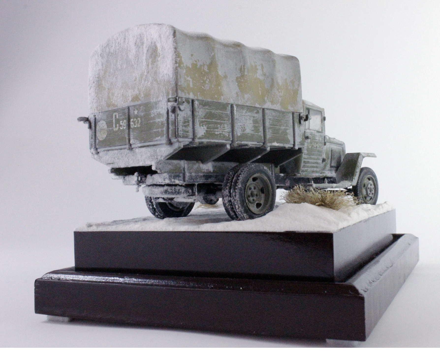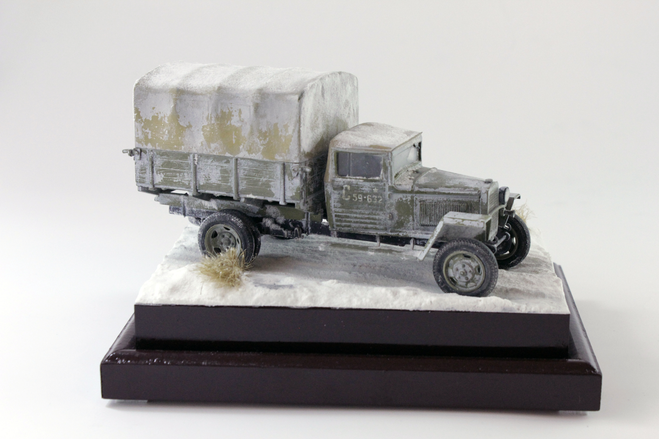 По скольку основной задачей ставилось отработка навыков сборки и покраски, то модель собиралась полностью из коробки, без каких либо переделок и углубления по матчасти. Единственным дополнением было только устройство крепления запасного колеса.