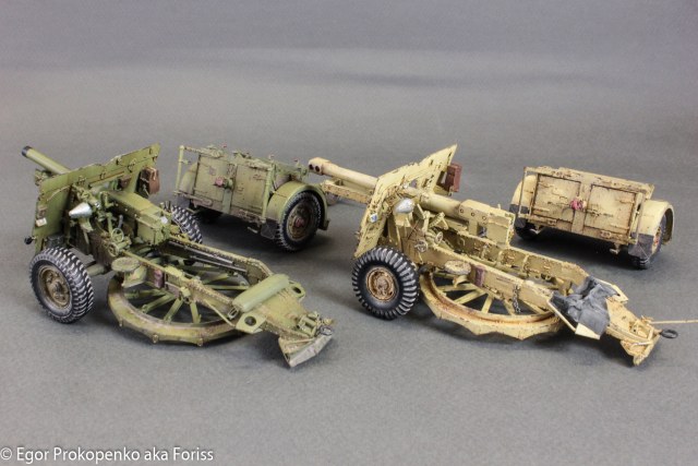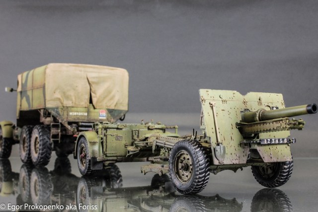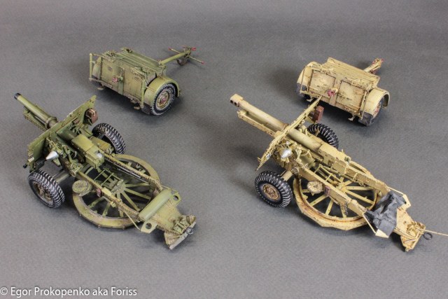 После модели ScammellR100, озадачился вопросом артиллерии, под руку как раз подвернулся набор от Бронко с 25-пяткой, к тому же у меня уже оооочень давно лежит 25-пятка от Тамии 70-х годов, которая настолько дубовая, что настроения ее доделывать у меня не было. В итоге, собрал Тамию вместе с Бронко, чтобы сравнить.