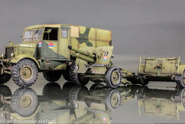 По набору – набор Бронко отличный, очень детализированный, прицеп с боеприпасами имеет все боеприпасы, полки и даже декали на снаряды, но видно это особо не будет, поэтому счел это для себя не целесообразным, но для какой-нибудь диорамы будет самое то! Кроме того, набор имеет цветную инструкцию в форме книжки с фото реальных орудий,