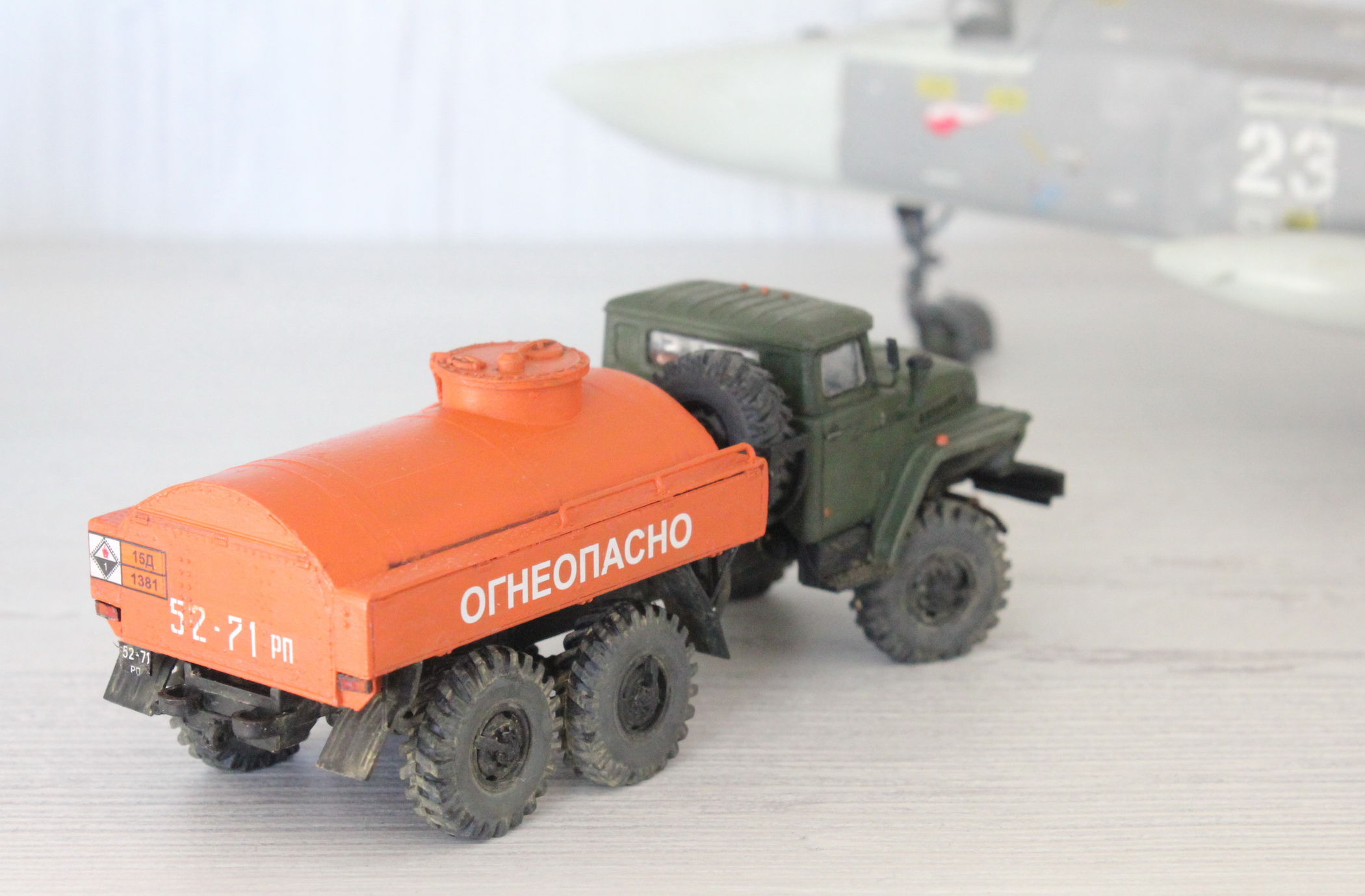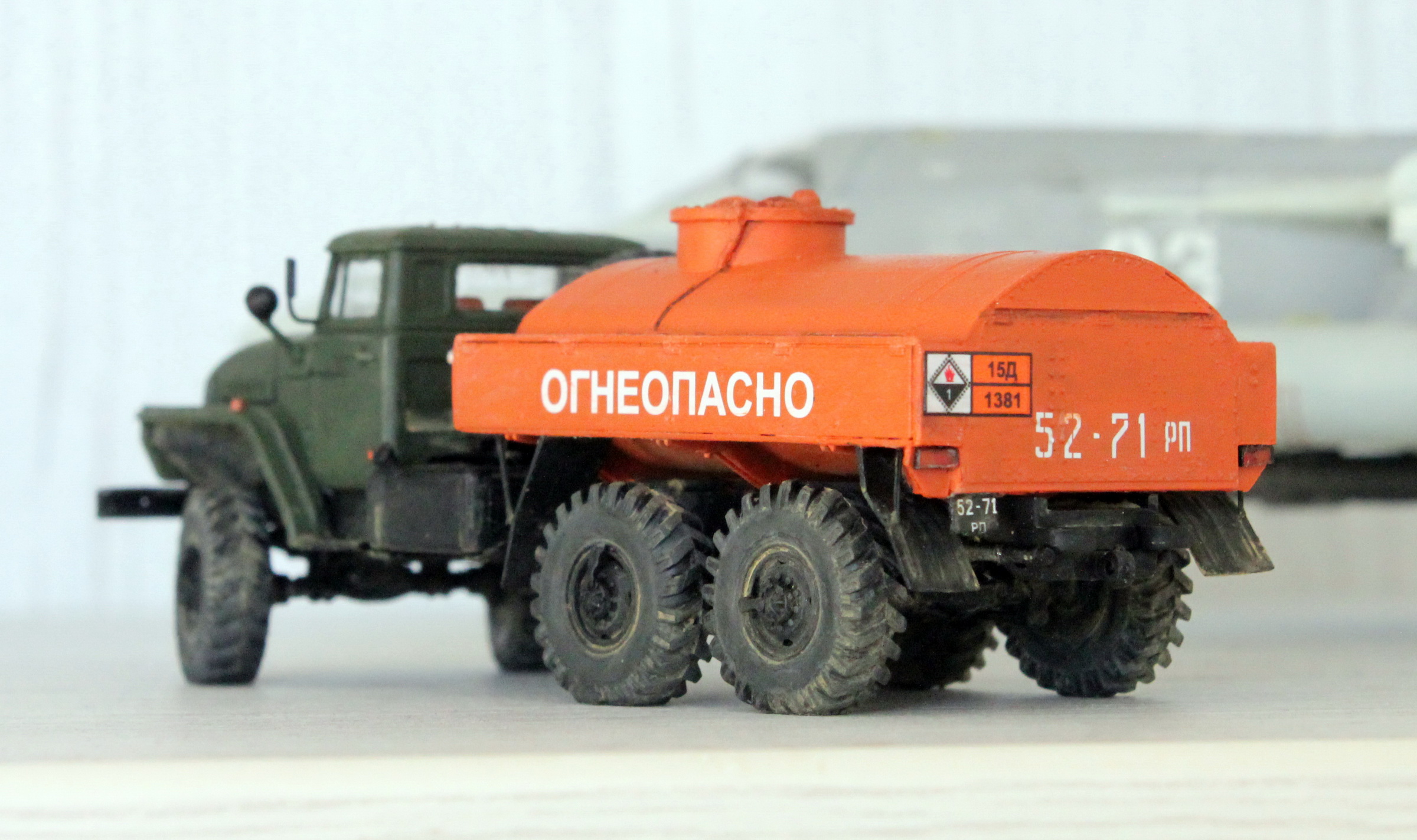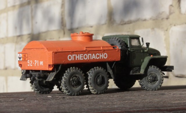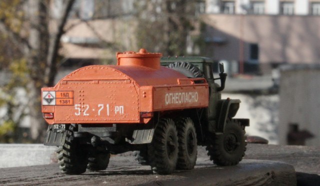 Очень хотелось какое-то яркое пятно на полке, поэтому для бочки был выбран оранжевый цвет. Такие машины встречались редко, но все же встречались.