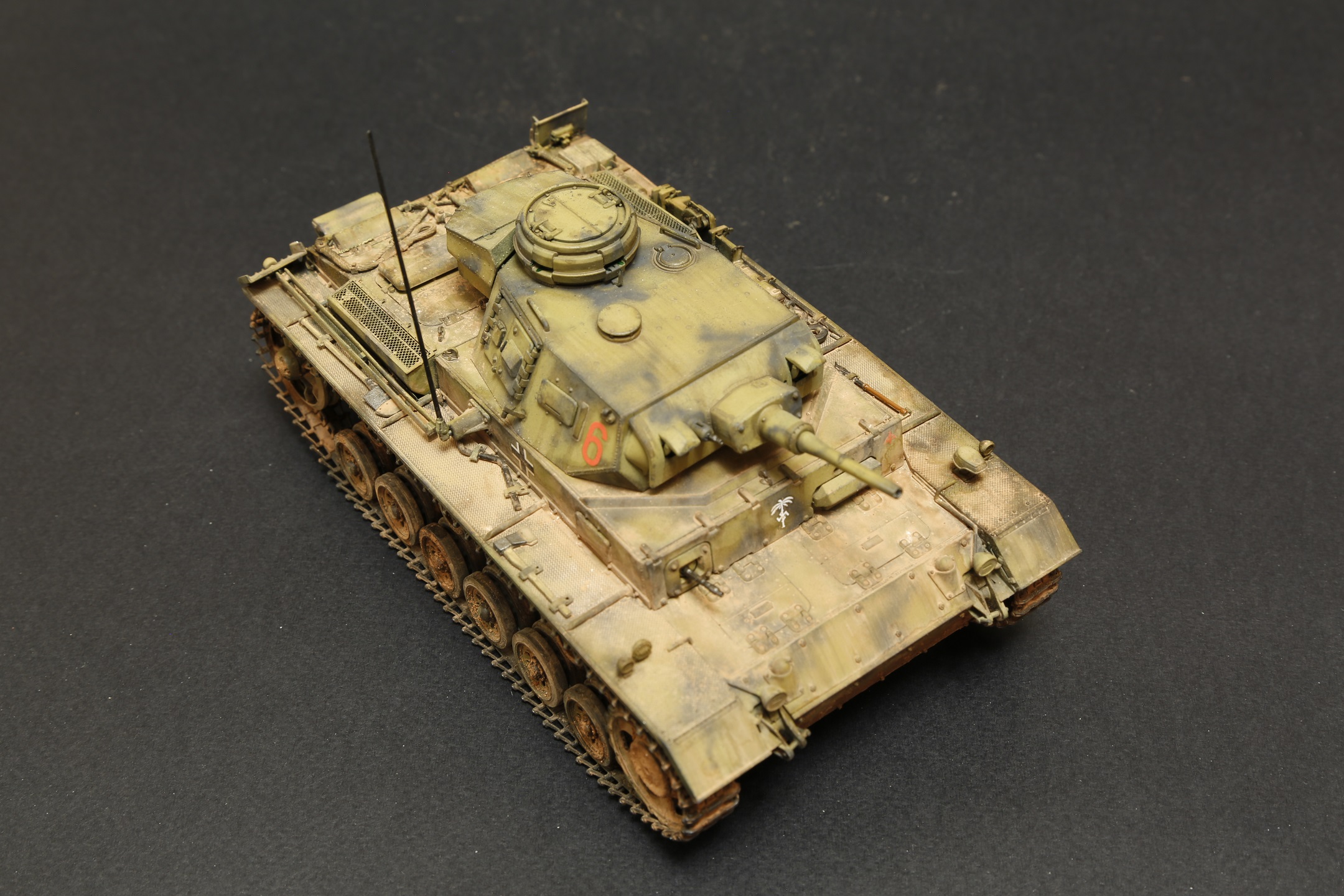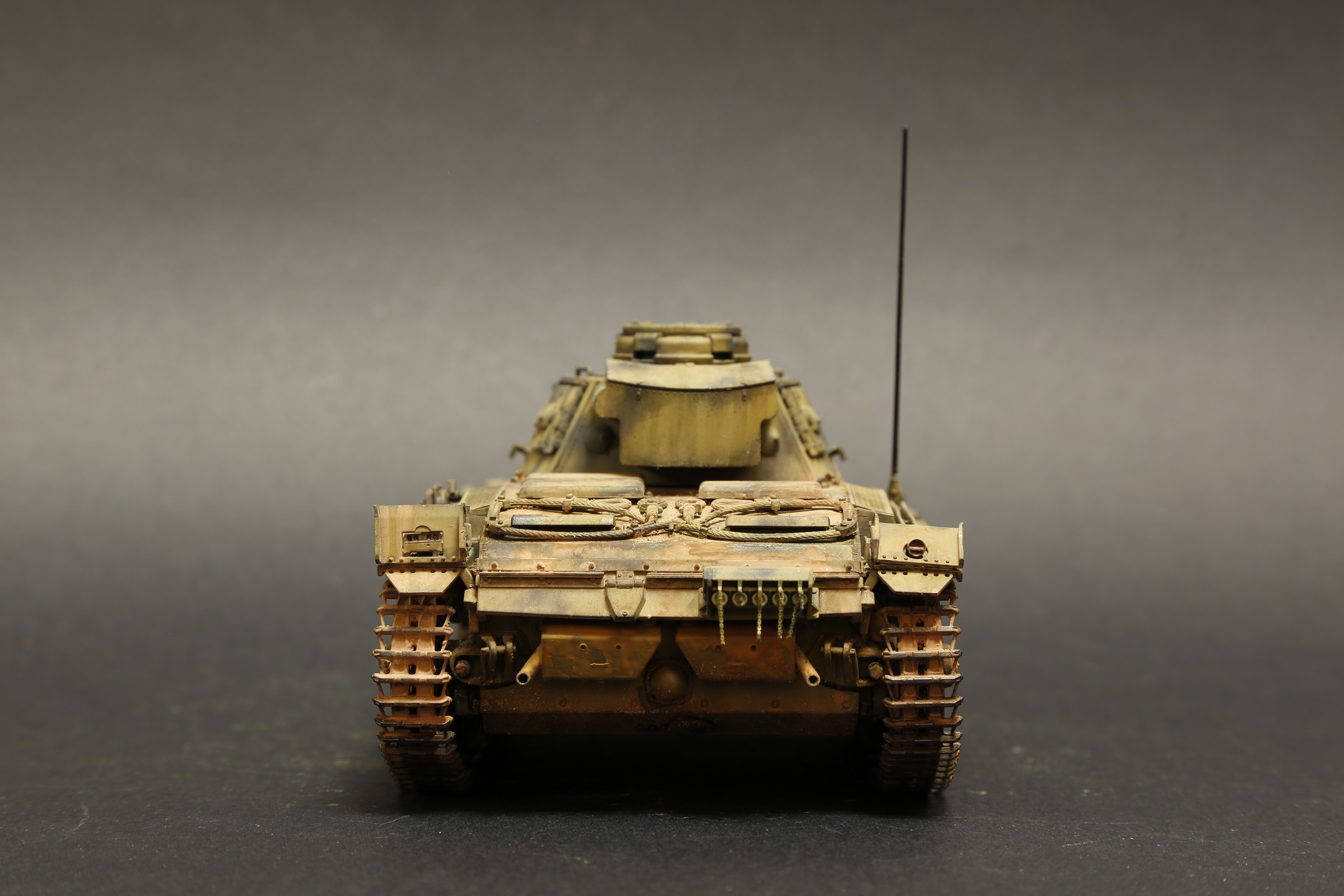 Не совсем удачно вышло запыление. Оно скорее похоже на подтеки грязи, что конечно в Африке большая редкость. Это особенно хорошо видно на крайней фотографии. А также слишком большой контраст между "запыленным" корпусом и чистой башней. В остальном хорошая работа.