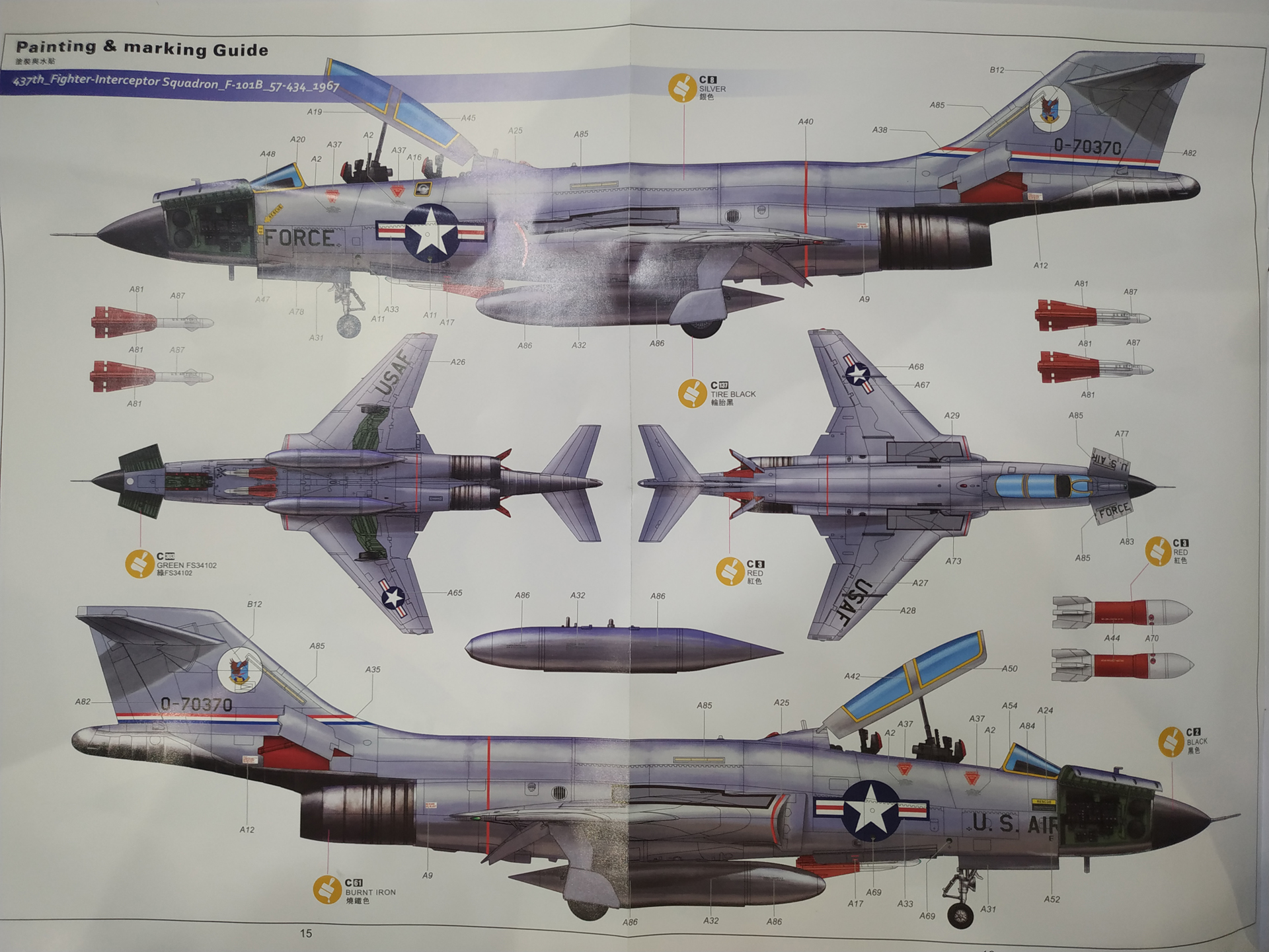 Про прототип сказано уже много, потому буду краток. Последняя крупная серия "Вуду" Двухместный. Позицировался как перехватчик. Возможна сборка в версии RF-101B. Эти самолеты были переделаны заменой системы управления огнем на фотокамеры. Этот вариант можно было легко отличить по камуфляжу тактической авиации и измененному коп гуру носовой части.