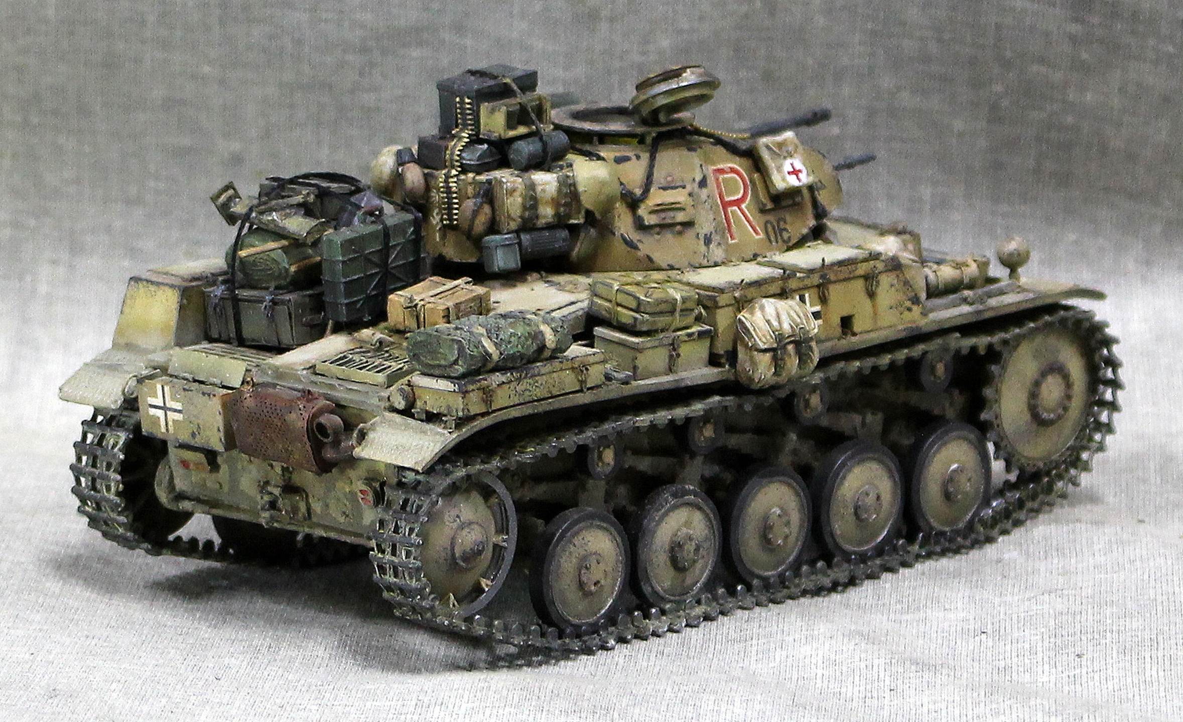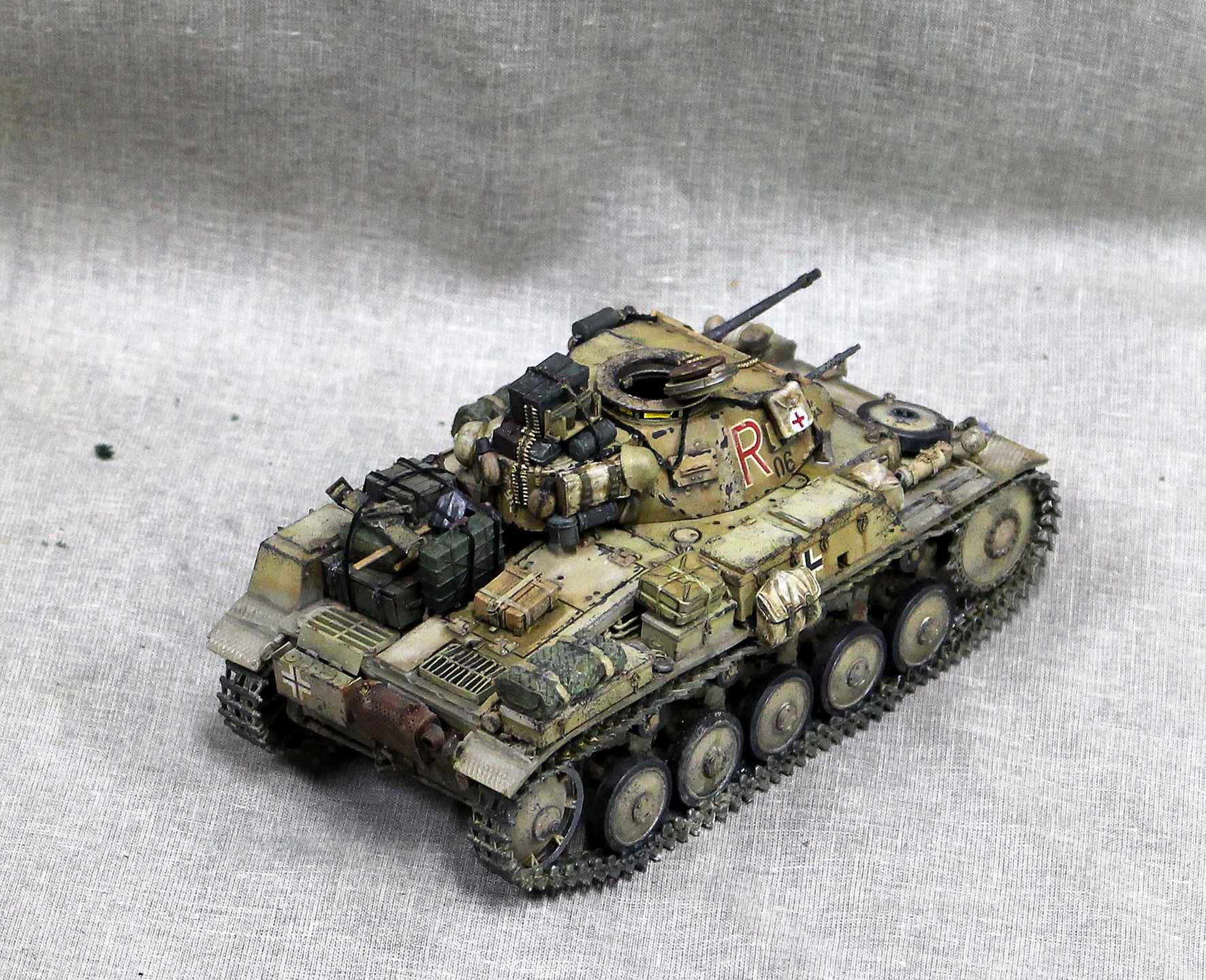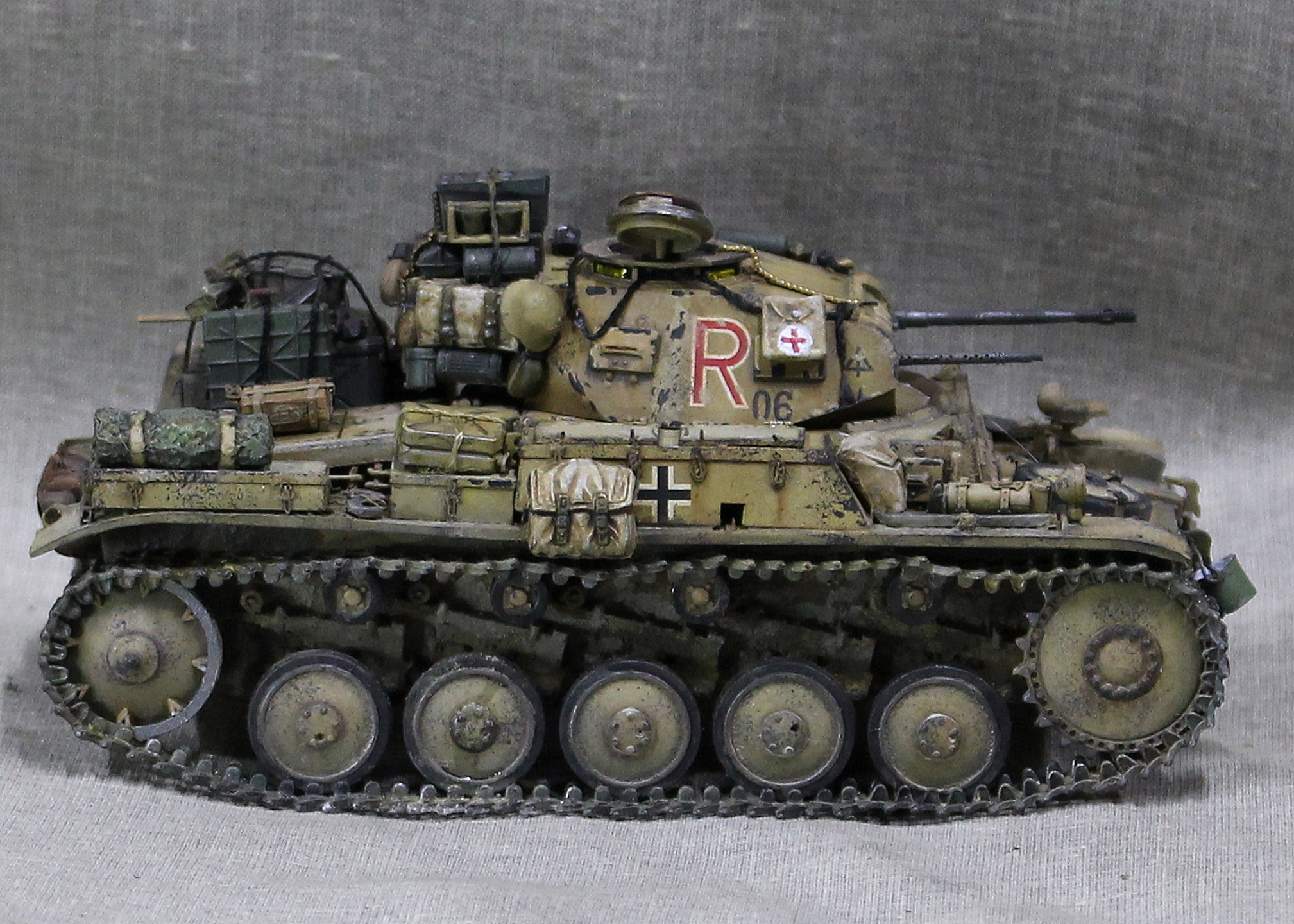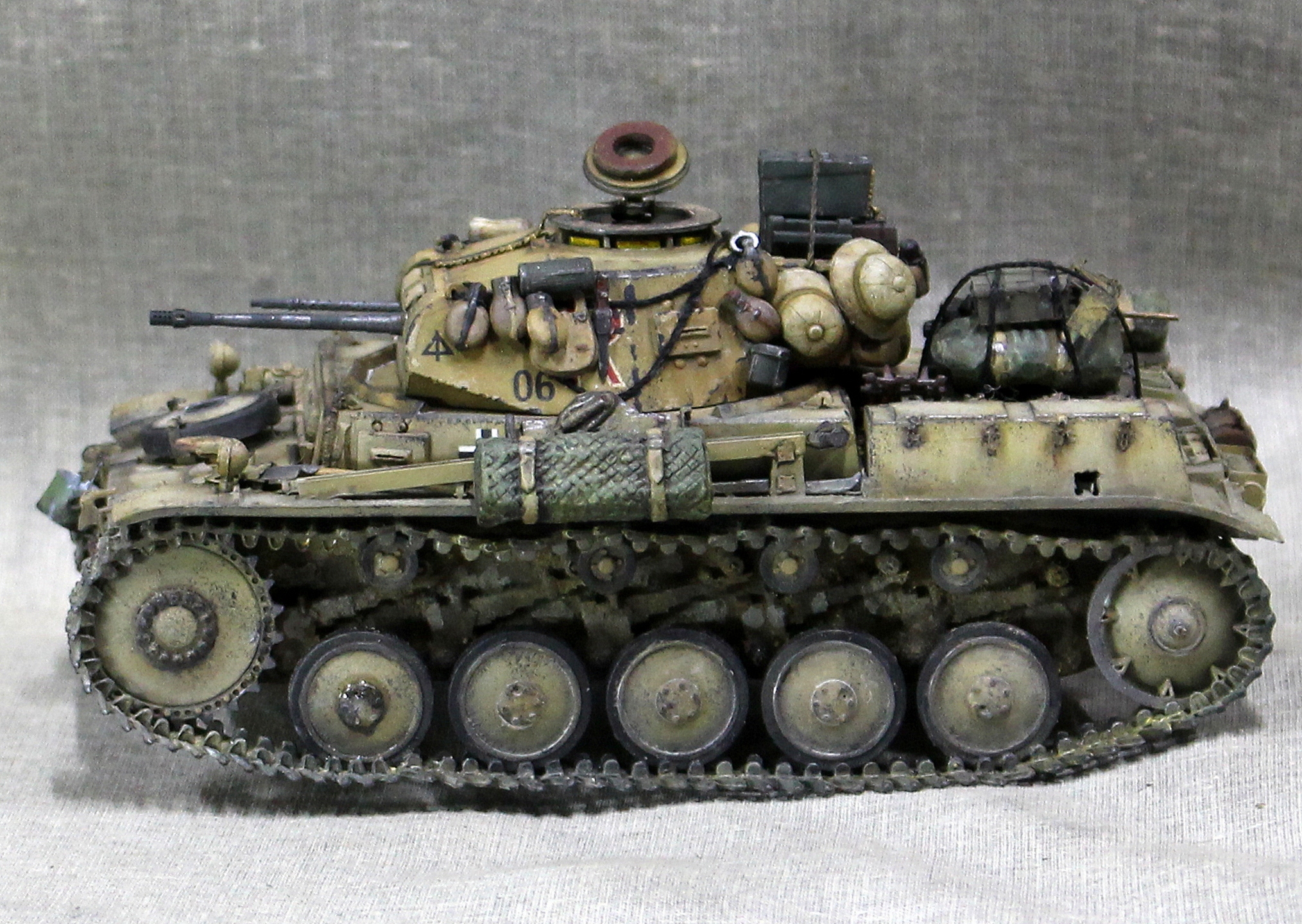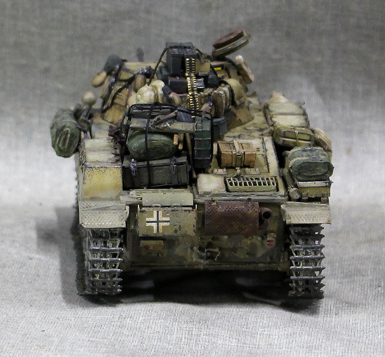Красил и грязнил в основном Тамией, перепилено очень много, живого места нет. Например траки использовались разные наборные остатки от Bronco, ARK, Tamiya, Dragon.