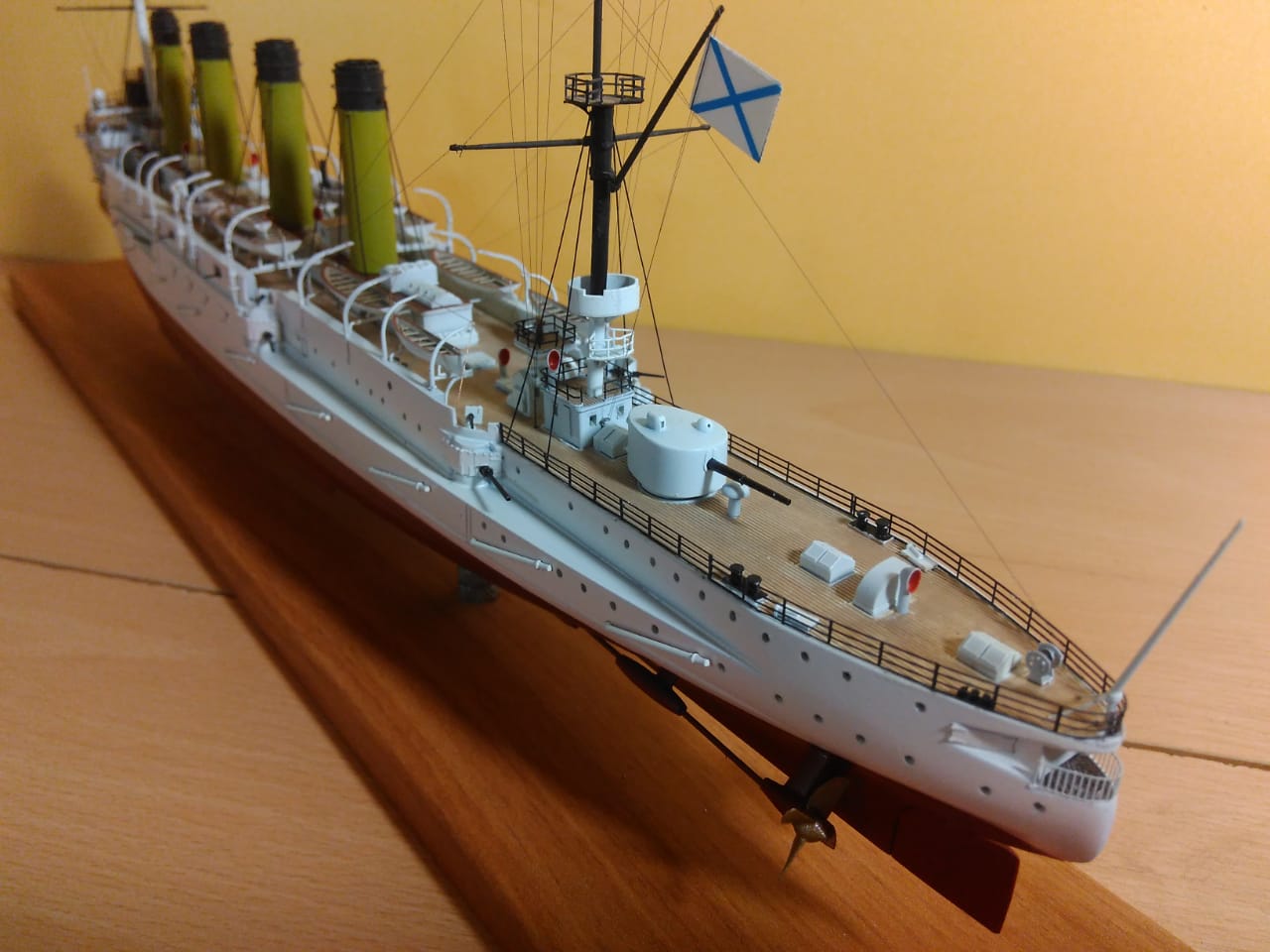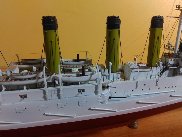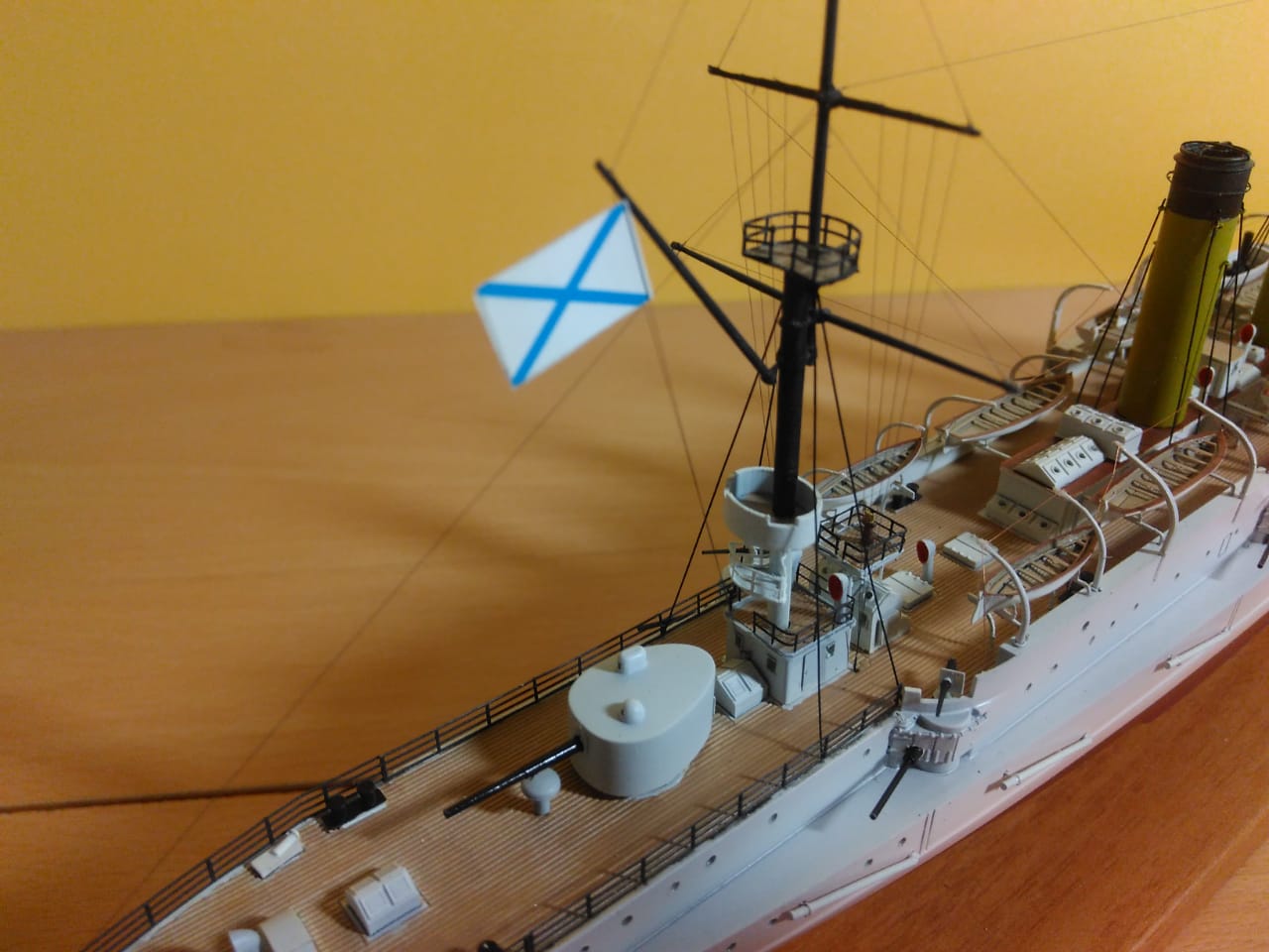 Как же мне нравится такая окраска! Корабли в таком окрасе очень красивы! Вопрос был по леерам, но прочитав комментарии выше я нашёл ответ, теперь понятно почему они чёрные. В целом модель оставила приятные впечатления! Пожалуй белый шар!