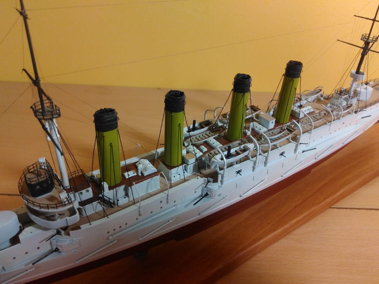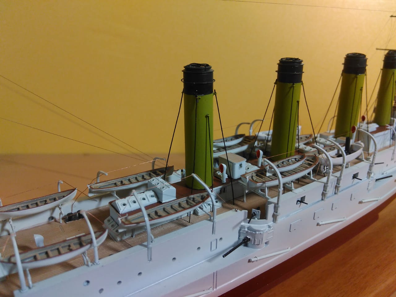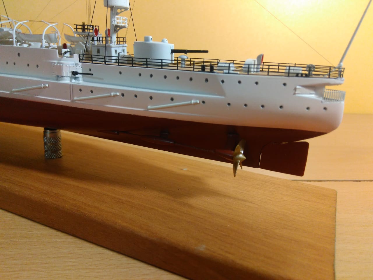 Как же мне нравится такая окраска! Корабли в таком окрасе очень красивы! Вопрос был по леерам, но прочитав комментарии выше я нашёл ответ, теперь понятно почему они чёрные. В целом модель оставила приятные впечатления! Пожалуй белый шар!