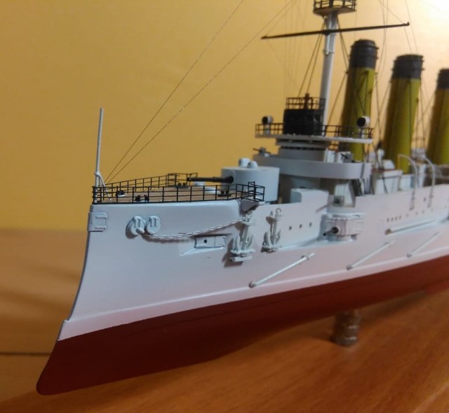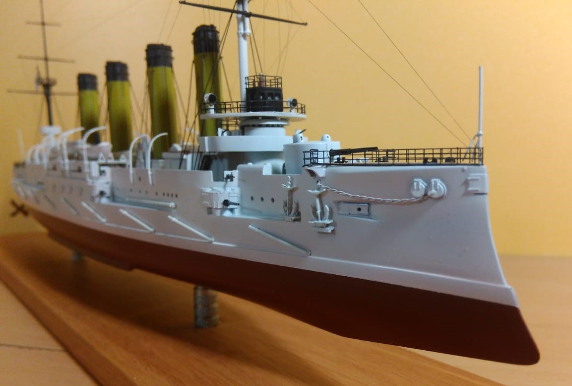 Здравствуйте друзья и коллеги. Продолжаю размещать модели из моей коллекции. Теперь Броненосный крейсер "Баян" на 1903 г. в "Заграничной" белой окраске. Нравится мне Артурская эскадра в этих цветах.Большую помощь оказала книга С. Виноградова и А.Федечкна "Броненосный крейсер "Баян" и его потомки" . Как всегда множество чертежей, схем и масса качественных фотографий. Не буду останавливаться на ТТХ и истории этого незаурядного корабля. Все это есть в книге.