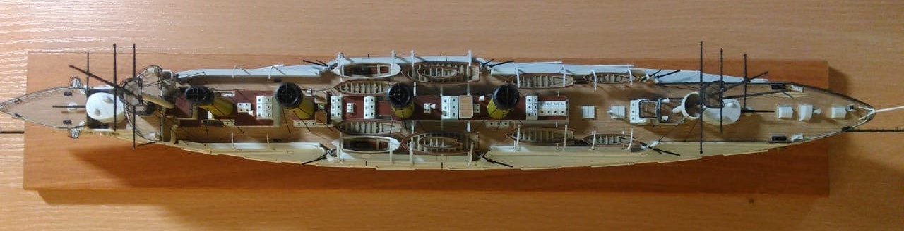 Хорошо бы добавить в носовые,кормовые и центральную батарею 75 мм и 47 мм орудия.Пустые казематы не смотрятся.