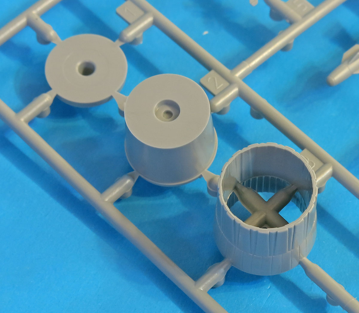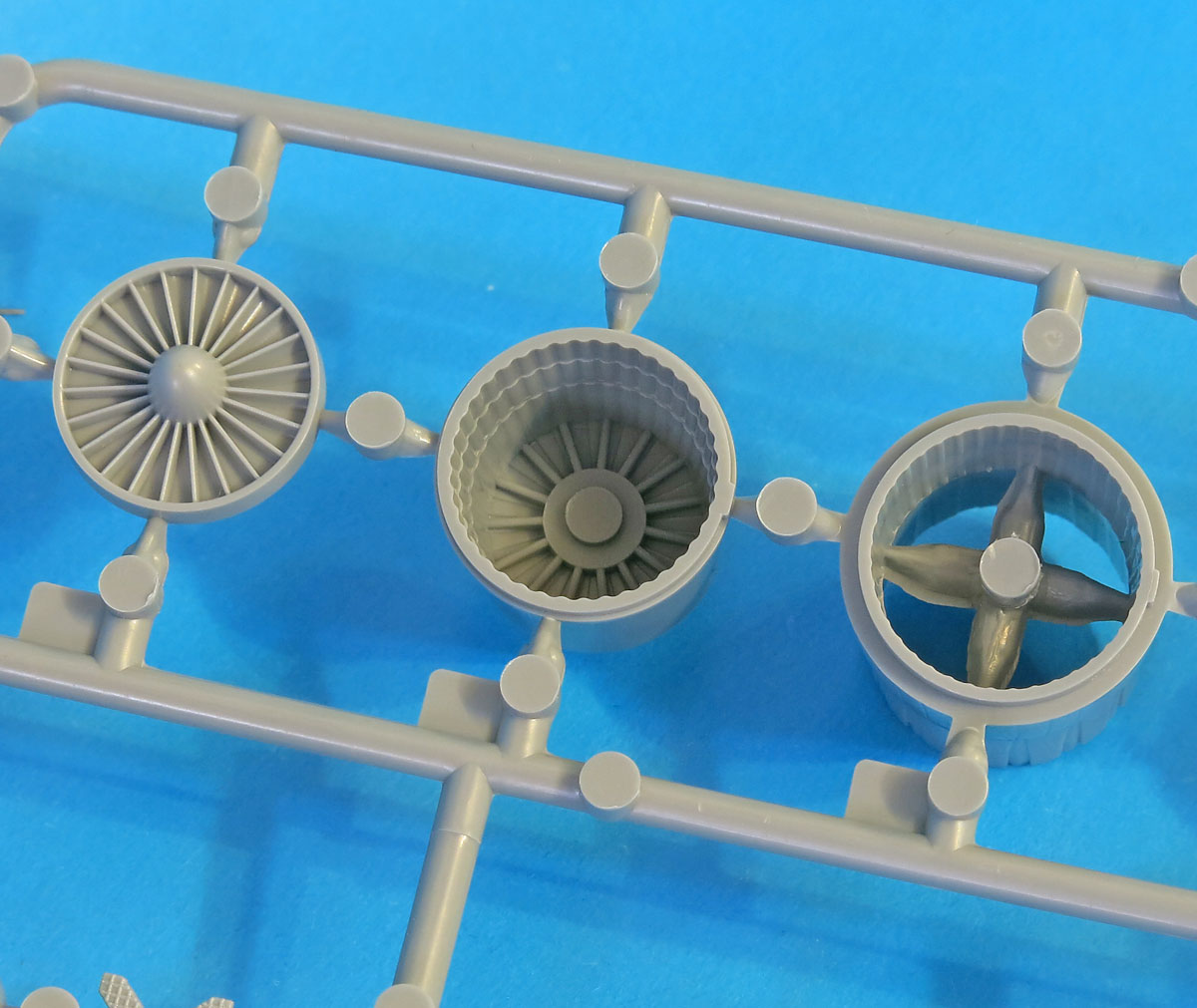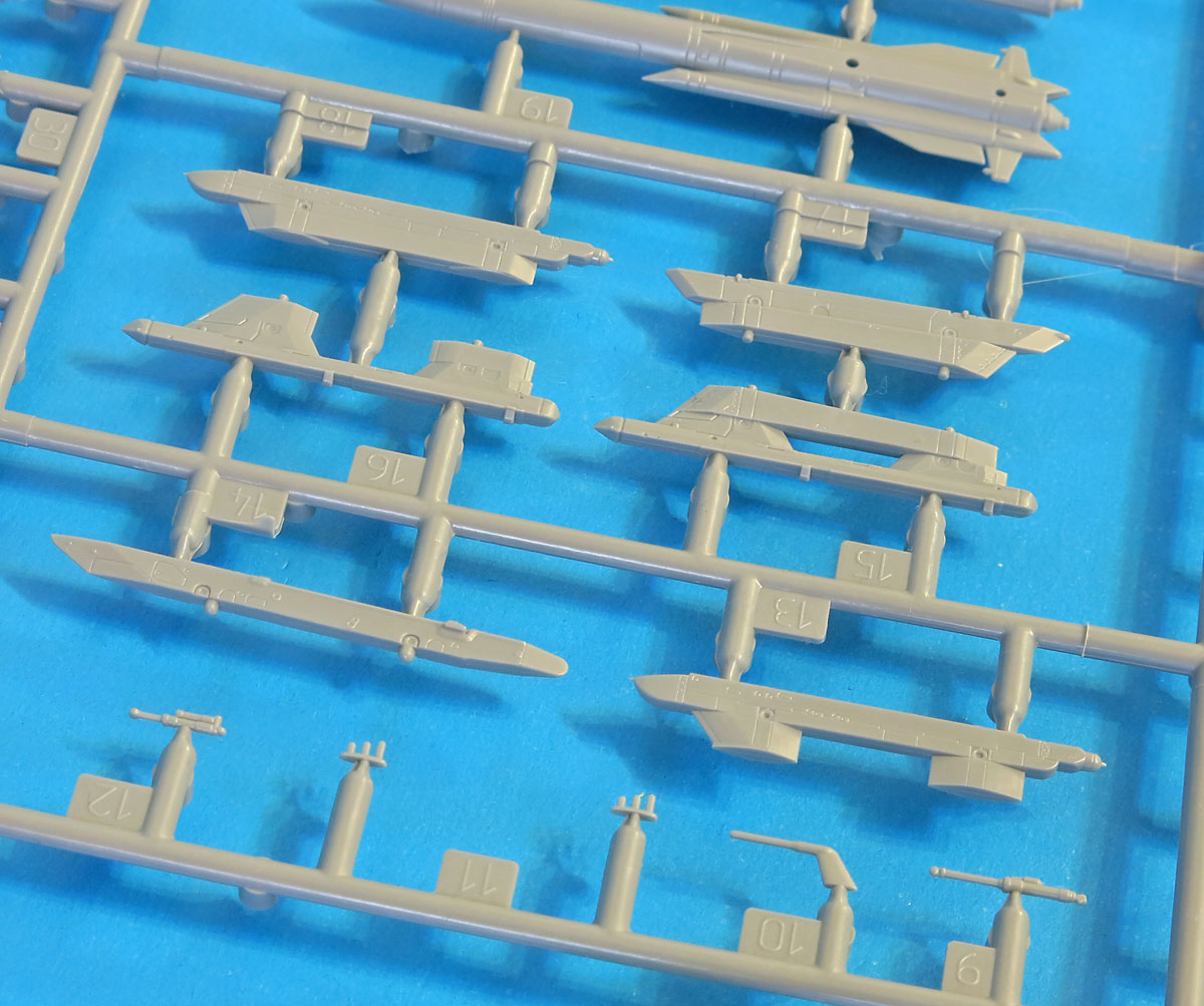 Новые части воздухозаборников и килей (в чем новизна сразу непонятно на глаз). Новый верх передка и ниша переднего шасси (тут все видно и понятно). Новые основные колеса (точнее их диски)