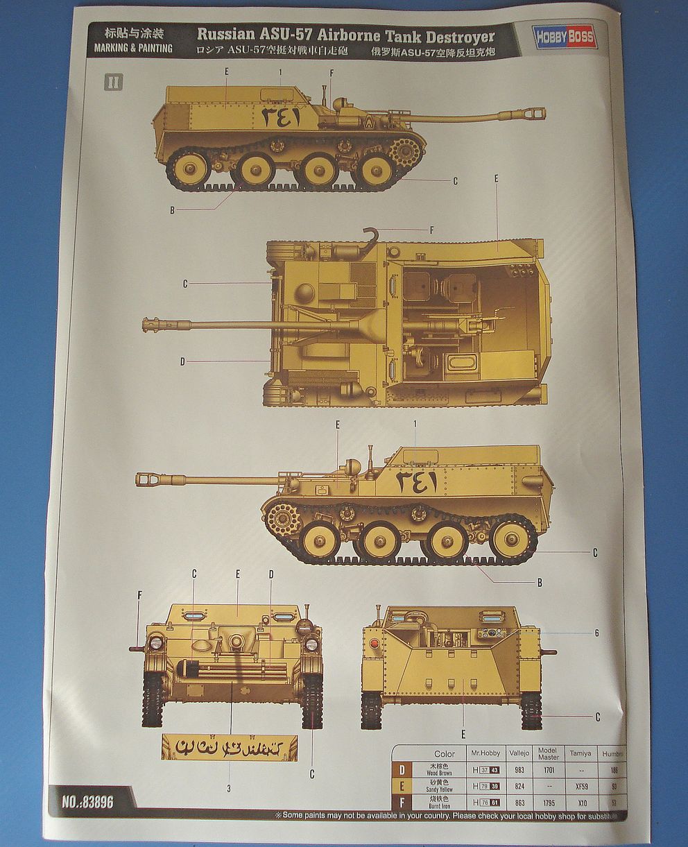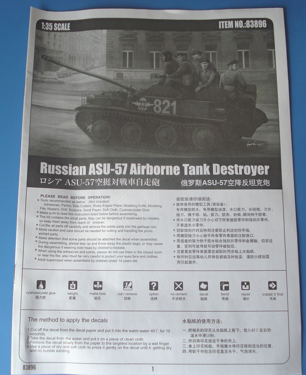 в поисках модели АСУ-57 набрел на скейлмейтс - ссылка на данную "рецензию", как ни странно, имеется на scalemates. Откровенно говоря, данный опус не заслуживает упоминания на том сайте. Это не рецензия, а халтура. По матчасти - ни слова, по прототипу см. Википедию, ну вот написал, что пластик песочного цвета да сравнил с прости господи аер молдовой (она же - модель от ВЭ)...