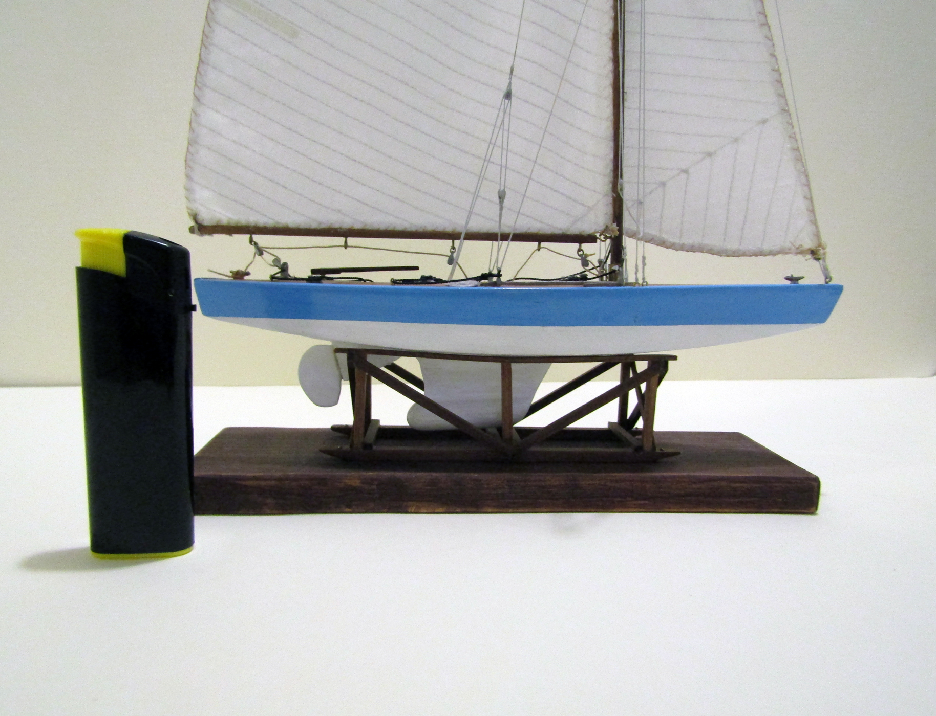 На мой взгляд такая подставочка не очень подходит к данной модели, т. к. "съедает" подводную часть у яхты.