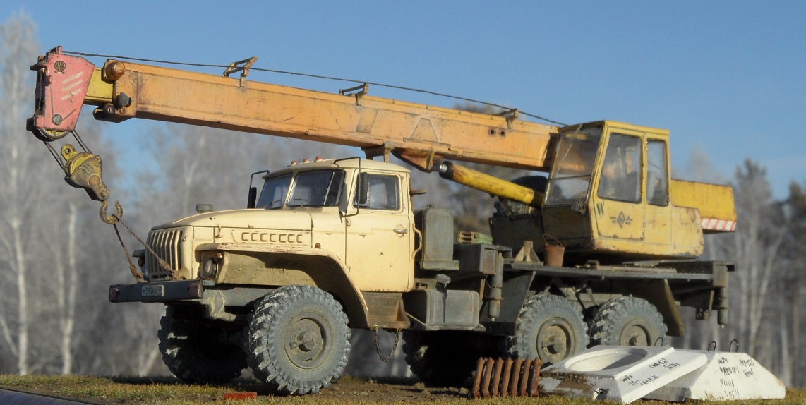 Всем привет, представляю очередную новинку от AVD Models- модель автокрана КС-3574, на базе Урал 4320. Модель очень интересная, Урал имеет металлическую раму и кабину, остальное пластик, крановая установка полностью из пластика, имеет отличную деталировку. Упоры выдвигаются, опускаются ноги ( сделаны из металла). Фототравлением даны дворники, все очень хорошо пролито, без облоя . Несмотря на большое количество деталей, благодаря инструкции все просто и легко собирается! Мне модель очень понравилась.Окрашена Мотип чайная роза кабина, кран желтый, стрела охра мотип. Приятного просмотра!