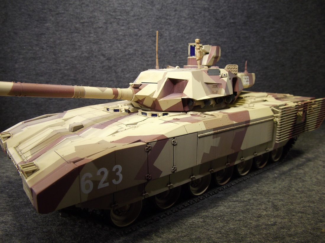 Решил пополнить коллекцию моделями современой техники. Давно прикупил набор, но все как- то руки не доходили, эта первая от Такома. Представляю вашему вниманию Армату Т- 14.
