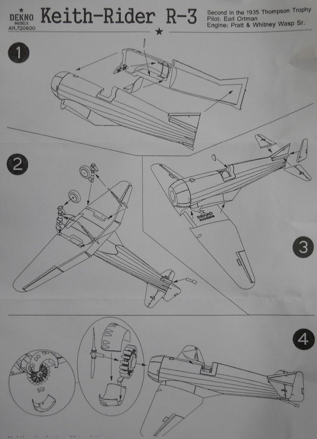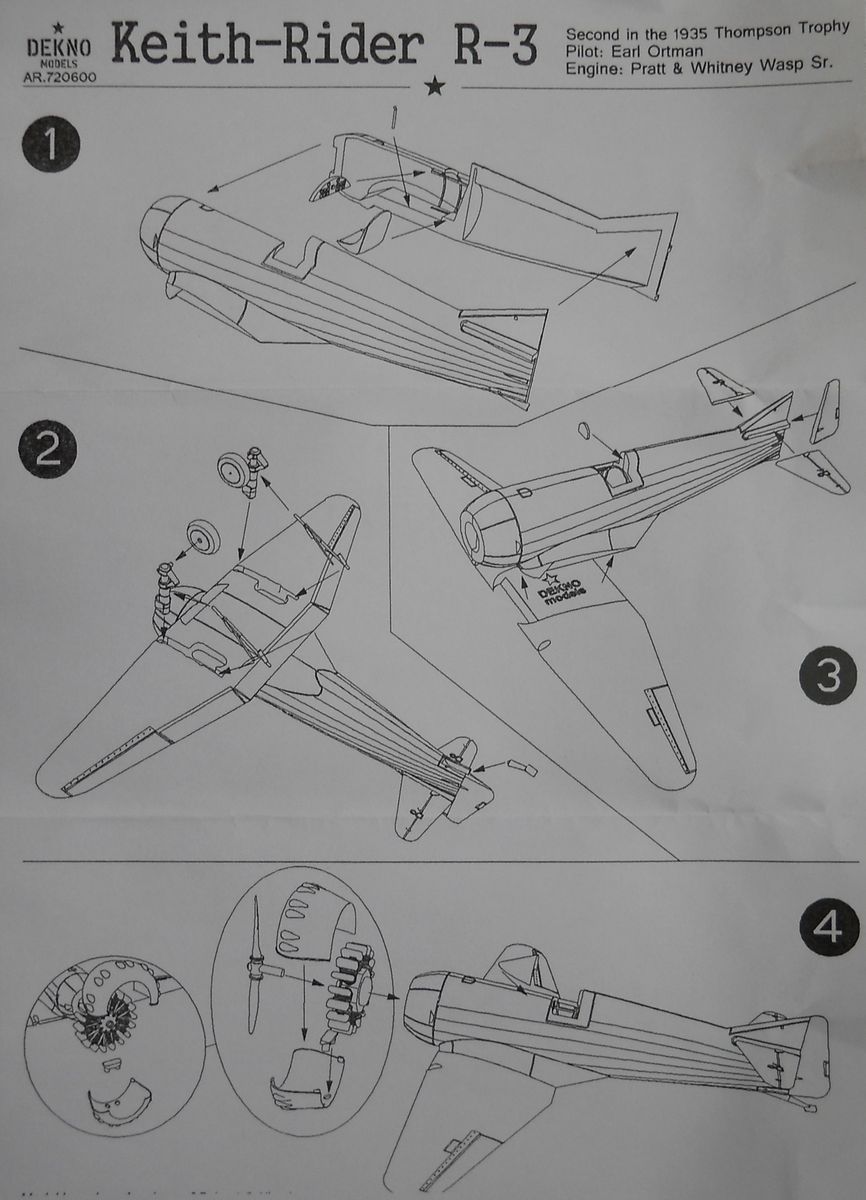 Модель из смолы от фирмы Dekno в масштабе 1/72 (номер по каталогу 720600) упакована в картонную коробку с боковым открытием. Литьё среднего качества, местами присутствуют незначительные дефекты. Капот разделён на две части, которые плохо соединяются друг с другом. Двигатель выполнен довольно посредственно. В моём комплекте отсутствует одно колесо шасси. Не очень аккуратно выполнены подшассийные ниши – получилось сквозное отверстие на верхней плоскости крыла. Ваку-козырёк имеется в двойном экземпляре. Декали даются на один вариант самолёта. Инструкция минималистична, не хватает информации по окраске интерьера самолёта.
