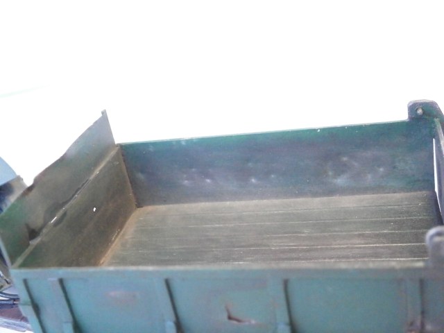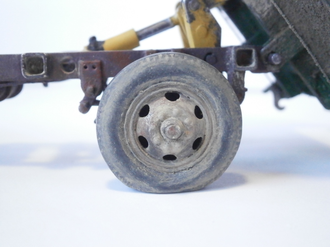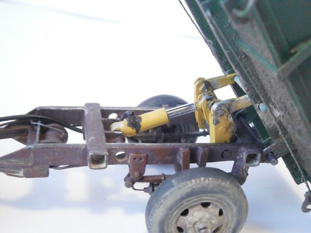 Привет, Александр. С пополнением коллекции. Сколько он берет, тонны две с половиной? Круто сделано. Рабочий гидроцилиндр и вмятины на бортах смотрятся как натуральные. Окраска тоже удалась, особенно колеса. Какой краской их красили?