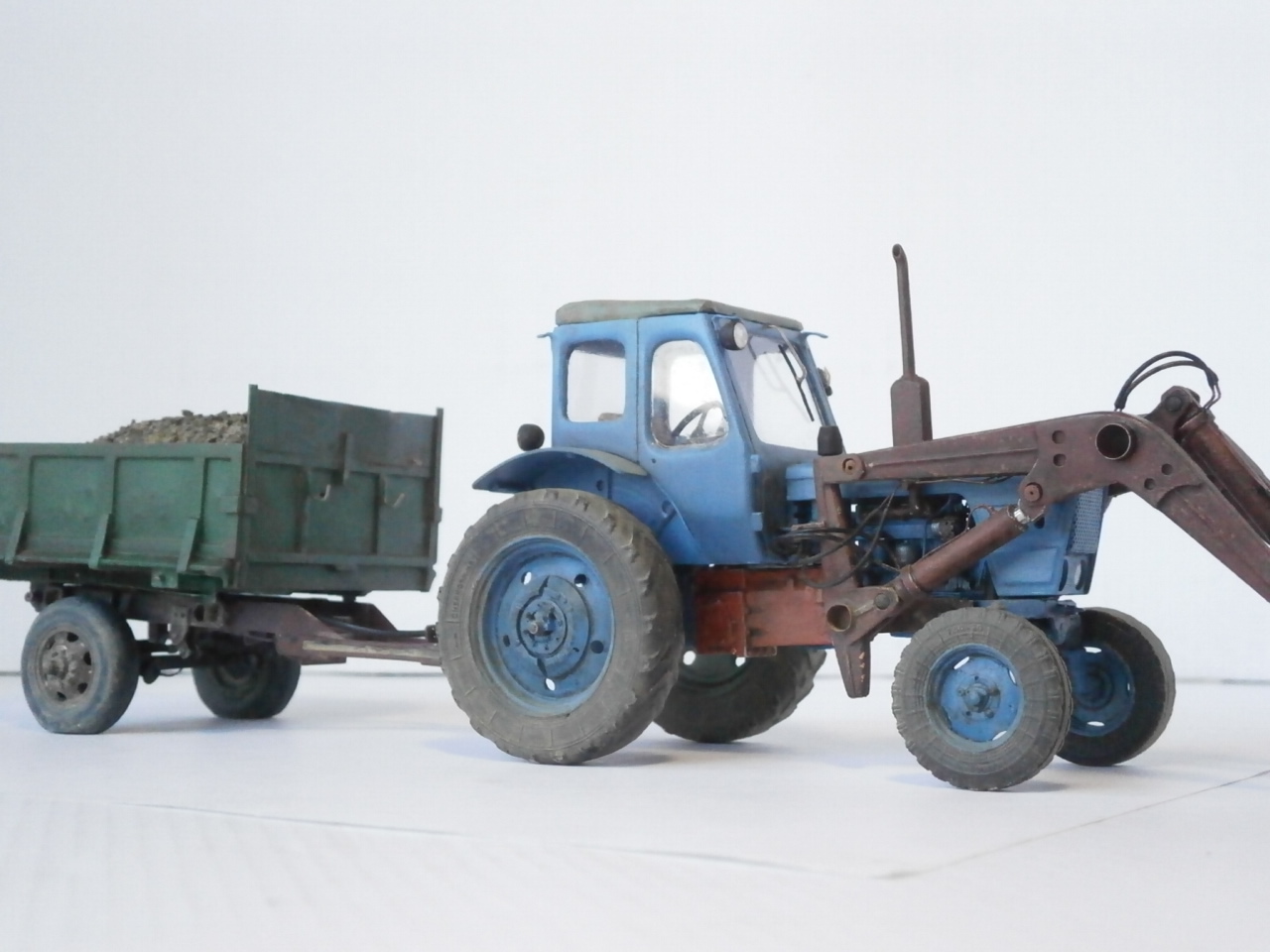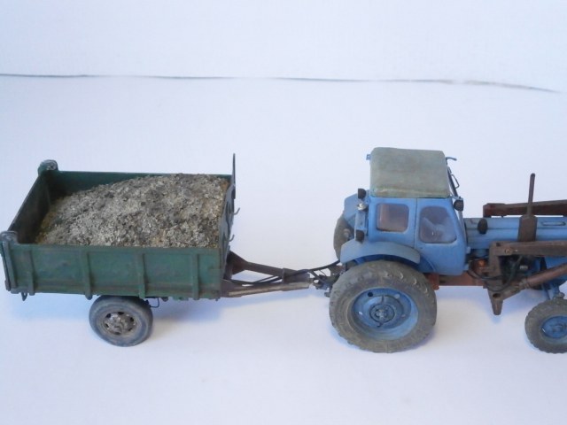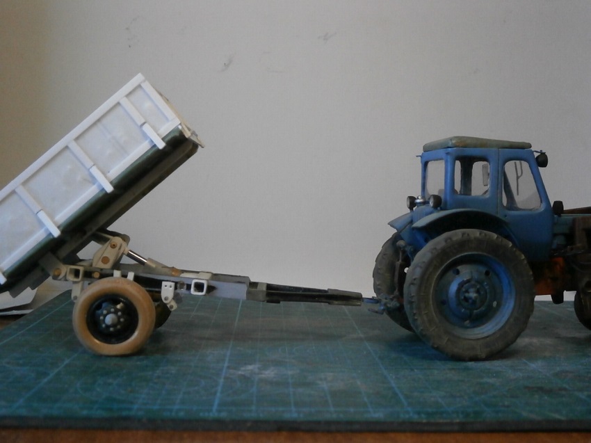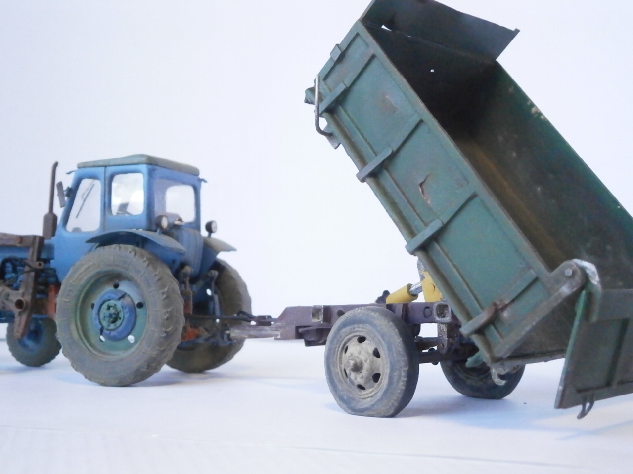 Саша! вечер добрый , что то у меня даже слов не находится что бы оценить всю эту красоту )))) такие мелочи как лысая резина "под нагрузкой" , продавленные борта , рабочие механизмы подъема , делает прицепчик реально живым , в общем отличная парочка вышла , Зачет !