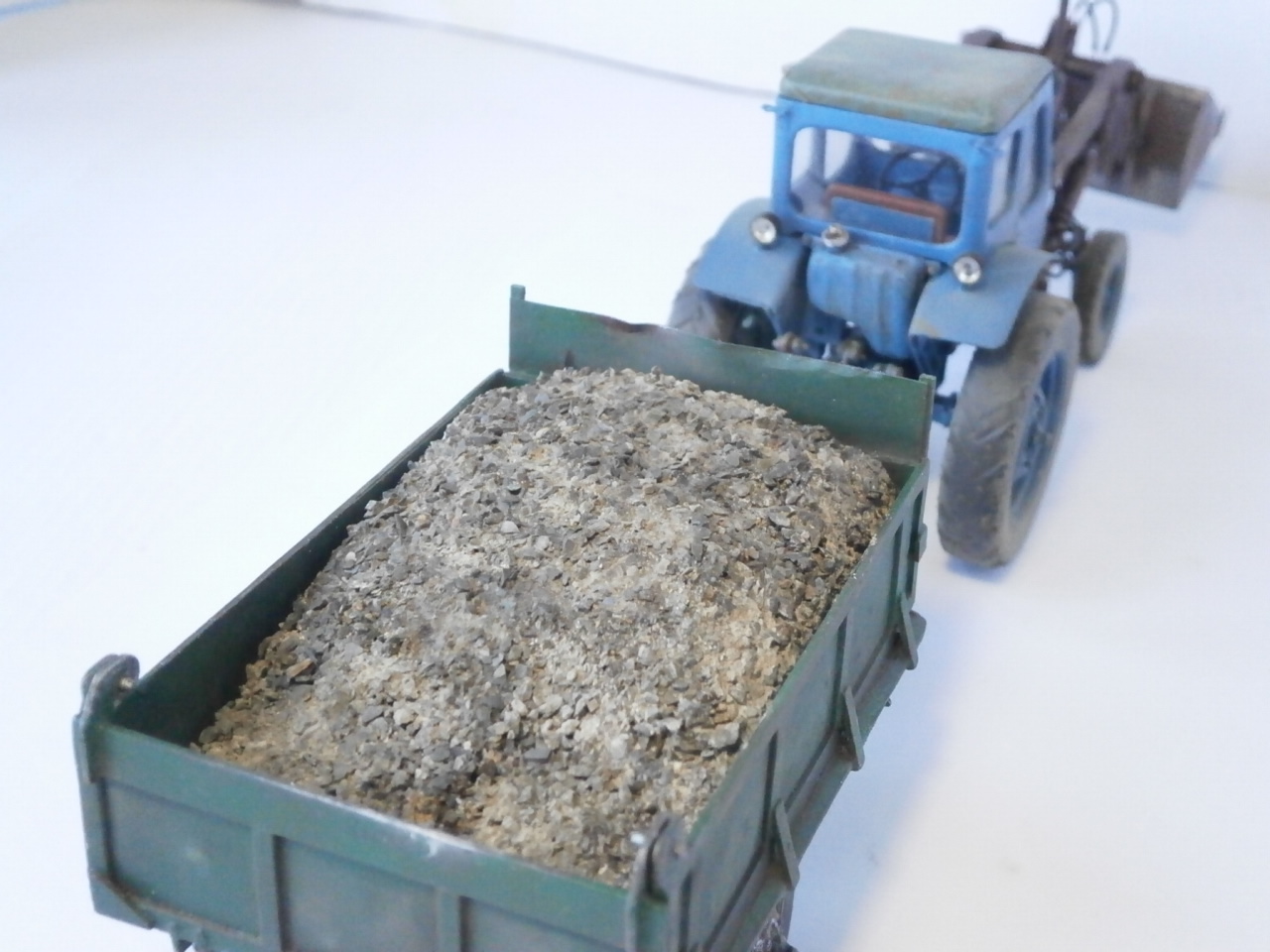 Трактор я показывал ранее,есть и короткое описание процесса. На этот раз только телега со щебнем добавилась