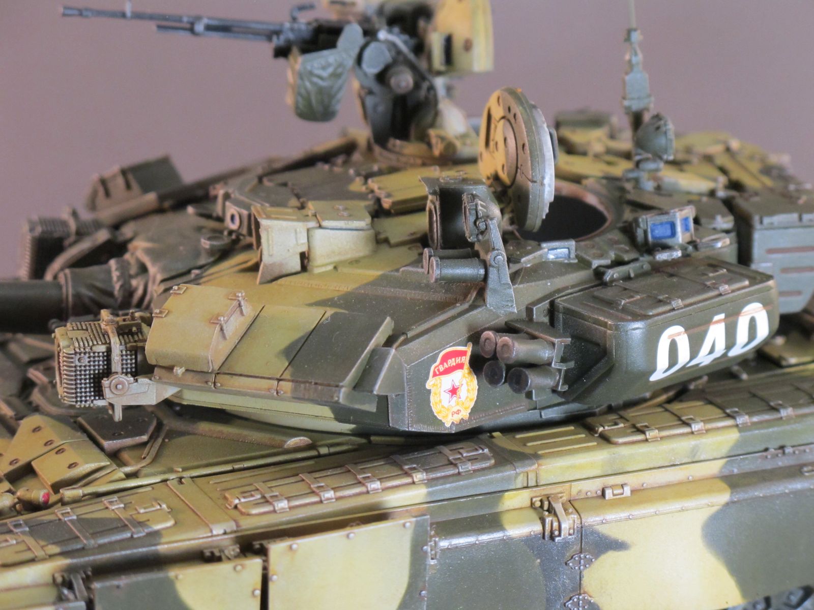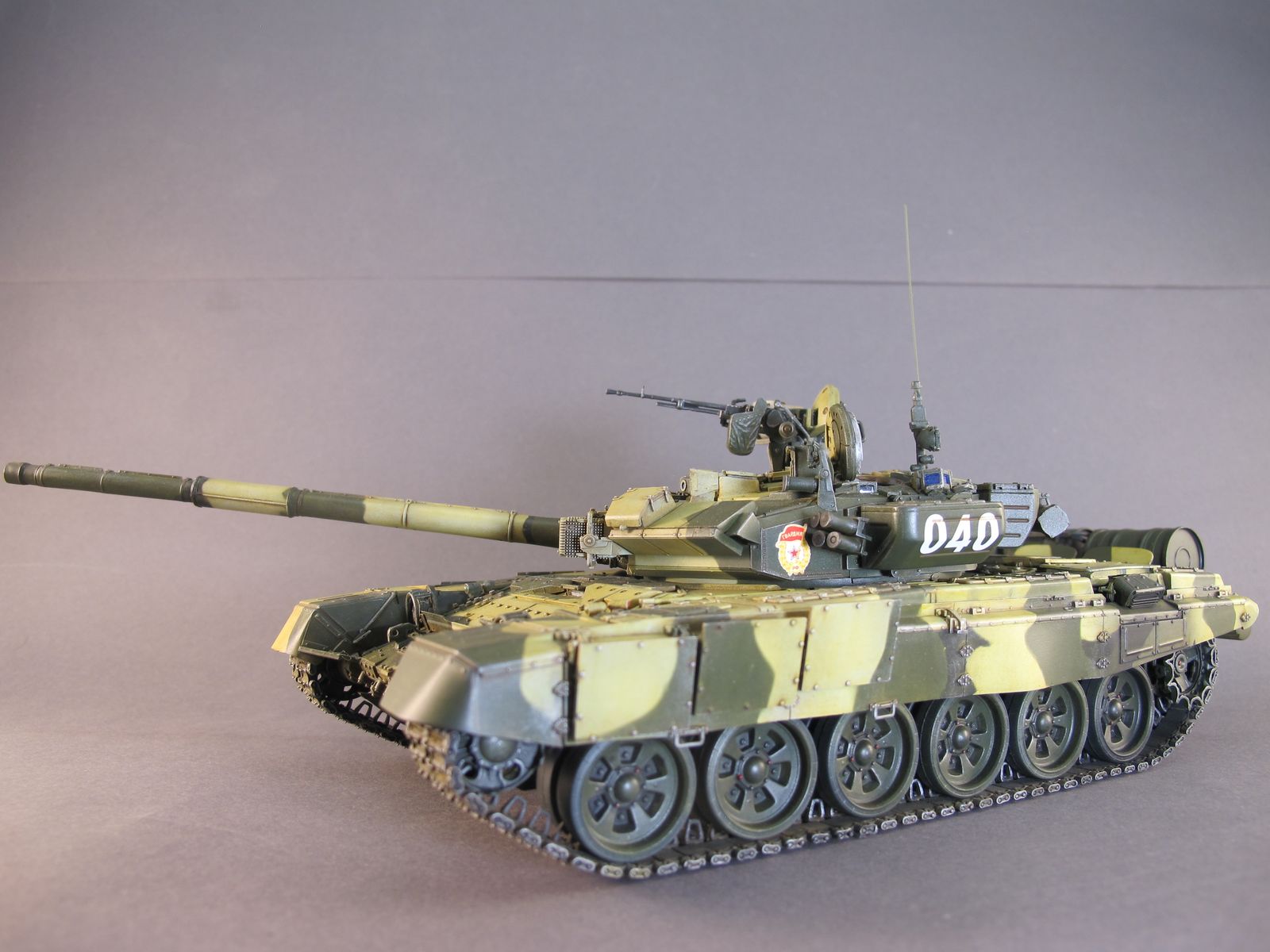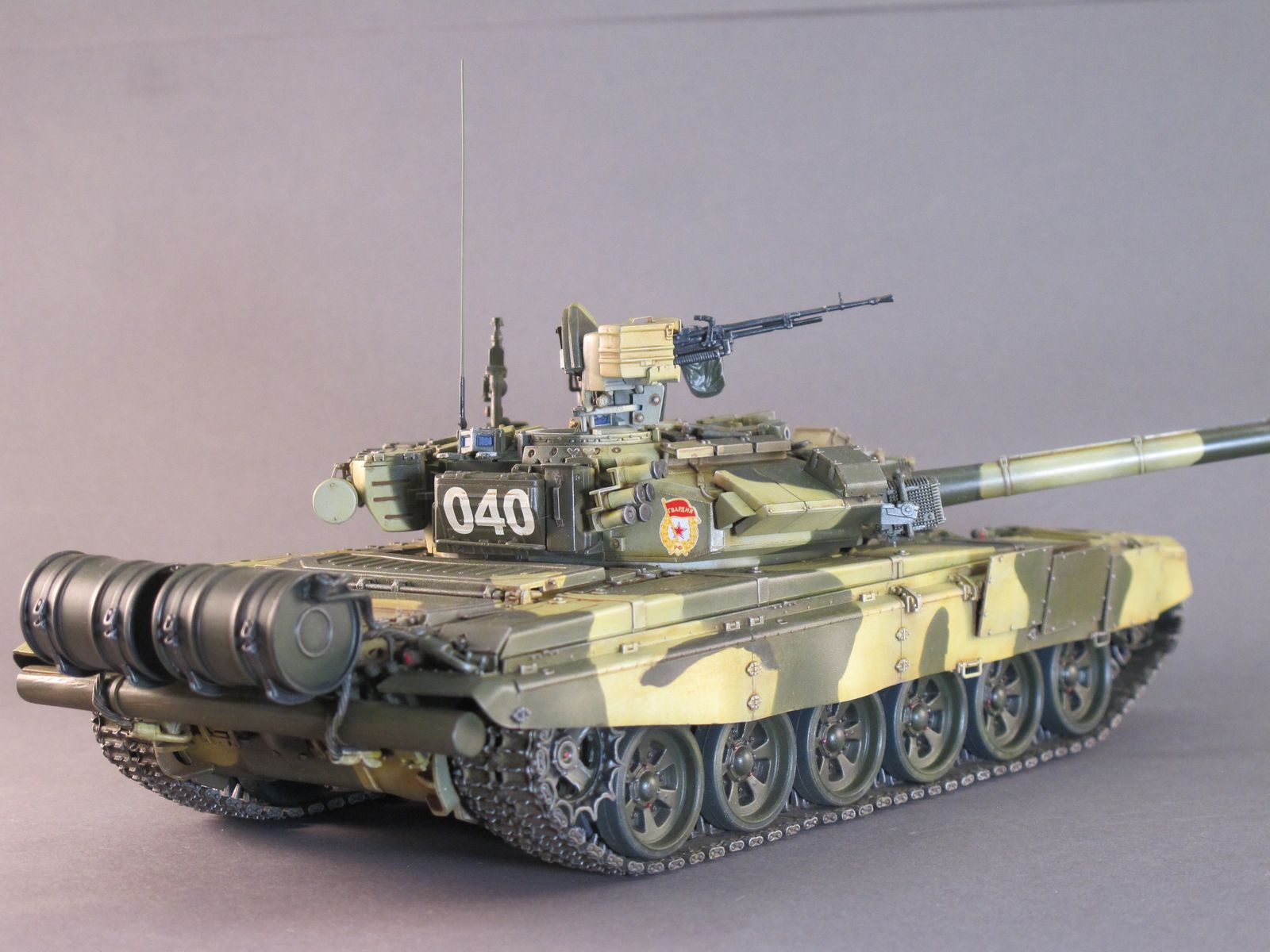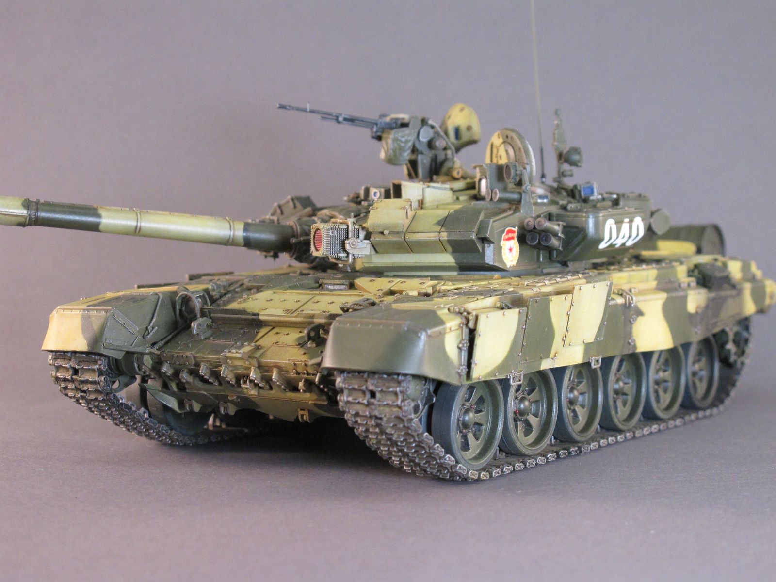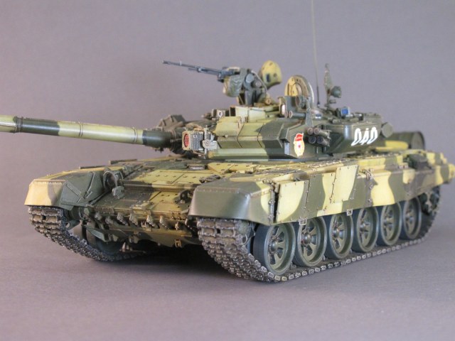 Доброго времени Уважаемые коллеги по творчеству! Представляю Вашему вниманию модель танка Т-90А от фирмы MENG. Ранее я уже строил эту модель, но пришлось её подарить другу на юбилей. Решил восполнить свою коллекцию. Набор многим известен своим хорошим качеством, стыкуемостью деталей, детализацией и копийностью. Модель выполнена из коробки от себя добавил тросы собственного производства и антену. Бортовые номера мой вымысел исторической привязки не имеют. Красил красками MR.HOBBY и TAMIYA. Всем приятного просмотра.
