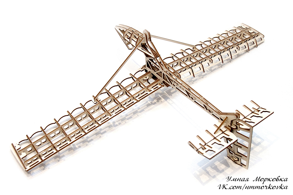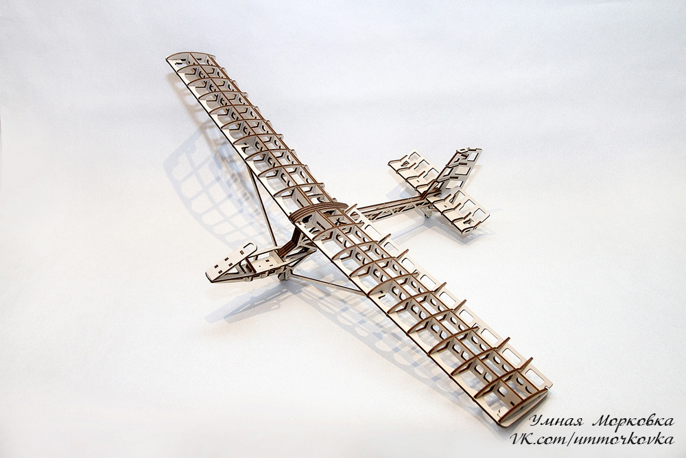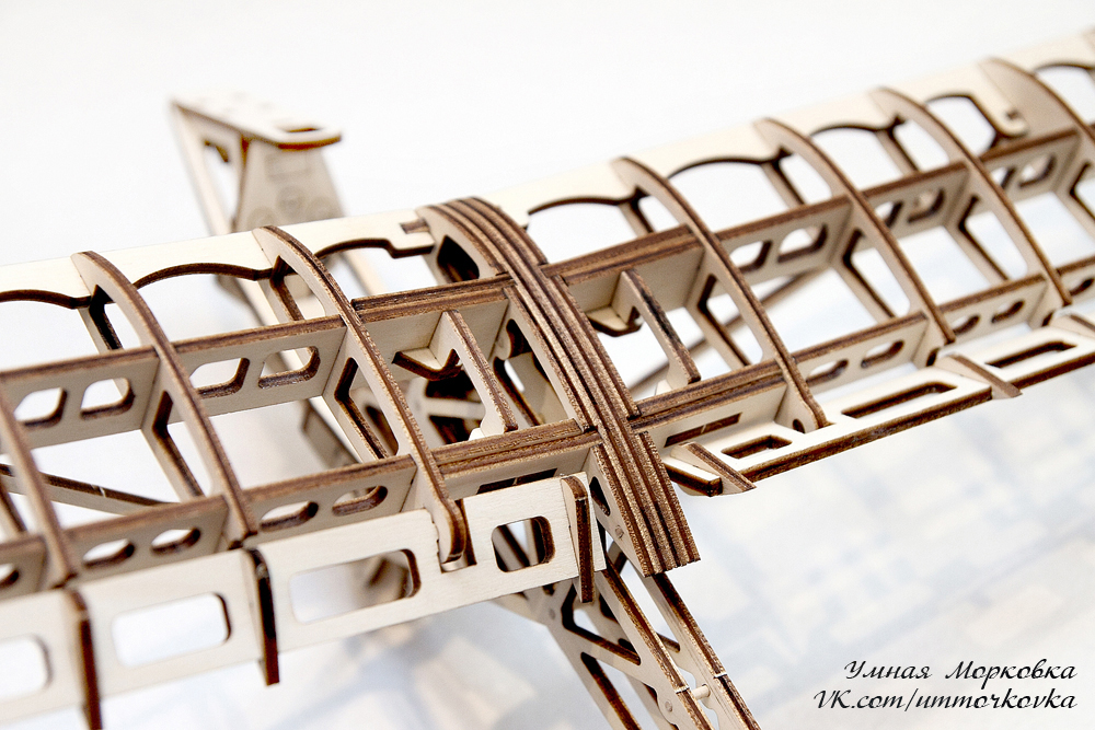 Почему из фанеры. С рождением дочери занялся изготовлением развивающих игрушек из фанеры. Постепенно пришла мысль, а почему бы не попытаться их продавать. Но развивающие игрушки и кукольные домики из фанеры особым спросом не пользуются. Может быть охват маловат, может рекламироваться не умею. И глядя на конструкторы из фанеры ungears, подумал, а почему бы не создать что то подобное. Выбор был между виллисом, танком, паровозом и самолетом. Разумеется, увлечение авиацией сделало выбор в пользу самолета. Однако для первой модели хотелось максимально упростить технологию изготовления и избежать сложных поверхностей.