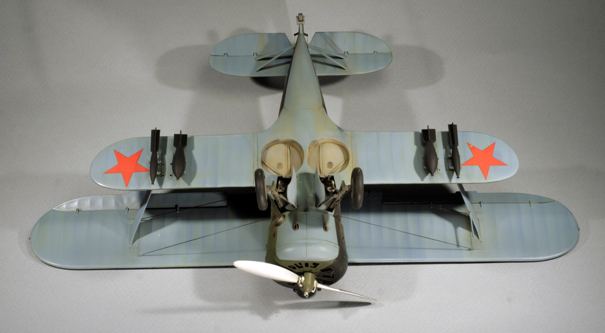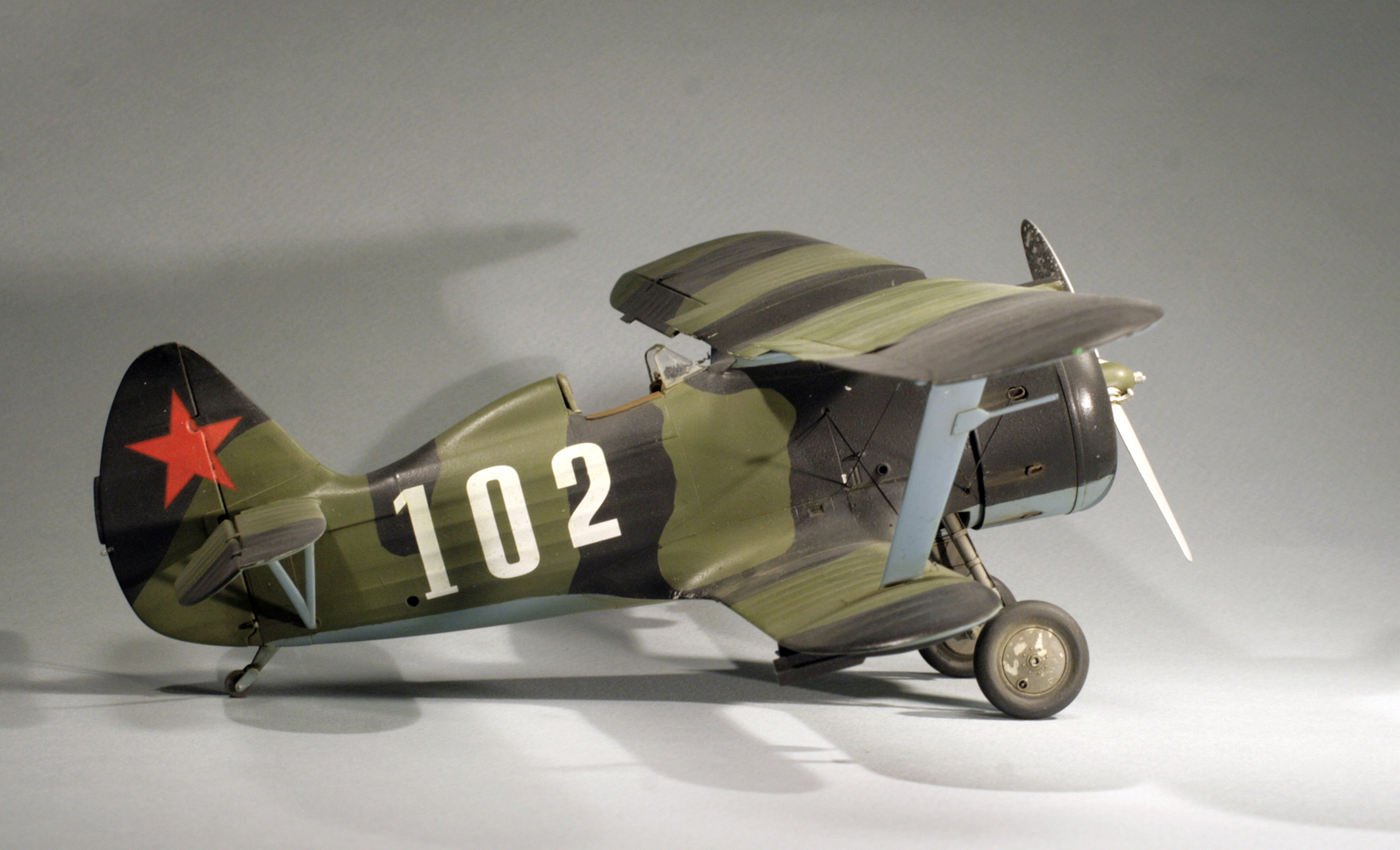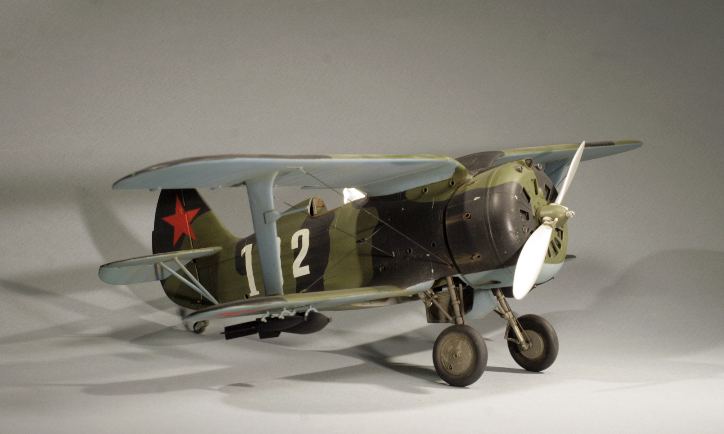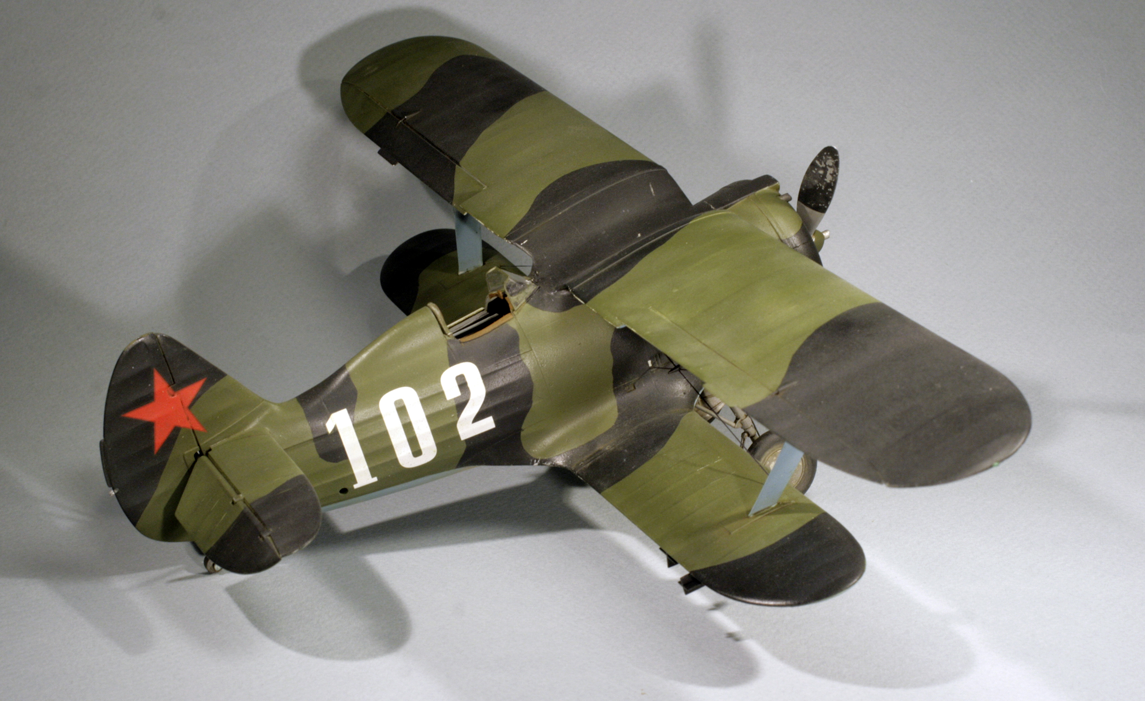 Стыковка модели внезапно оказалась посредственной. Конструкции фюзеляжа не хватает жесткости и посадочных штифтов, тем более половинки фюзеляжа были немного поведены. Из-за этого по стыку нижнего крыла с фюзеляжем и между половинами фюзеляжа образуются заметные уступы. Их пришлось шпаклевать. Последствия этой борьбы заметны по крупным участкам шпаклевки белого цвета. Так же очень неудачно реализован стык деталей капота.
