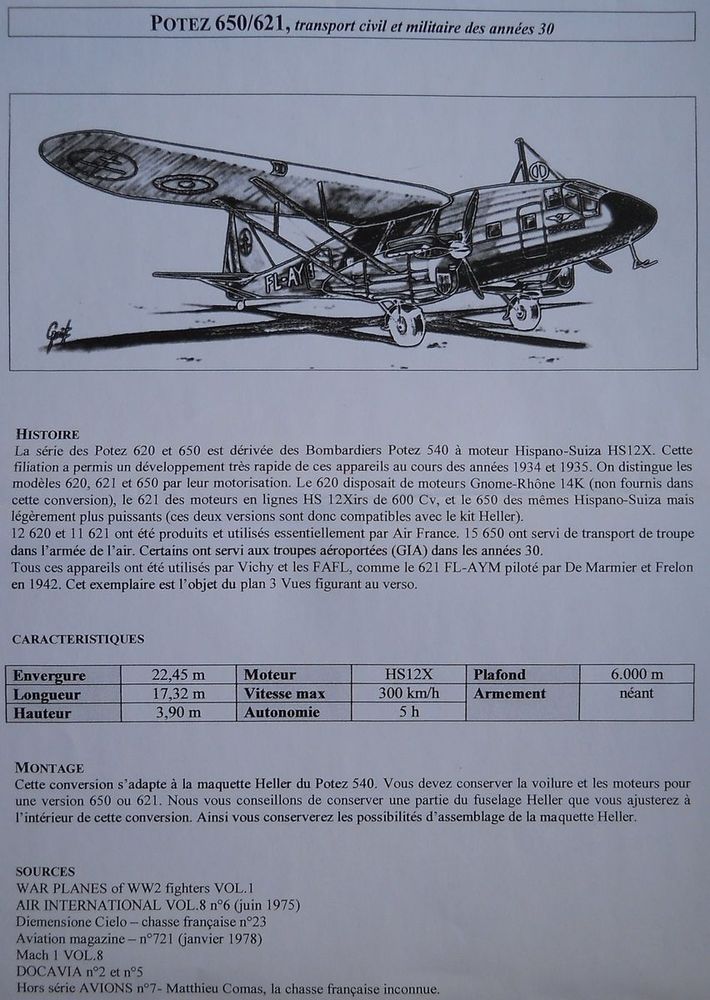 Пассажирский самолёт Potez 621 был создан на основе бомбардировщика Potez 540 в 1935 году. Строился серийно. Военный вариант в виде транспортного Potez 650 полетел в 1937 году. Более подробно прочитать о них можно тут: 1 и 2.